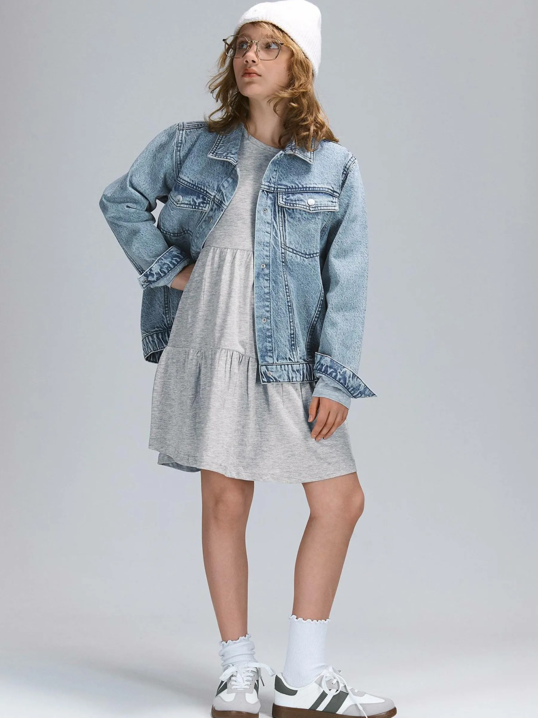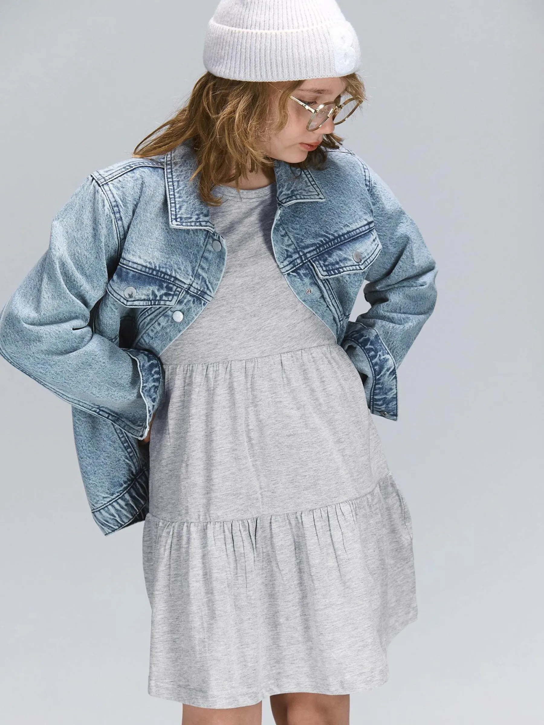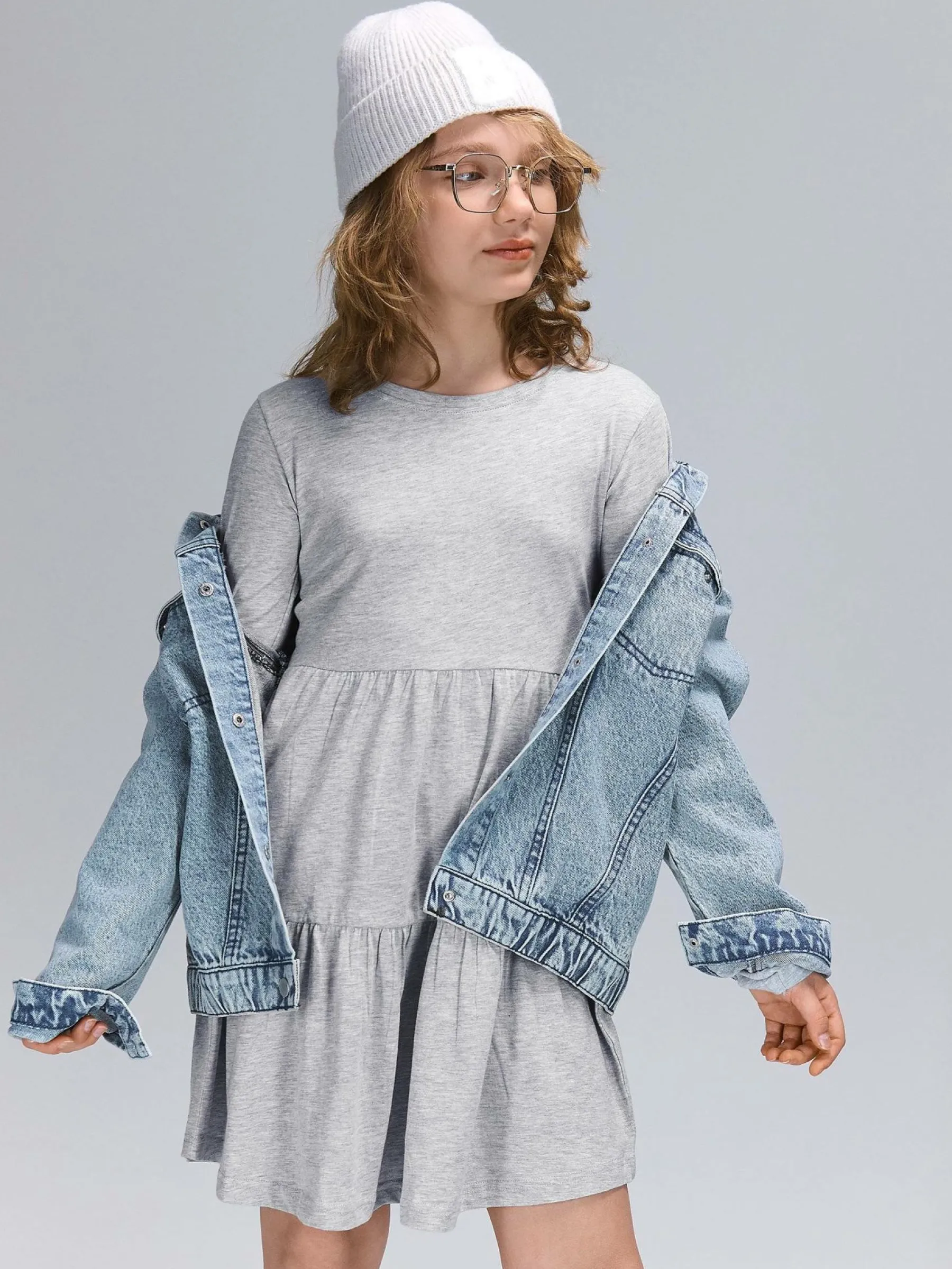 Kolor: szaryKrój: z falbanąTyp: sukienkaRekaw: długi rękawDługość: miniPattern style: podświetlonyDetal: nad gł…