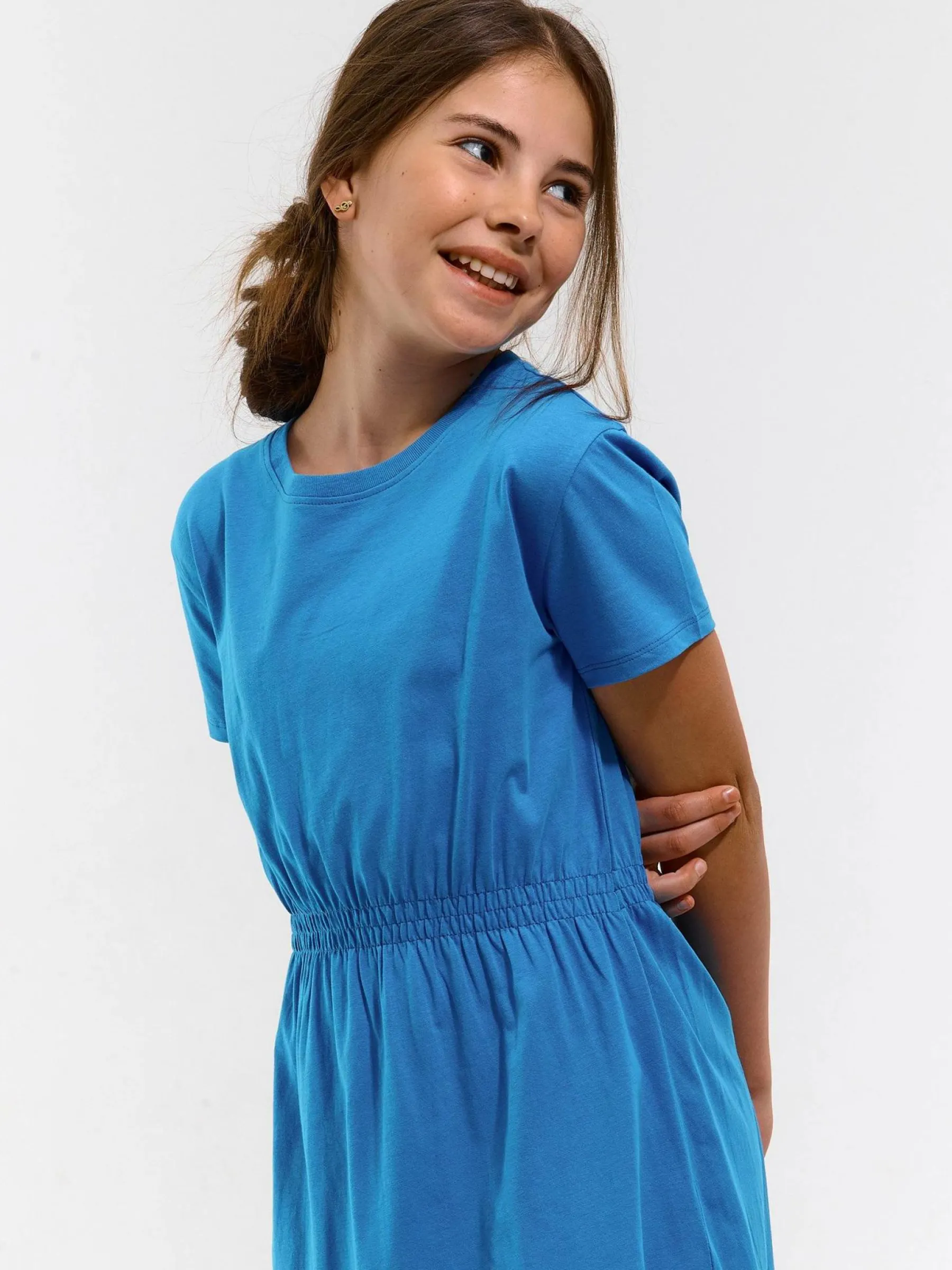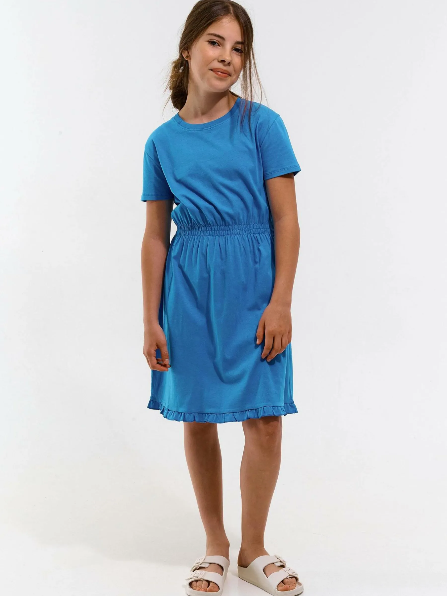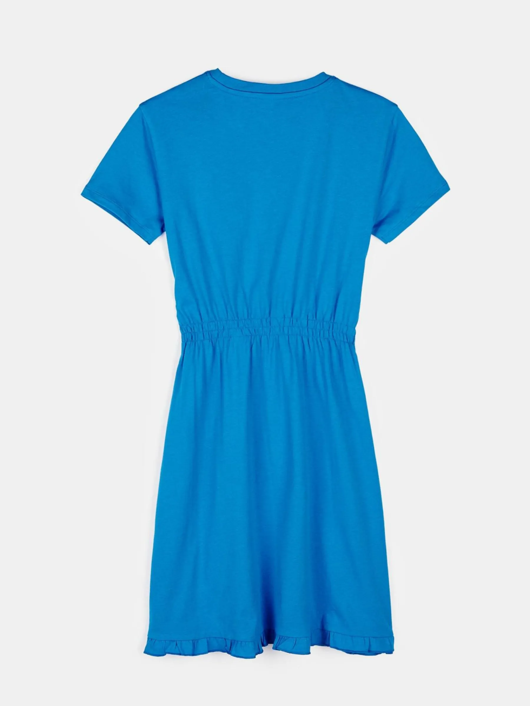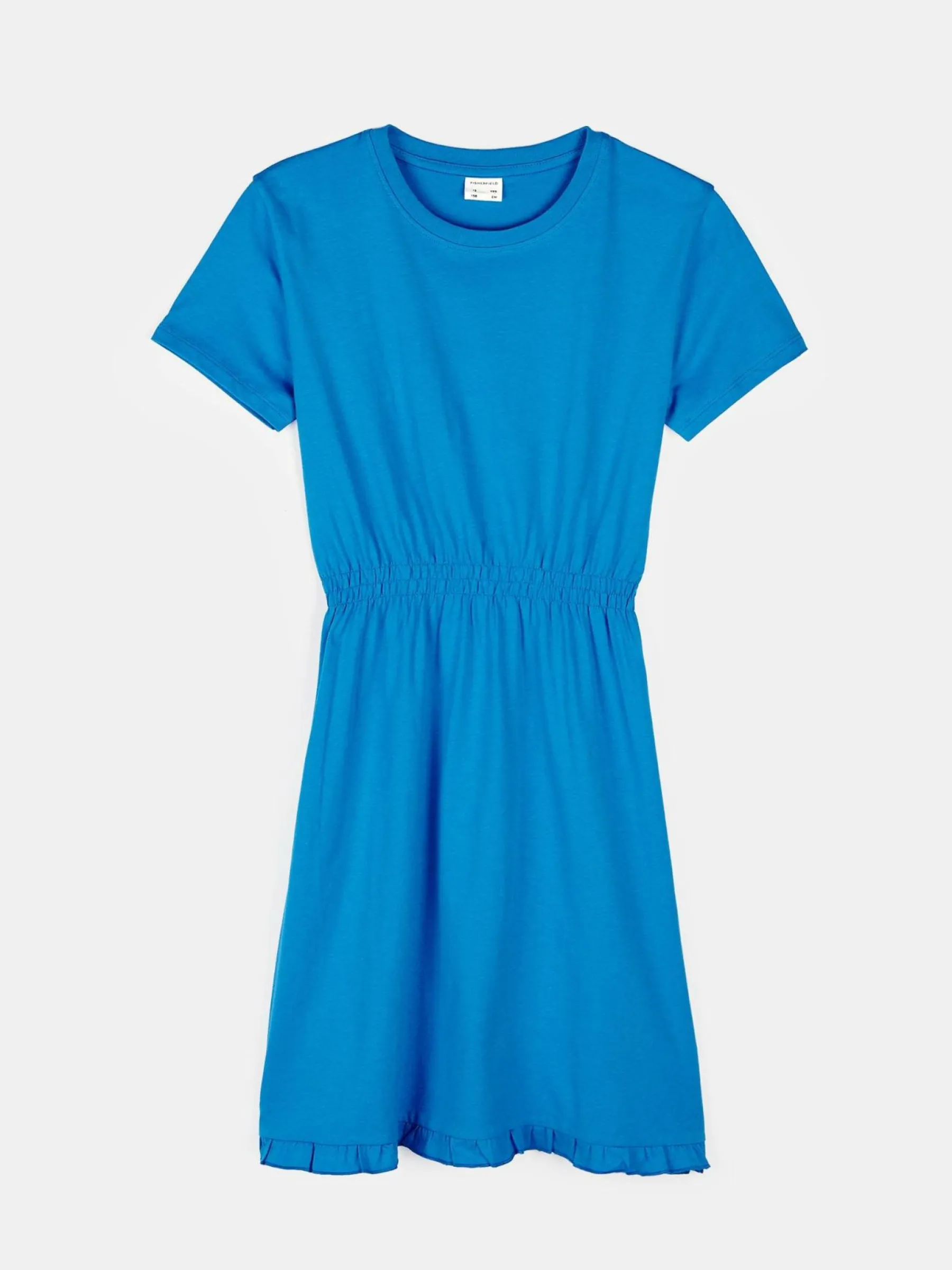Kolor: niebieskiKrój: asyTyp: sukienkaRekaw: krótki rękawDługość: miniPattern style: pojedynczy kolorMateriał: ba…