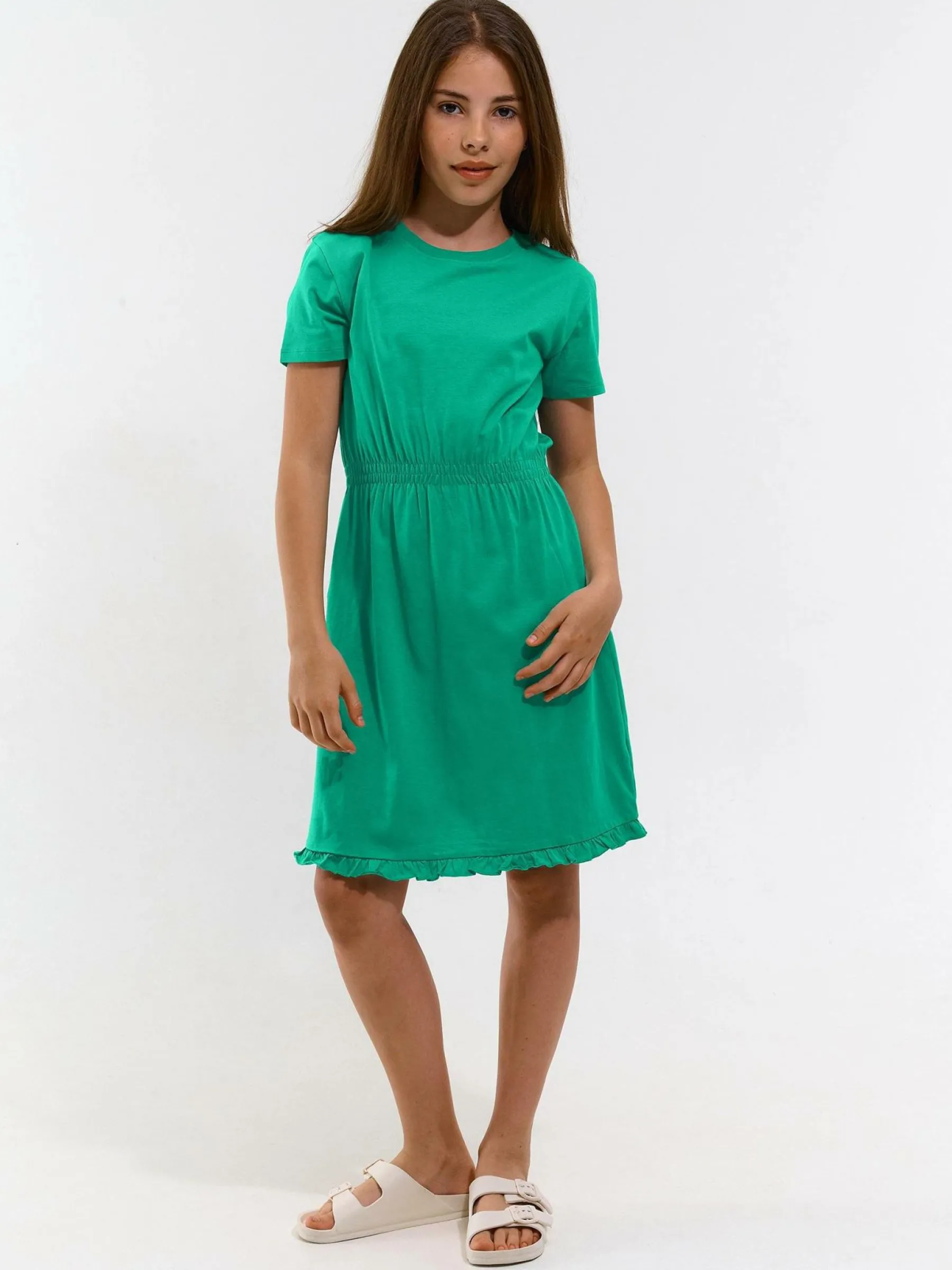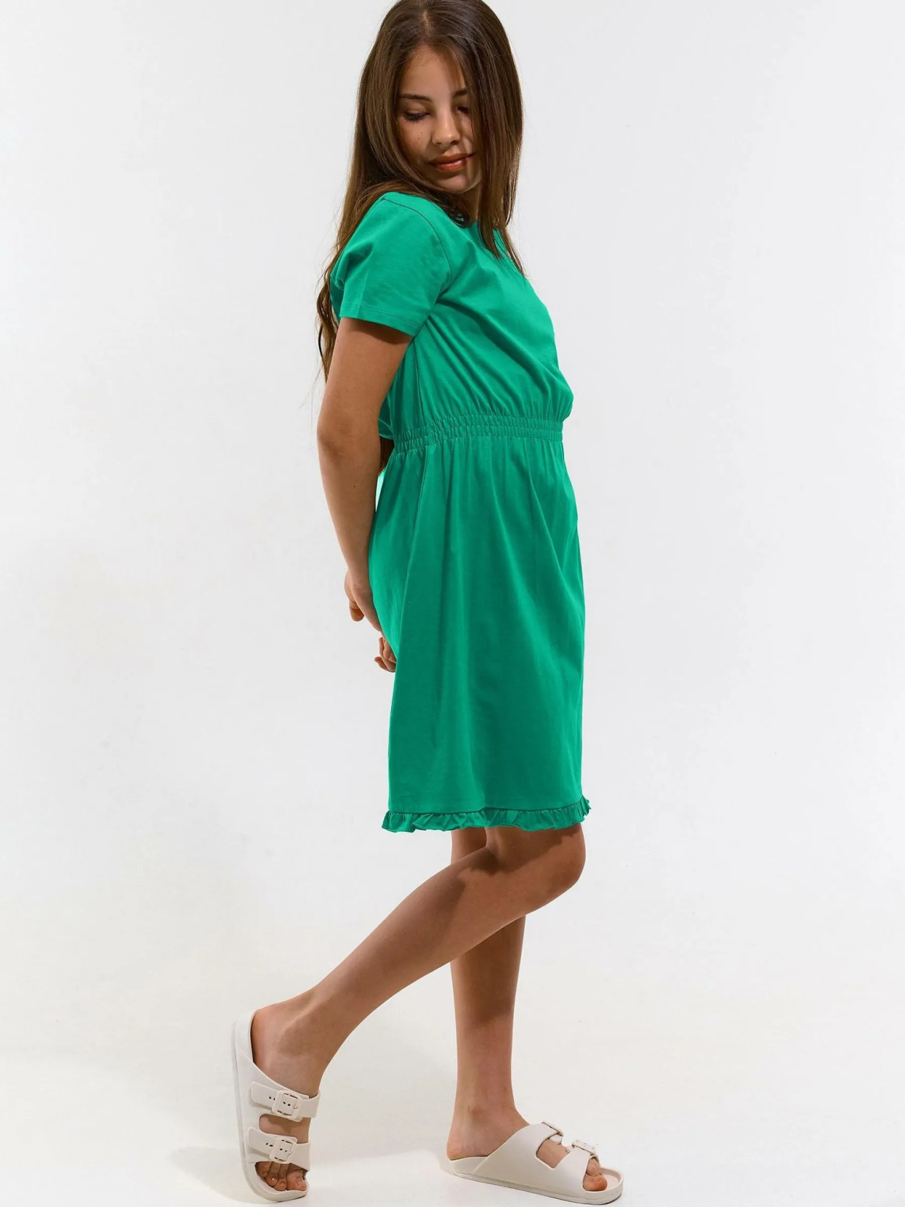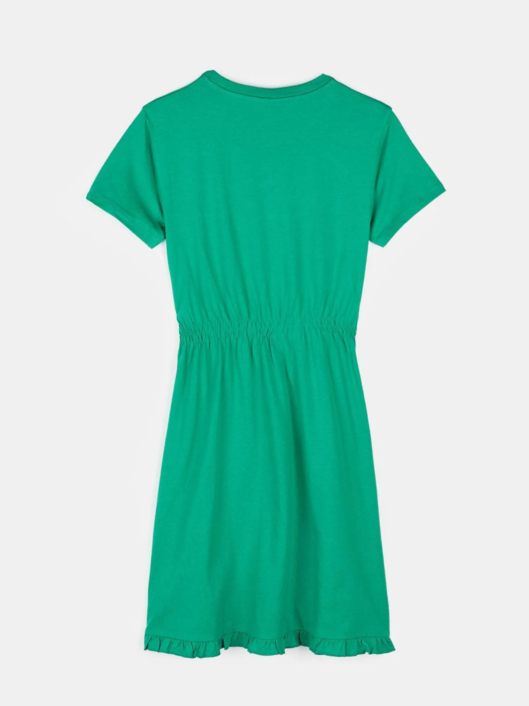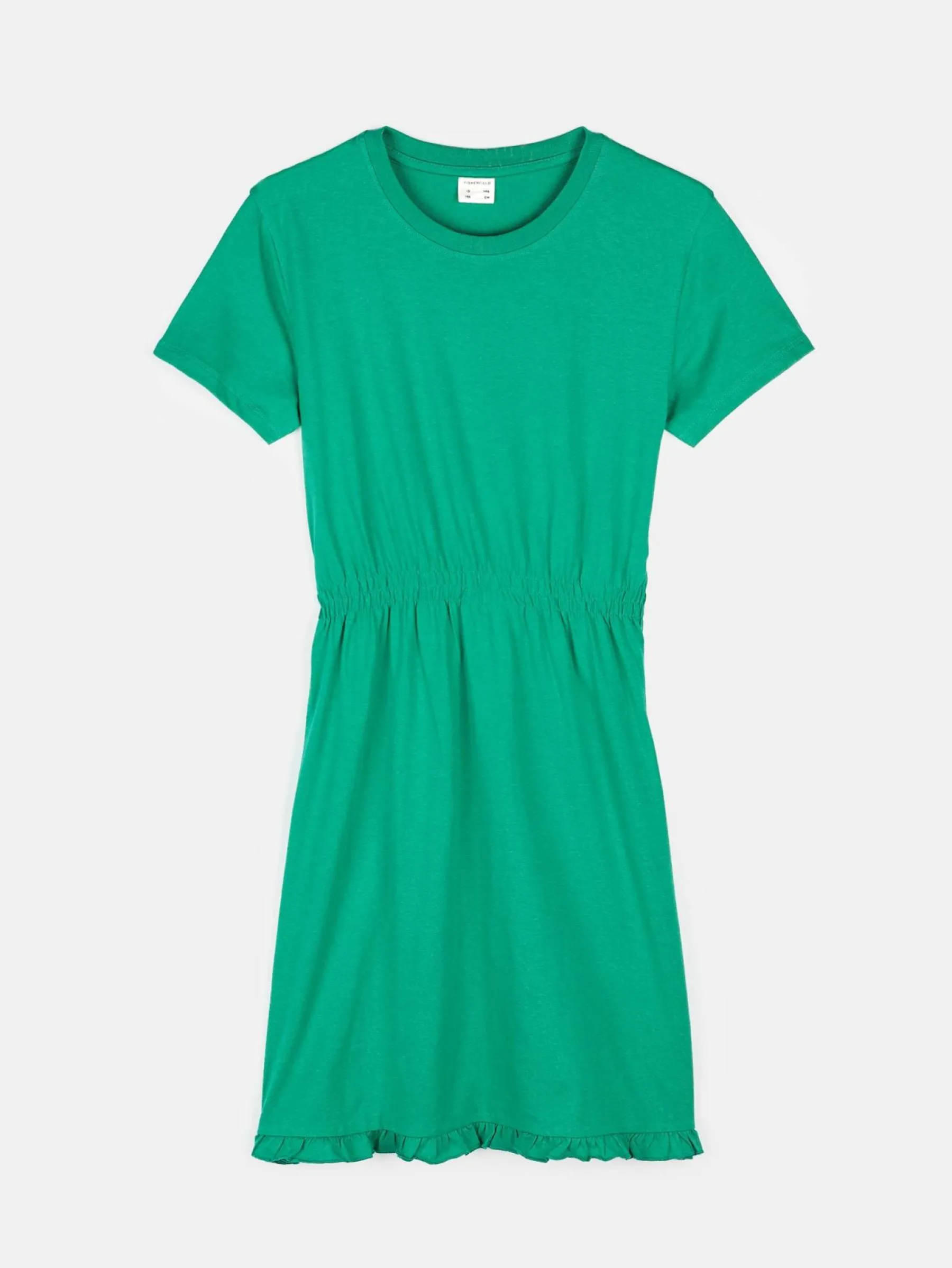 Kolor: zielonyKrój: asyTyp: sukienkaRekaw: krótki rękawDługość: miniPattern style: pojedynczy kolorMateriał: bawe…