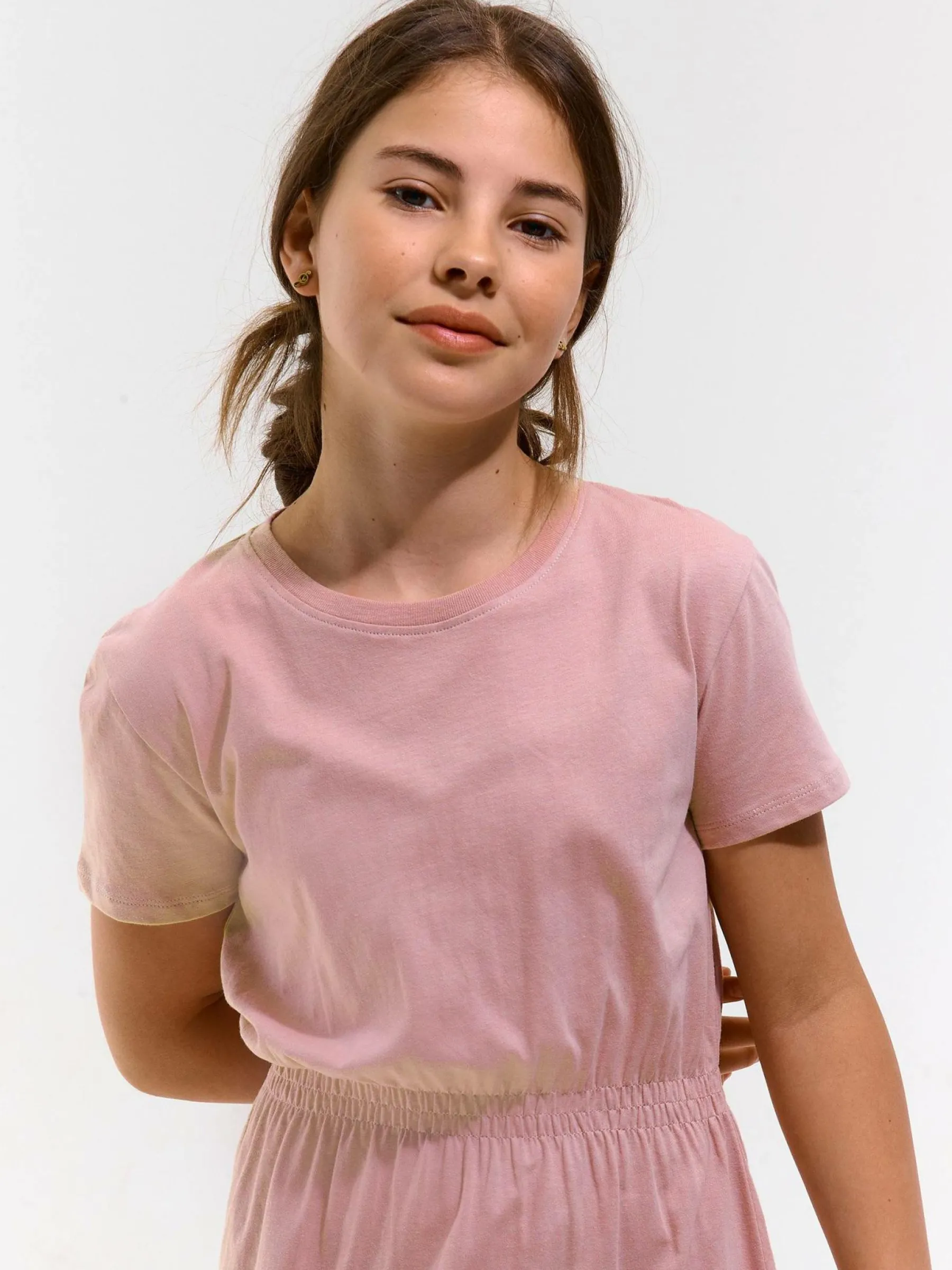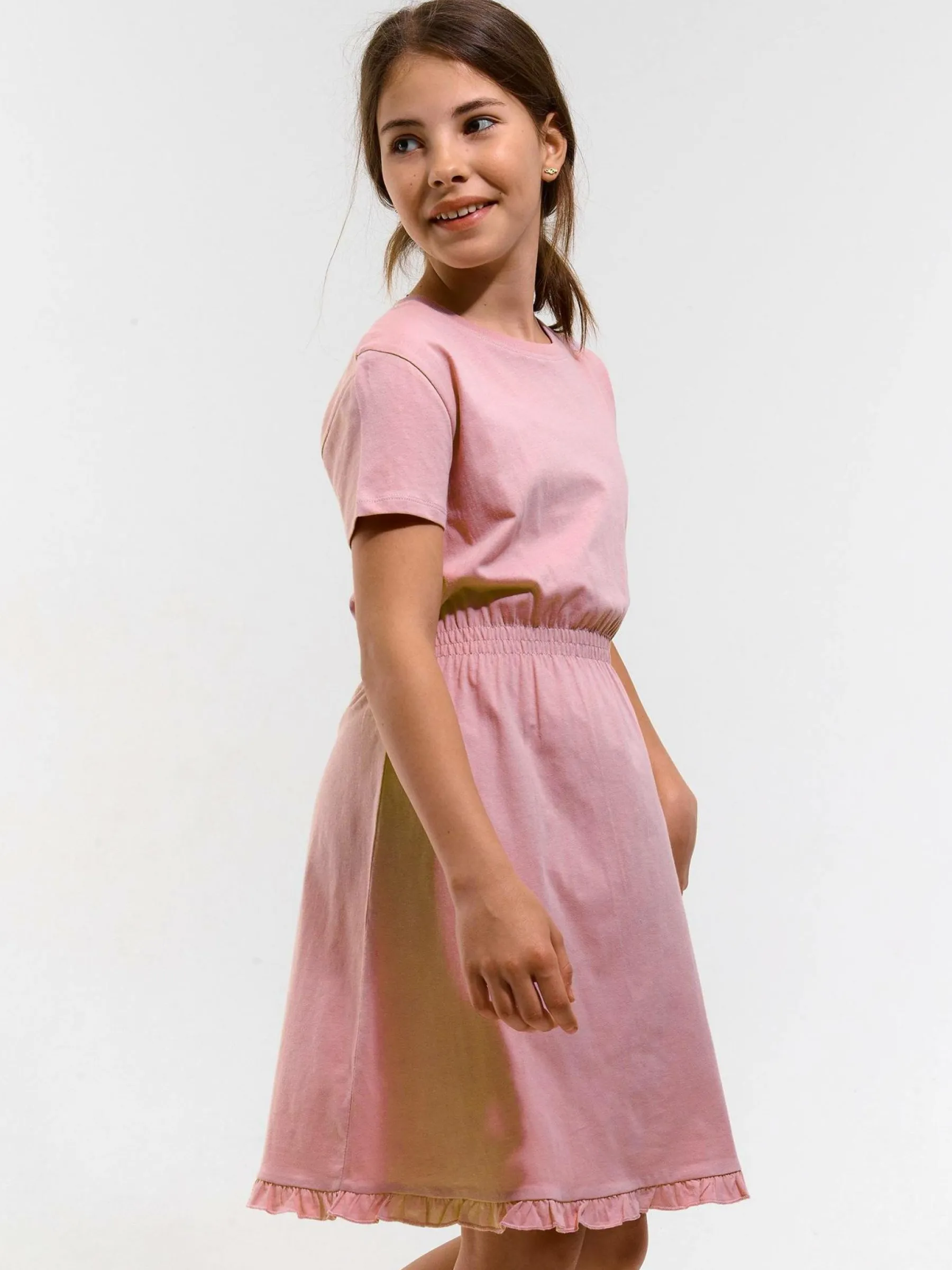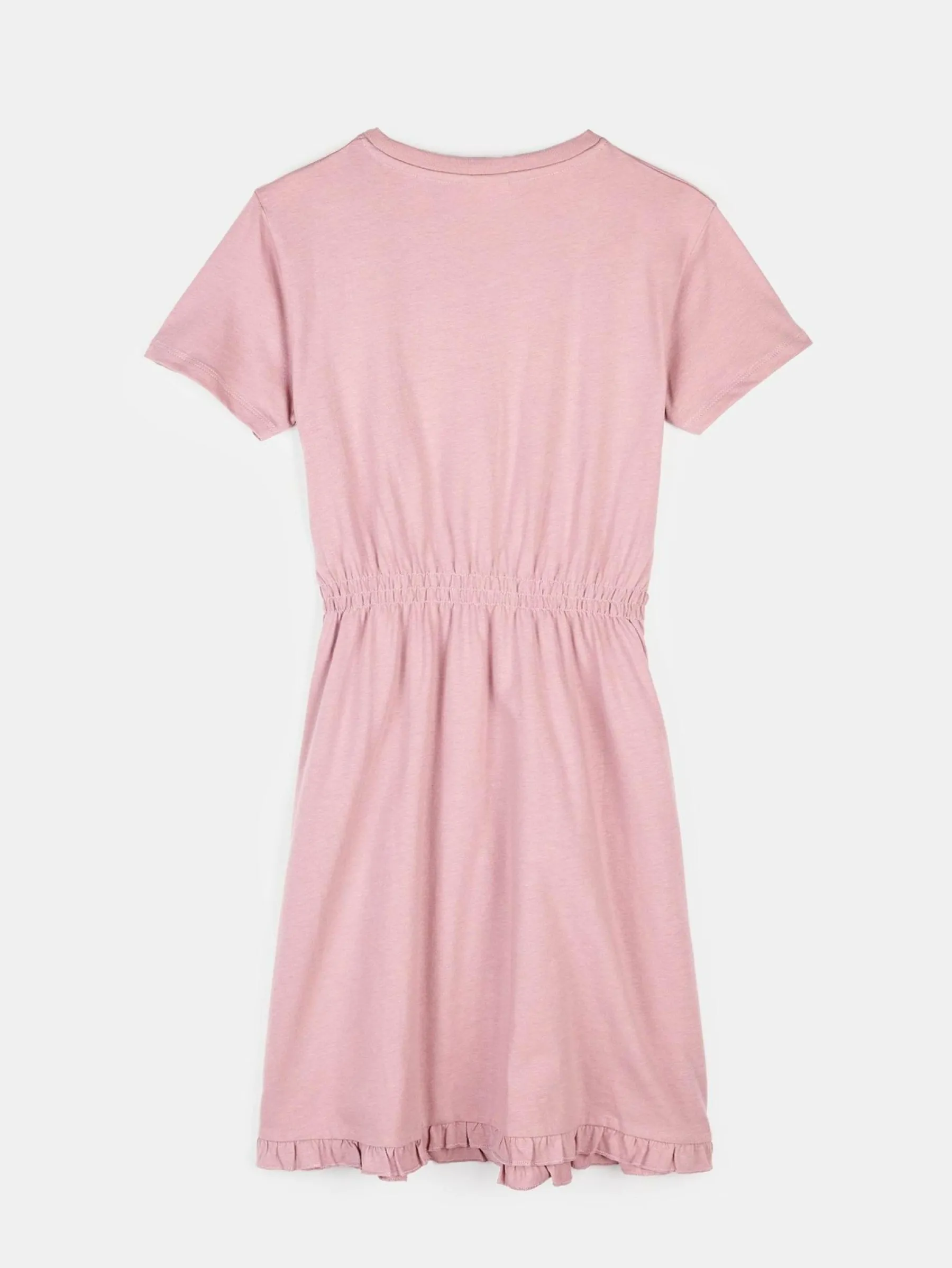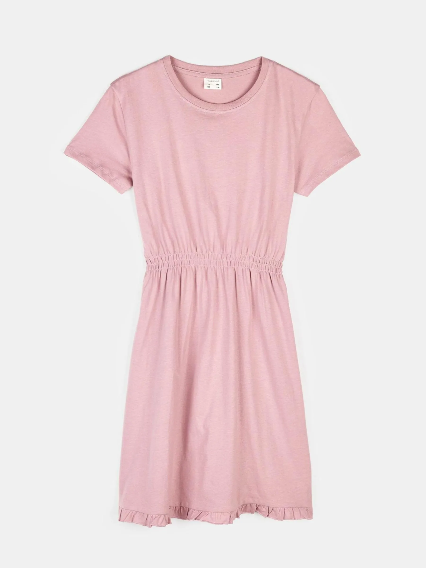 Kolor: różowyKrój: asyTyp: sukienkaRekaw: krótki rękawDługość: miniPattern style: pojedynczy kolorMateriał: baw…