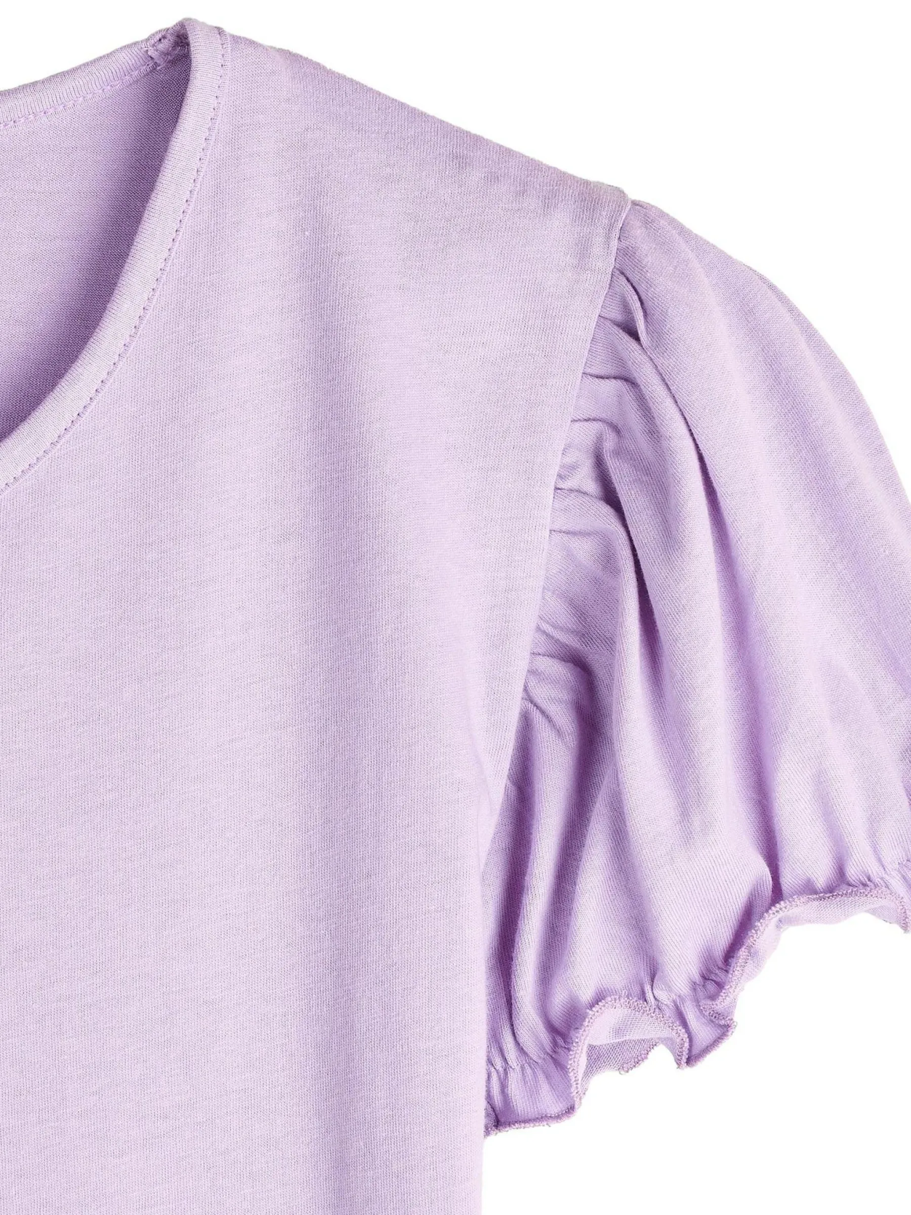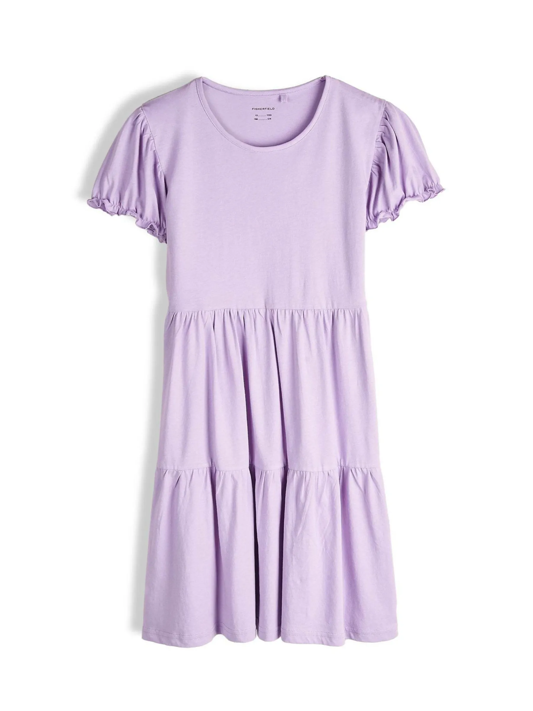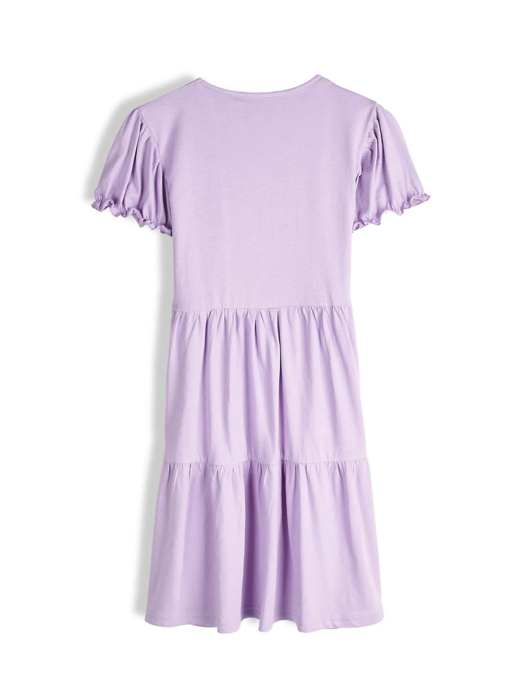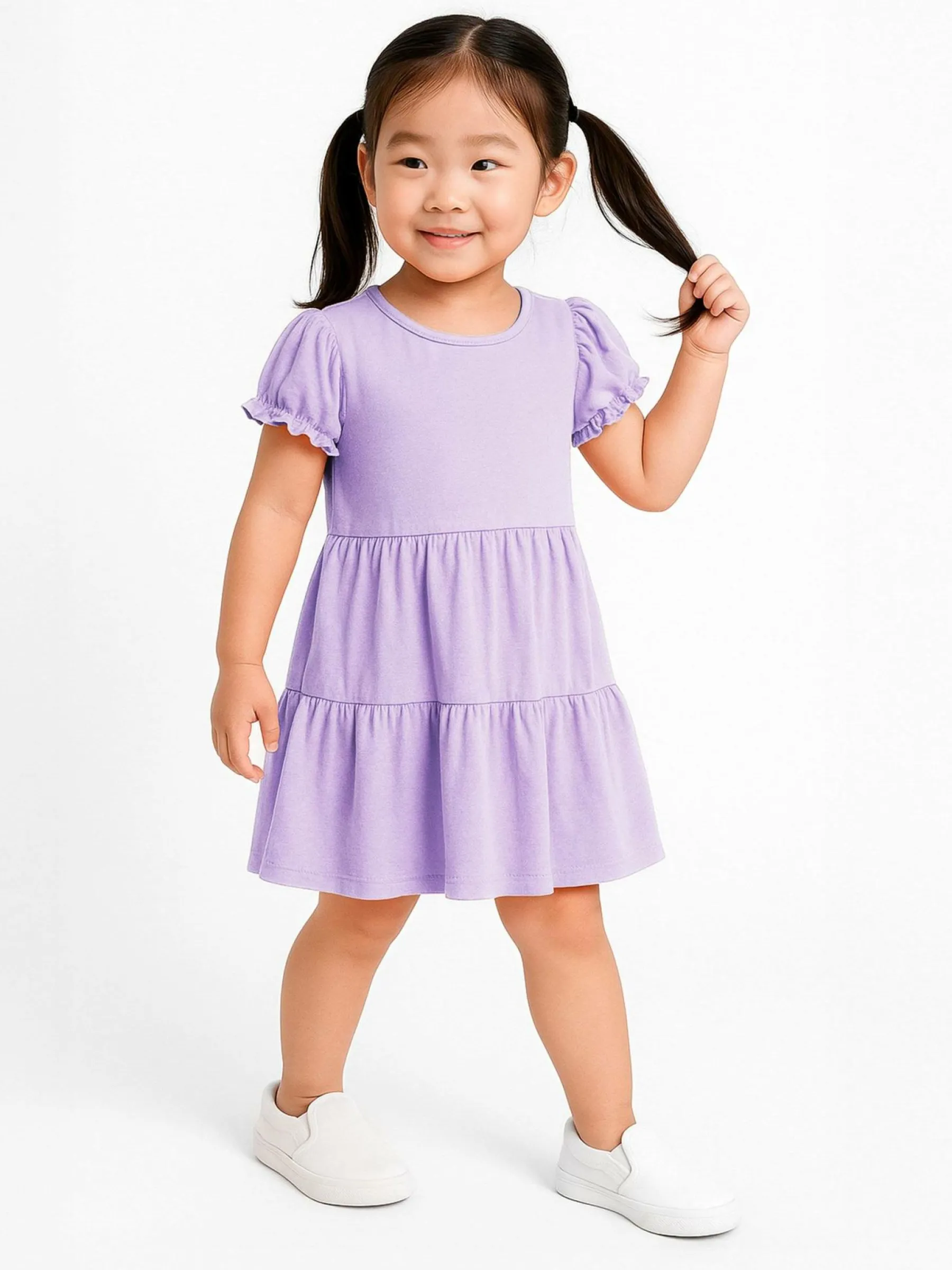 Kolor: purpurowyKrój: z falbanąTyp: sukienkaRekaw: krótki rękawDługość: miniPattern style: pojedynczy kolorDetal:…