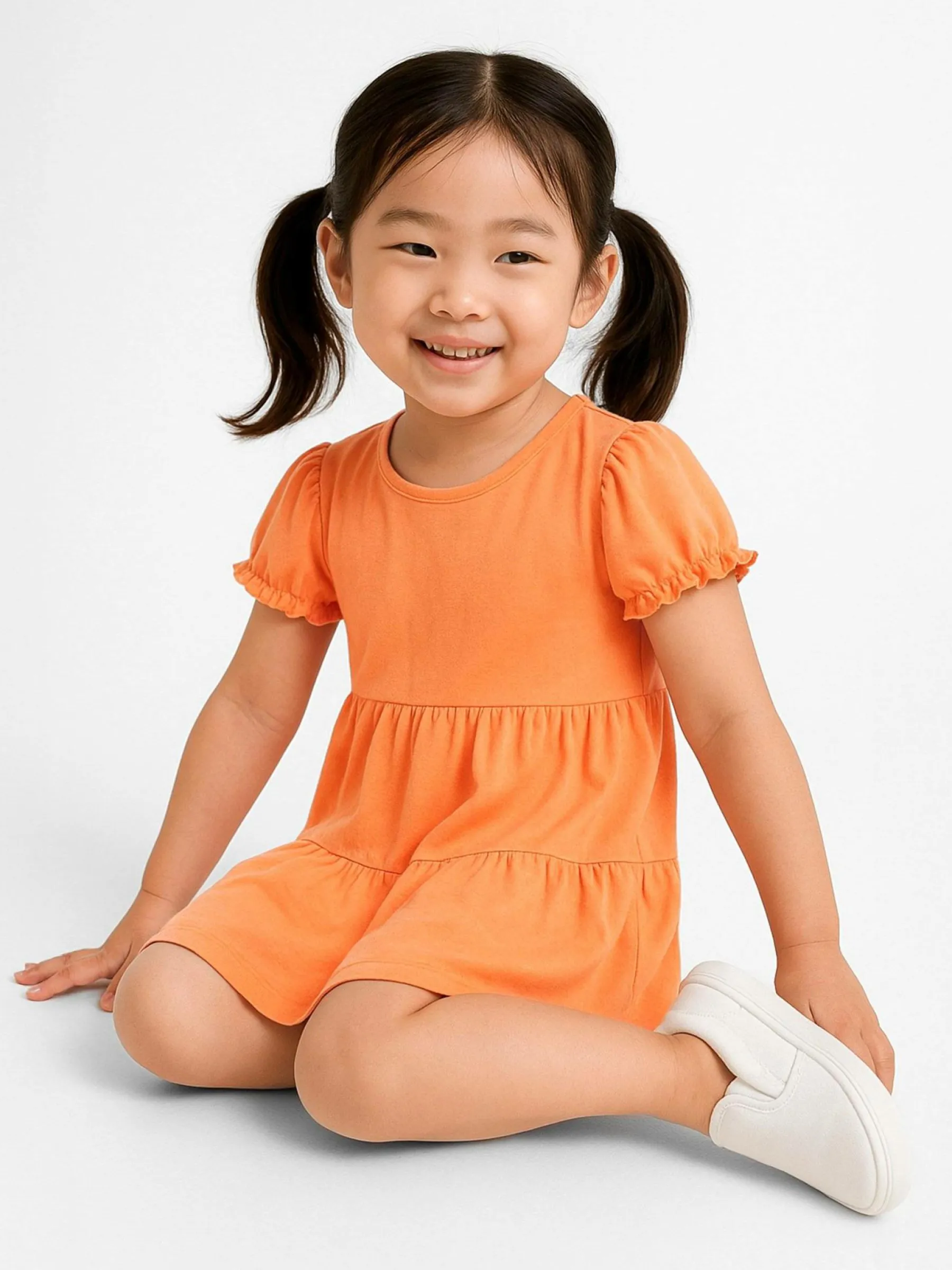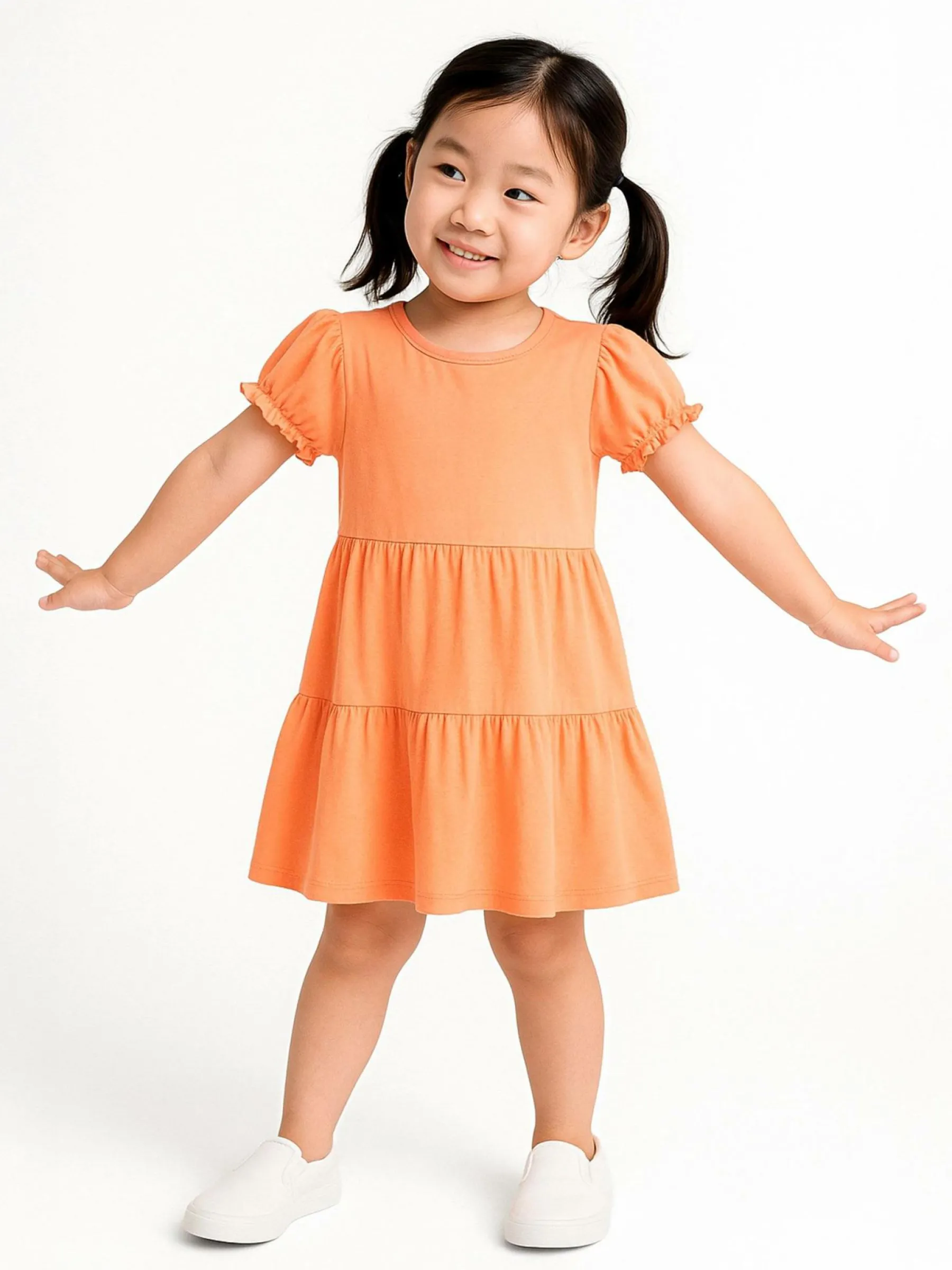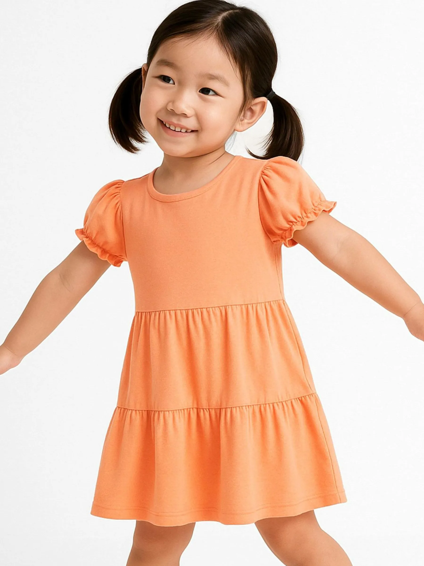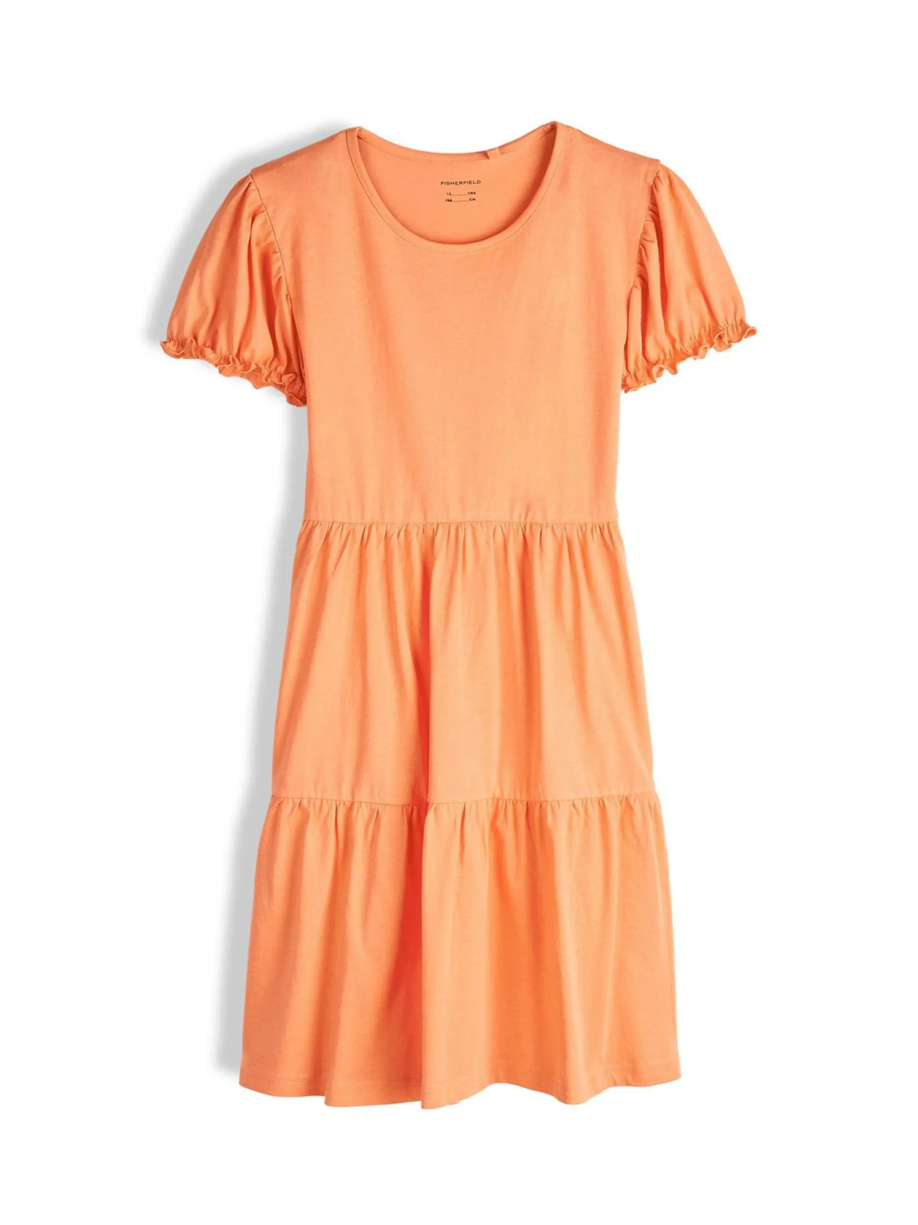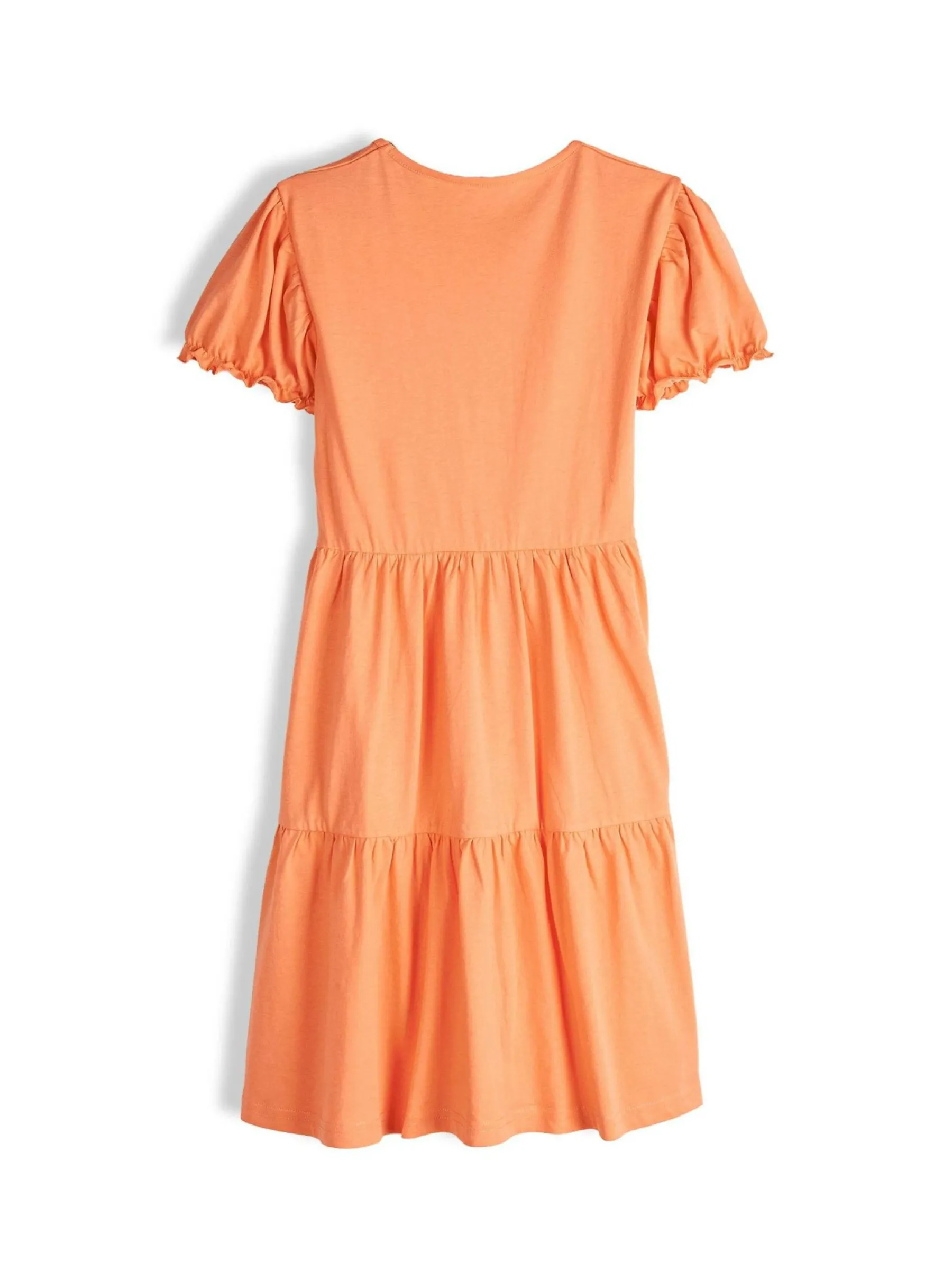 Kolor: pomarańczowyKrój: z falbanąTyp: sukienkaRekaw: krótki rękawDługość: miniPattern style: pojedynczy kolorDe…