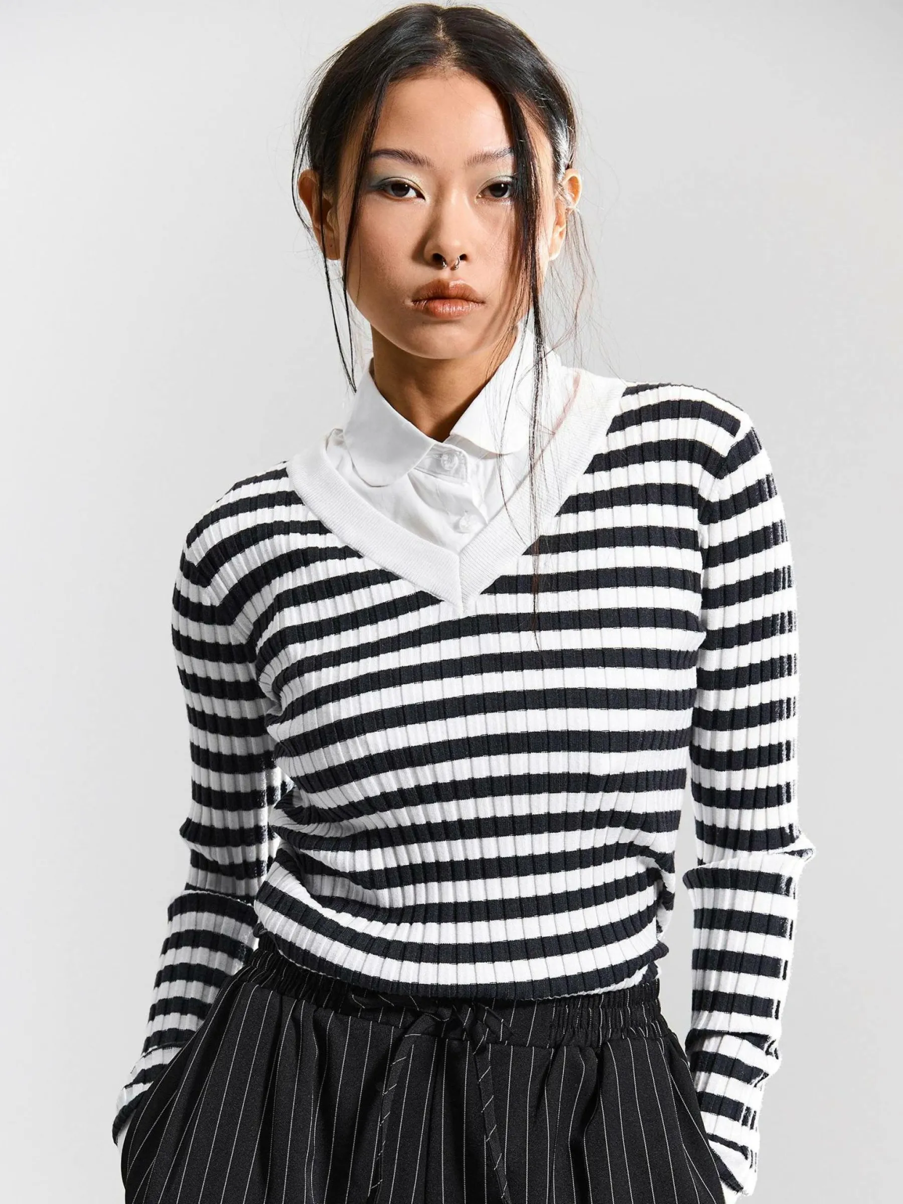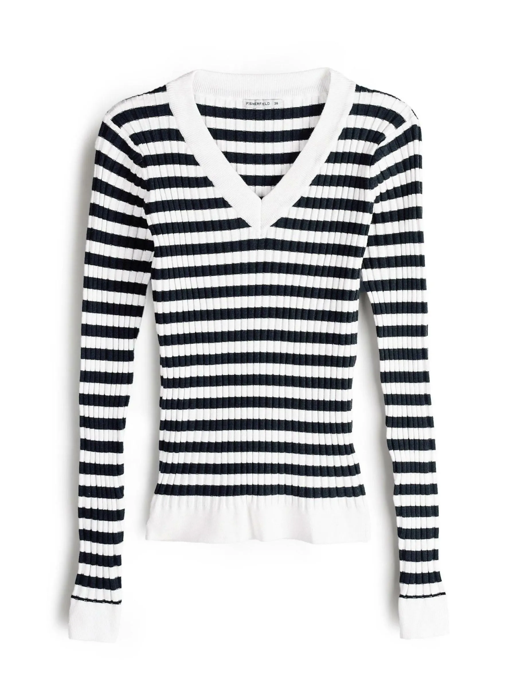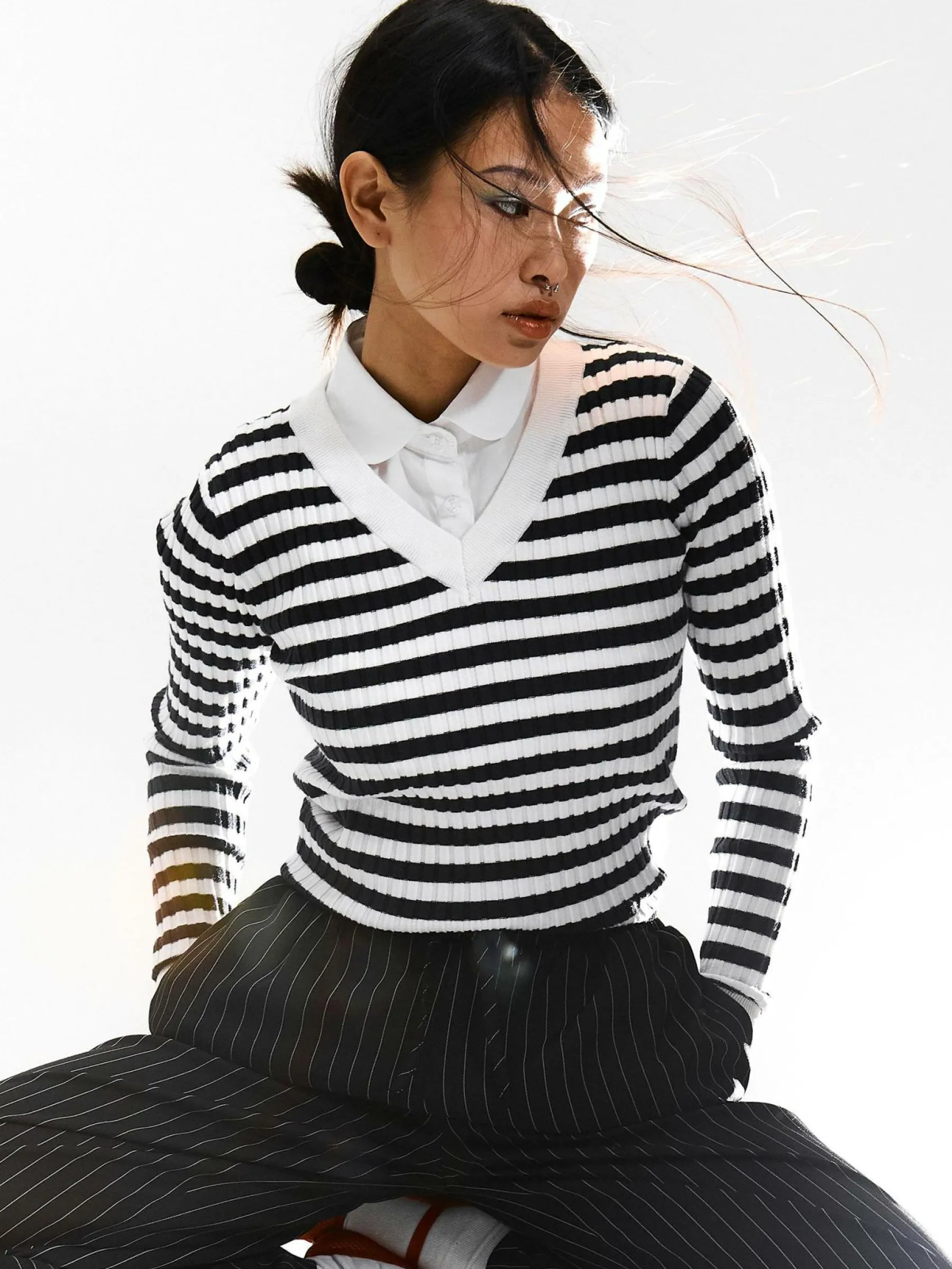 Kolor: białyKrój: regularTyp: swetryRekaw: długi rękawDługość: krótkiPattern style: w prążkiDetal: v-neck, nad…