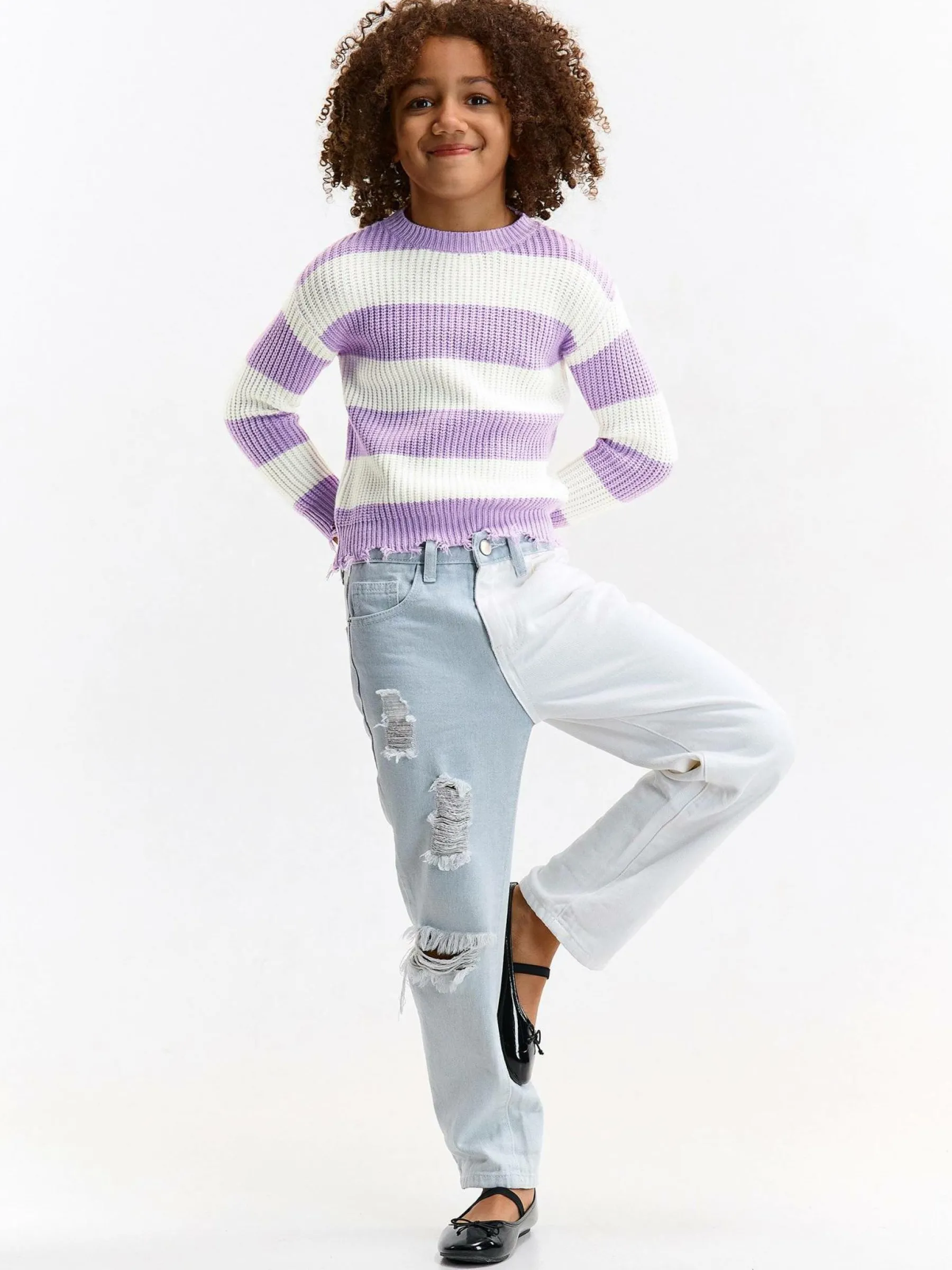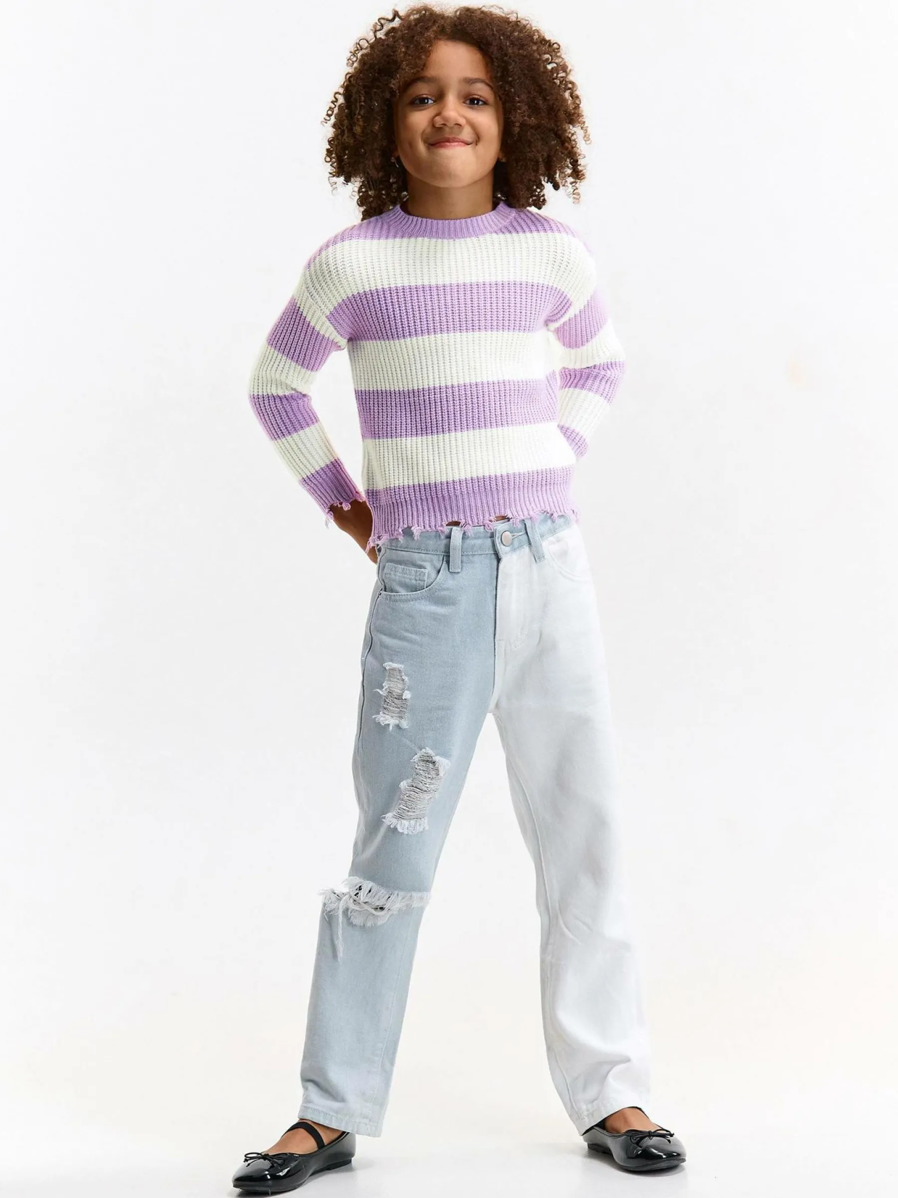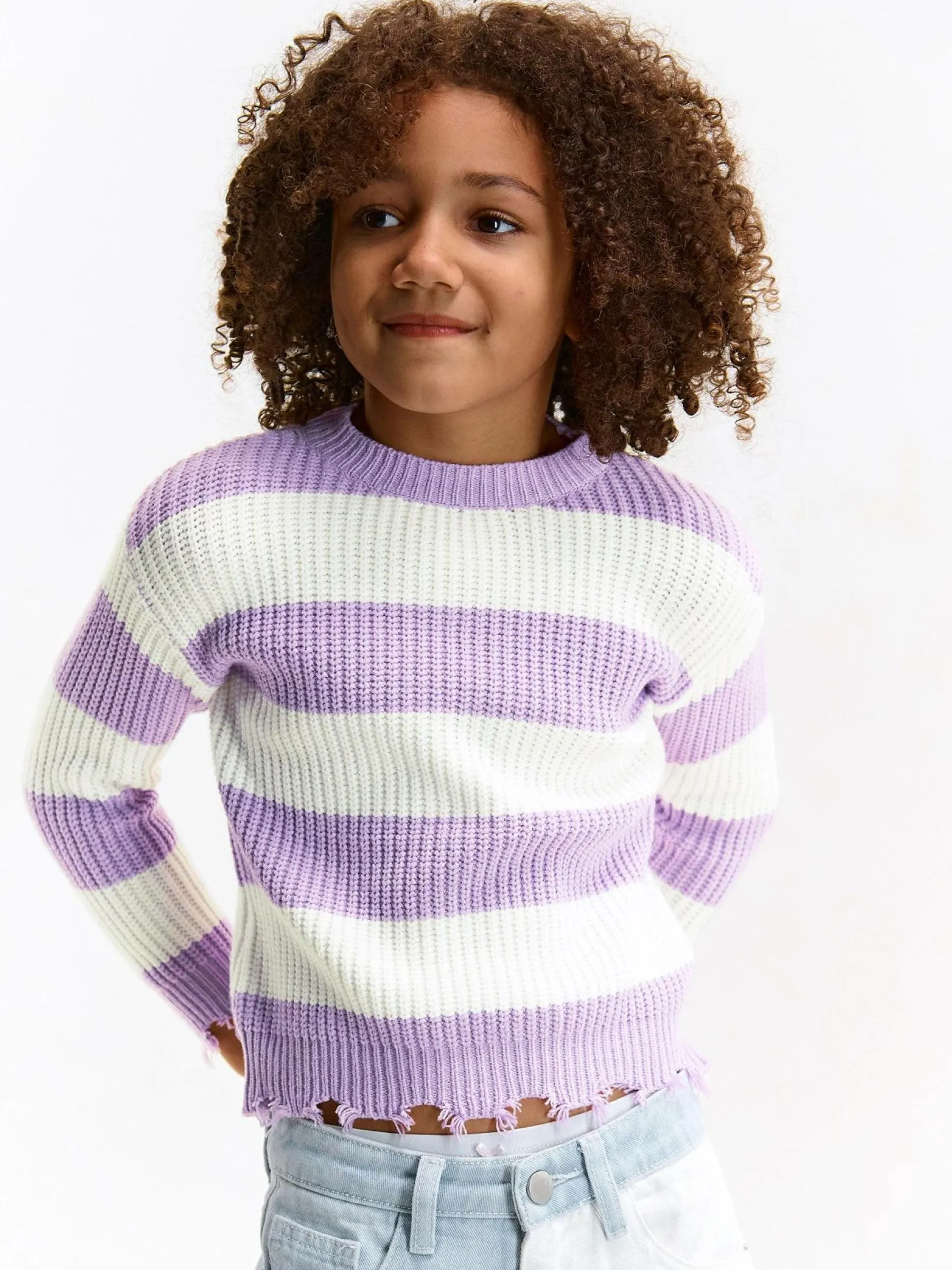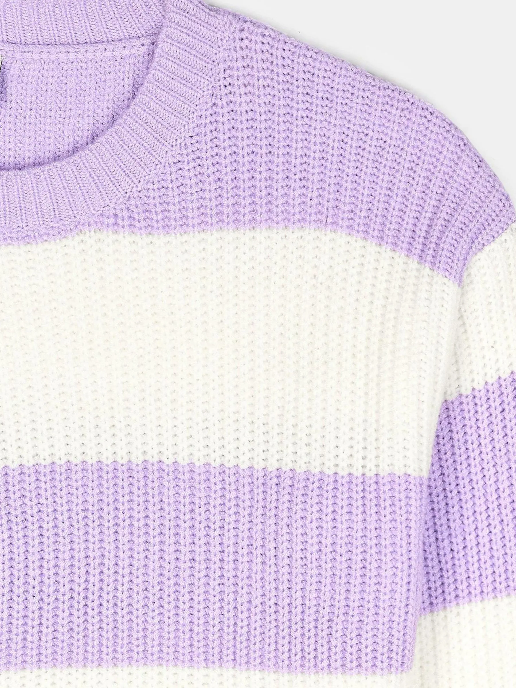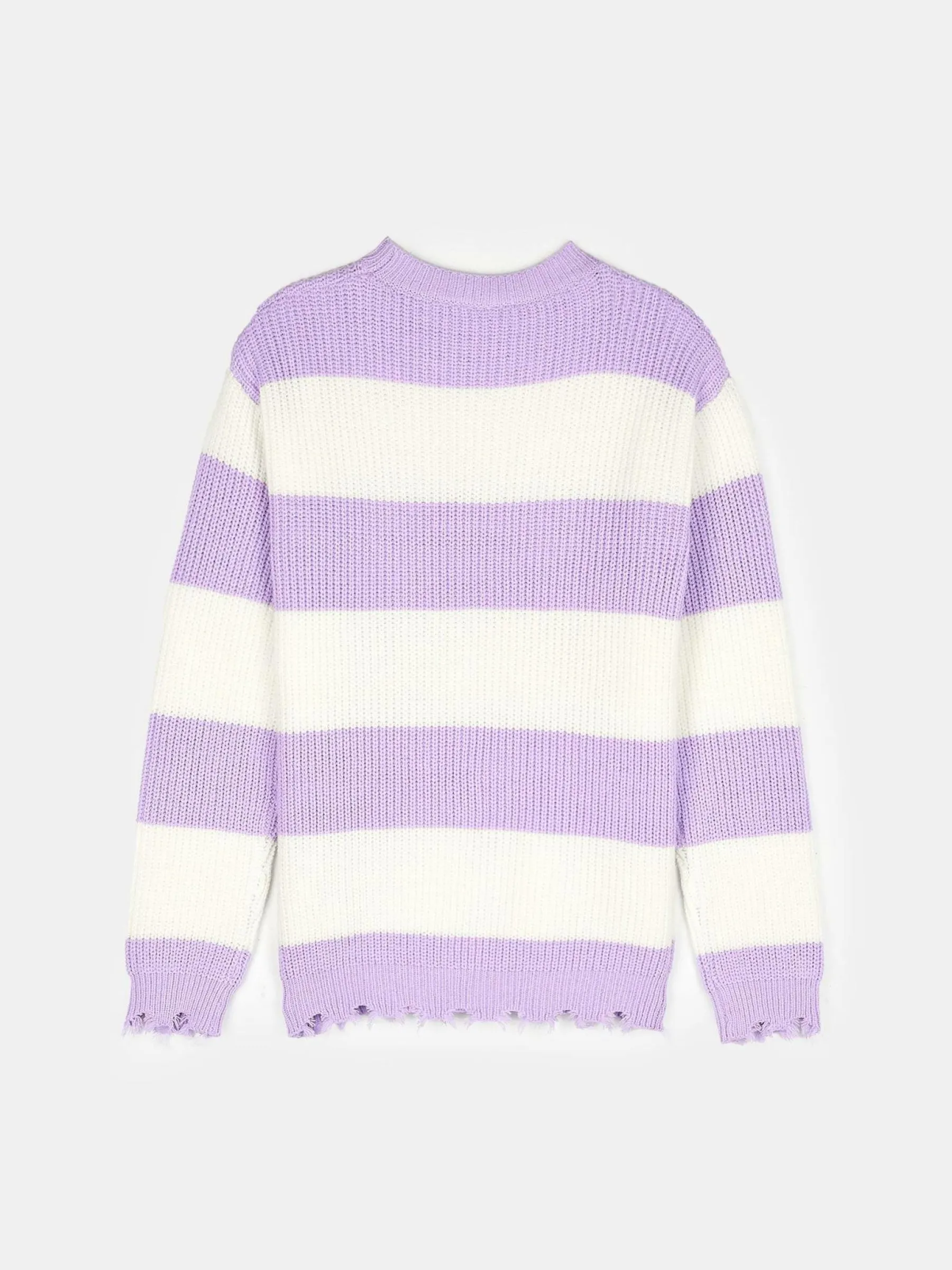 Kolor: purpurowyKrój: regularTyp: swetryRekaw: długi rękawDługość: krótkiPattern style: w prążkiDetal: nad gło…
