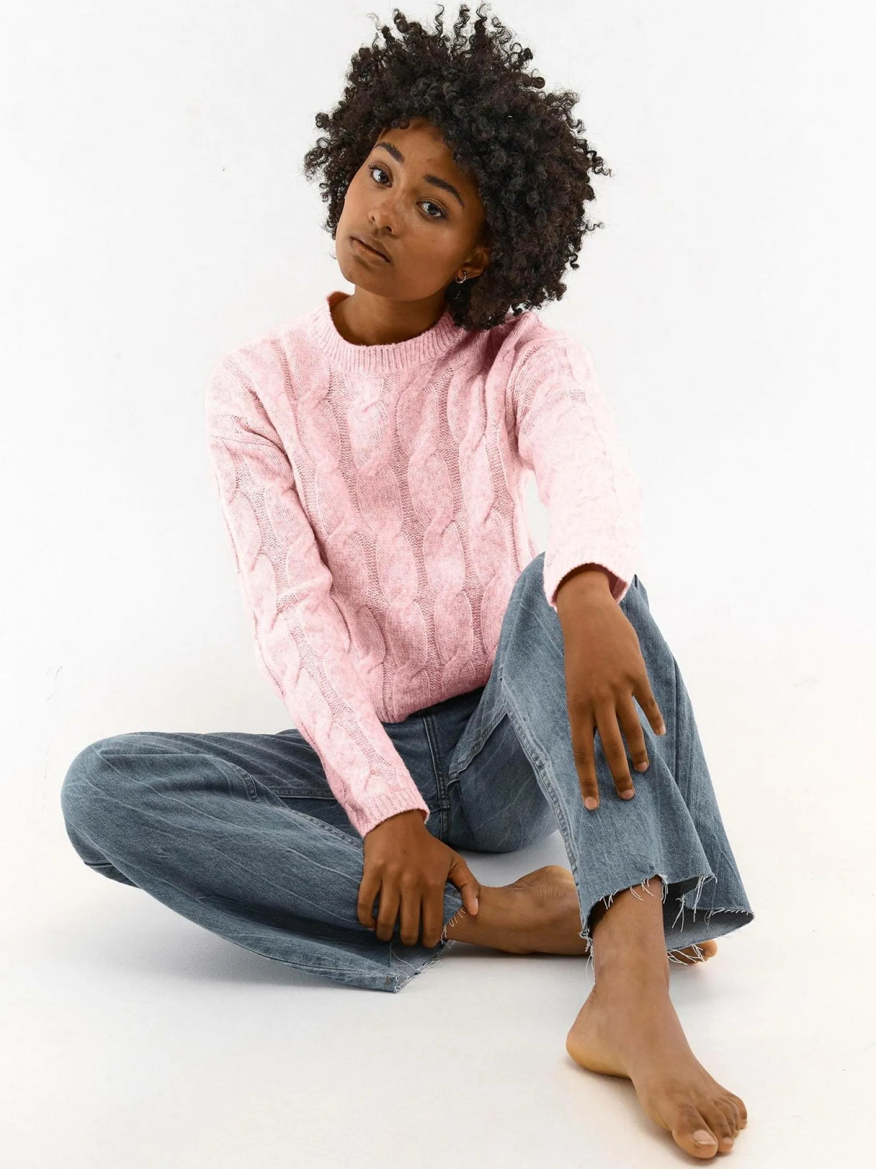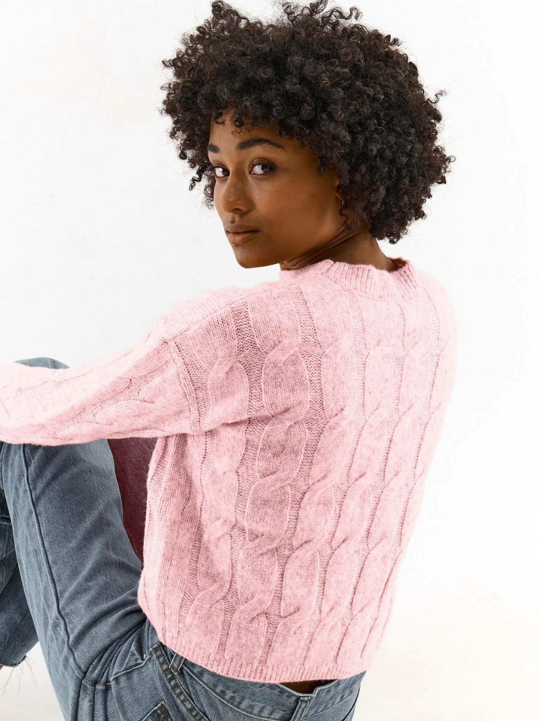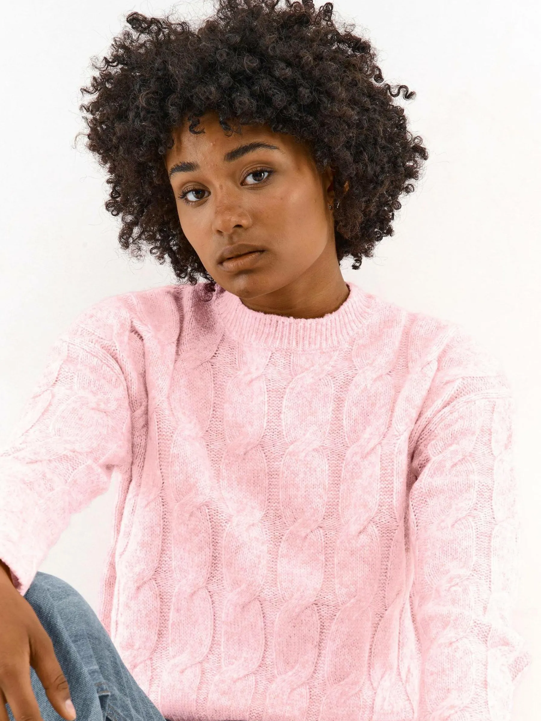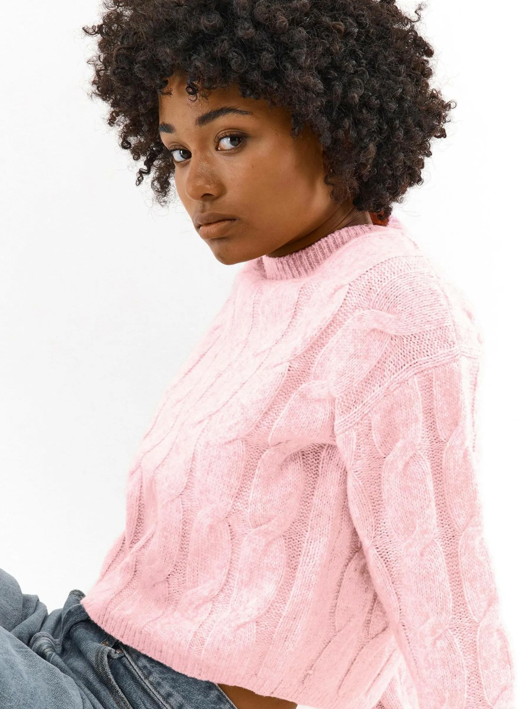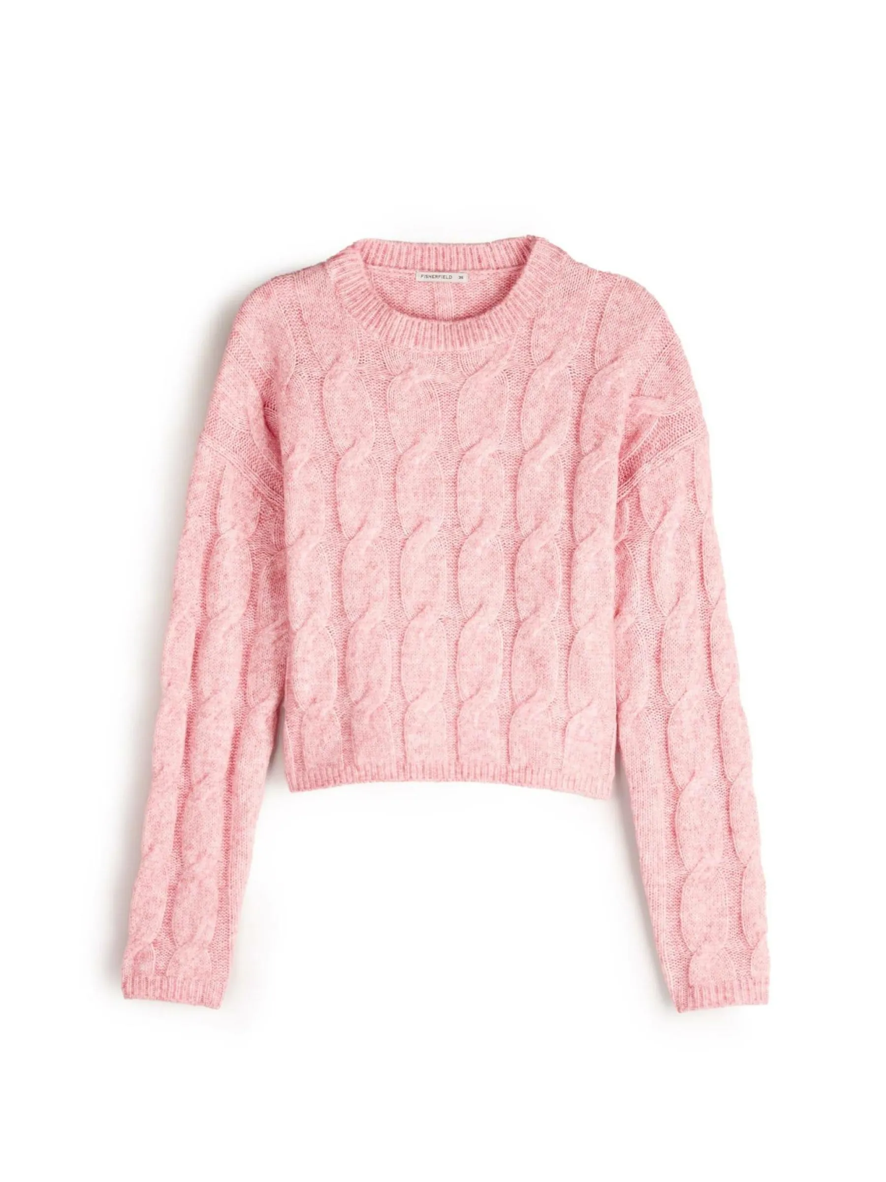 Kolor: różowyKrój: regularTyp: swetryRekaw: długi rękawDługość: krótkiPattern style: pojedynczy kolor, struktur…