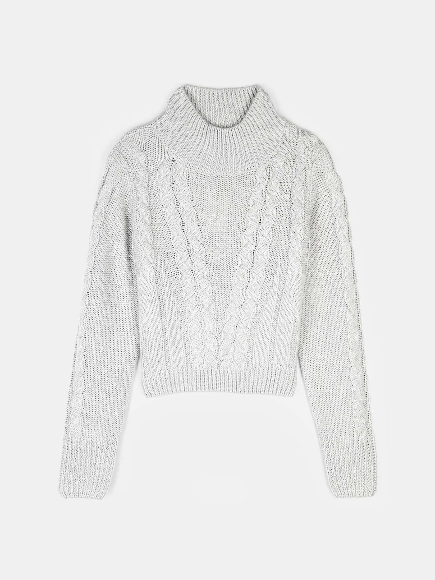 Kolor: szaryKrój: regularTyp: swetryRekaw: długi rękawDługość: krótkiPattern style: pojedynczy kolor, strukturowa…