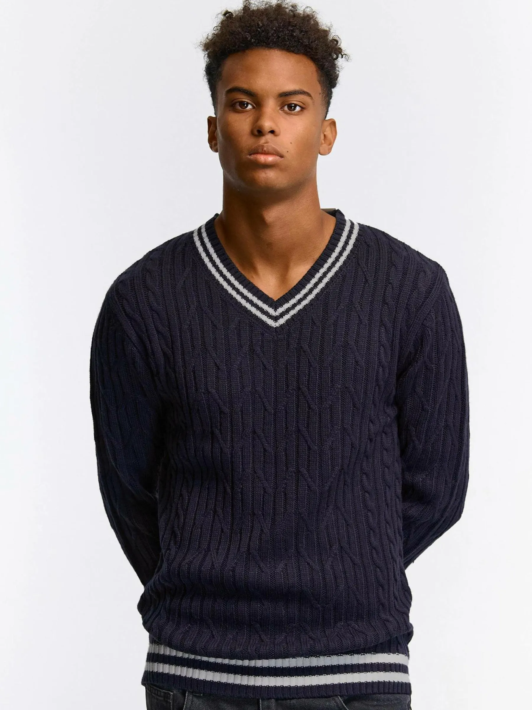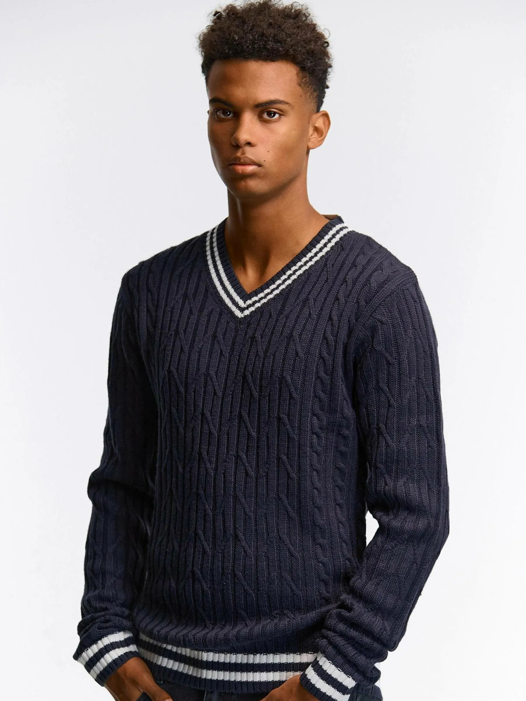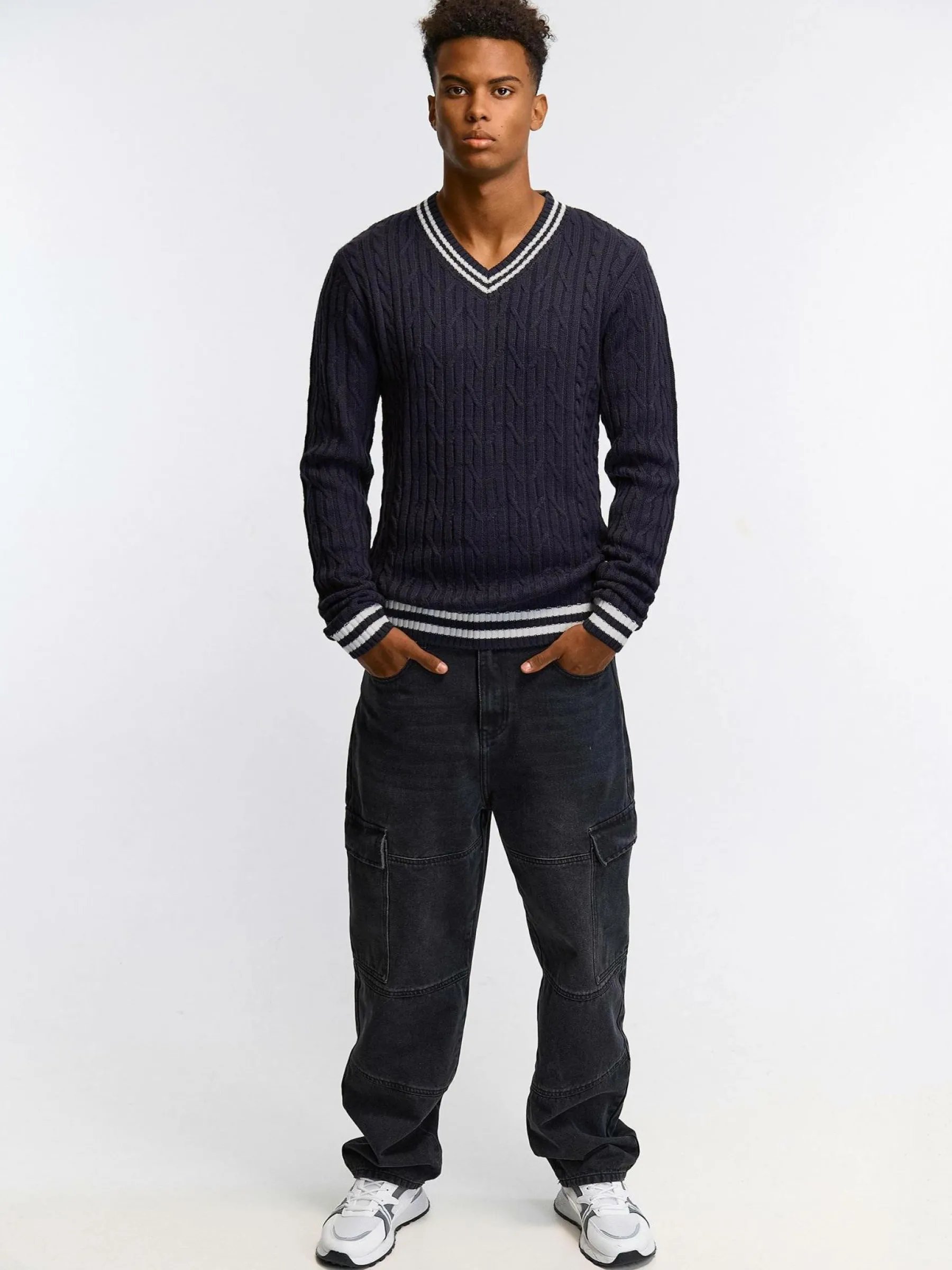 Kolor: granatowy, niebieskiKrój: podstawowyTyp: swetryRekaw: długi rękawPattern style: pojedynczy kolor, strukturowan…