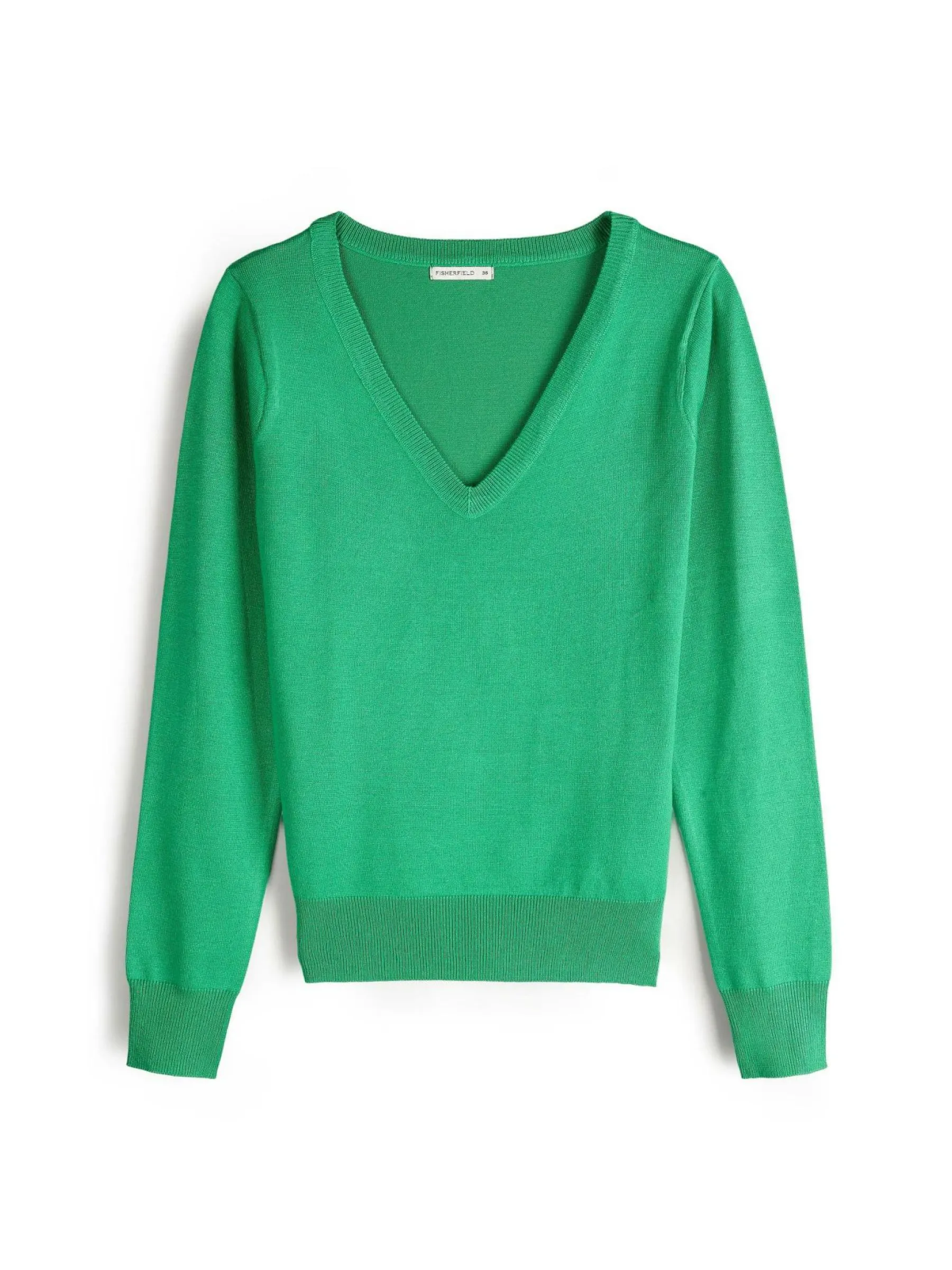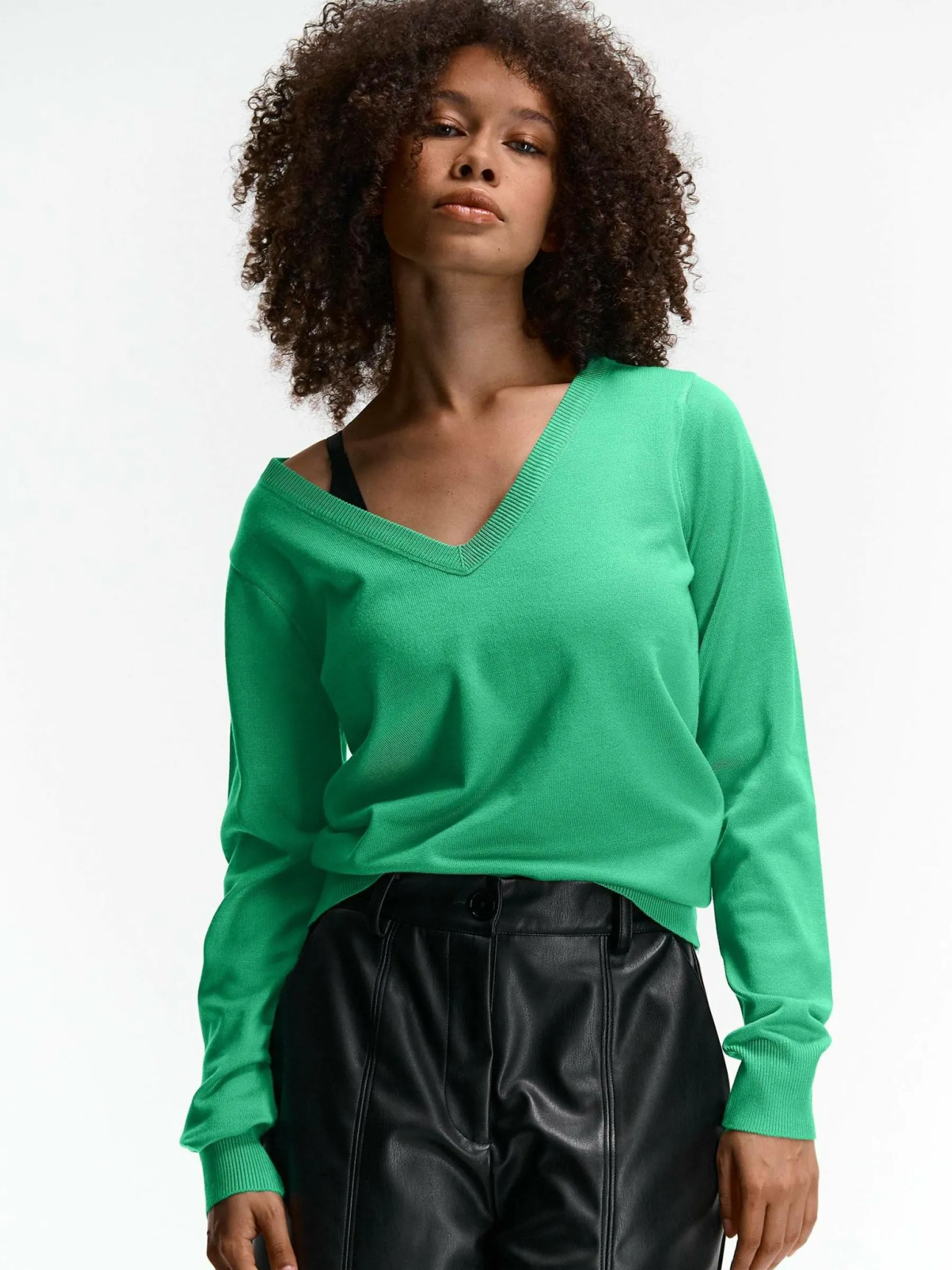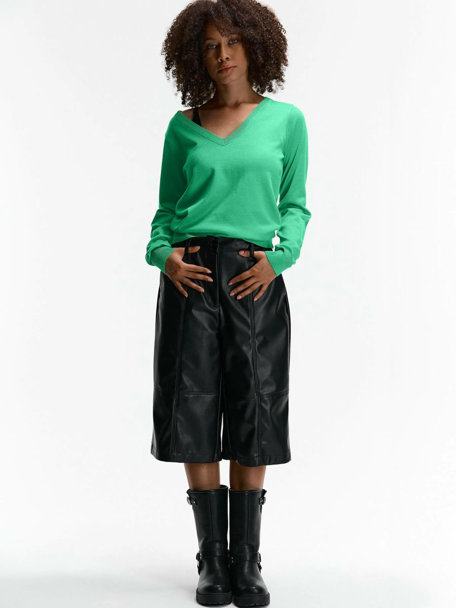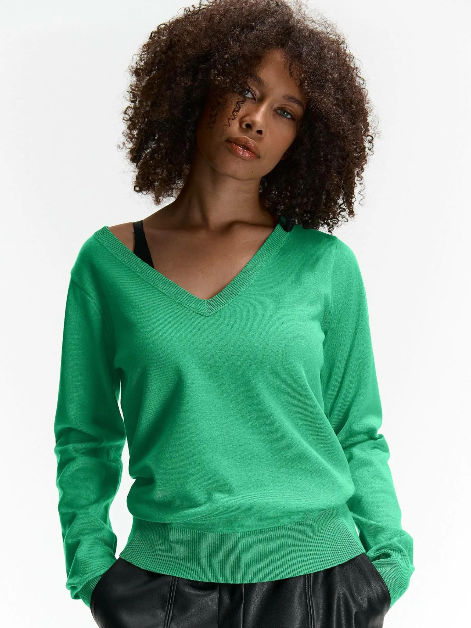 Kolor: zielonyKrój: regularTyp: swetryRekaw: długi rękawDługość: krótkiPattern style: pojedynczy kolorDetal: v-ne…
