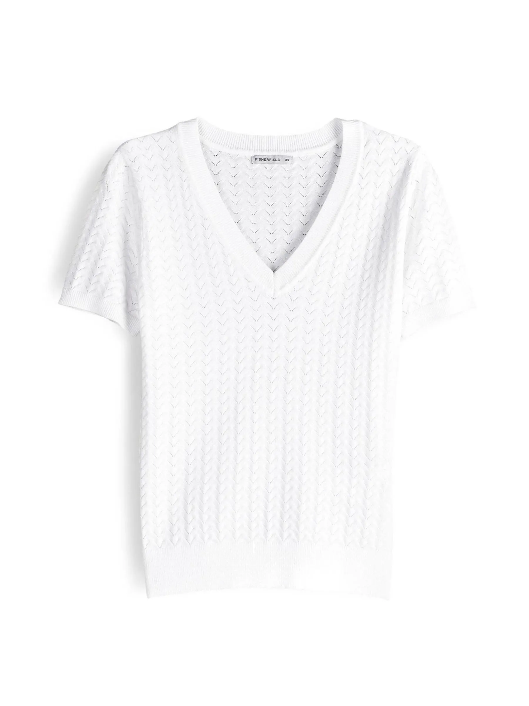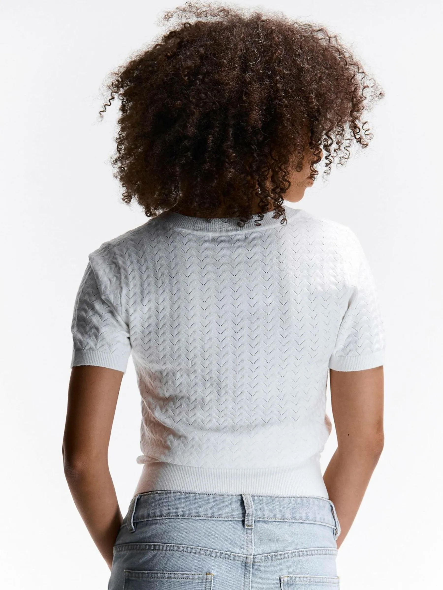 Kolor: białyKrój: regularTyp: top, swetryRekaw: krótki rękawDługość: krótkiPattern style: pojedynczy kolor, stru…