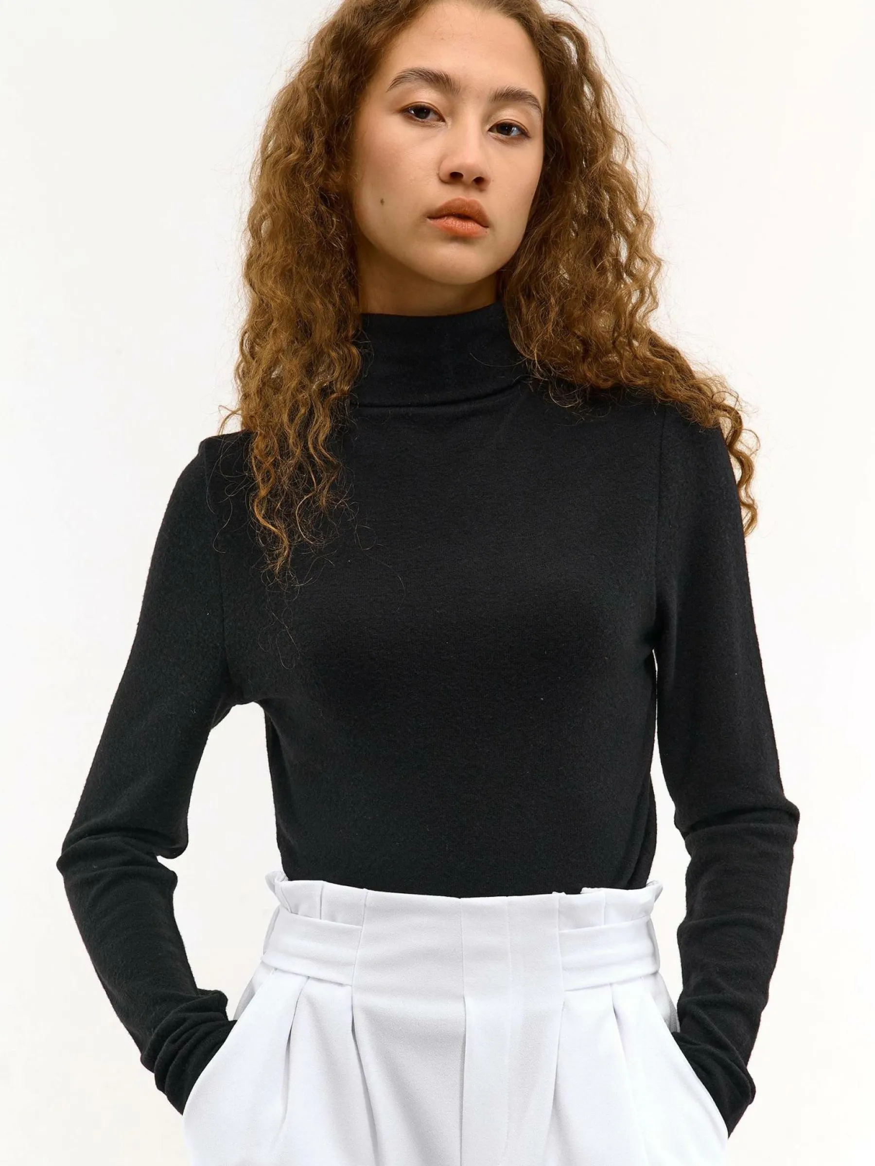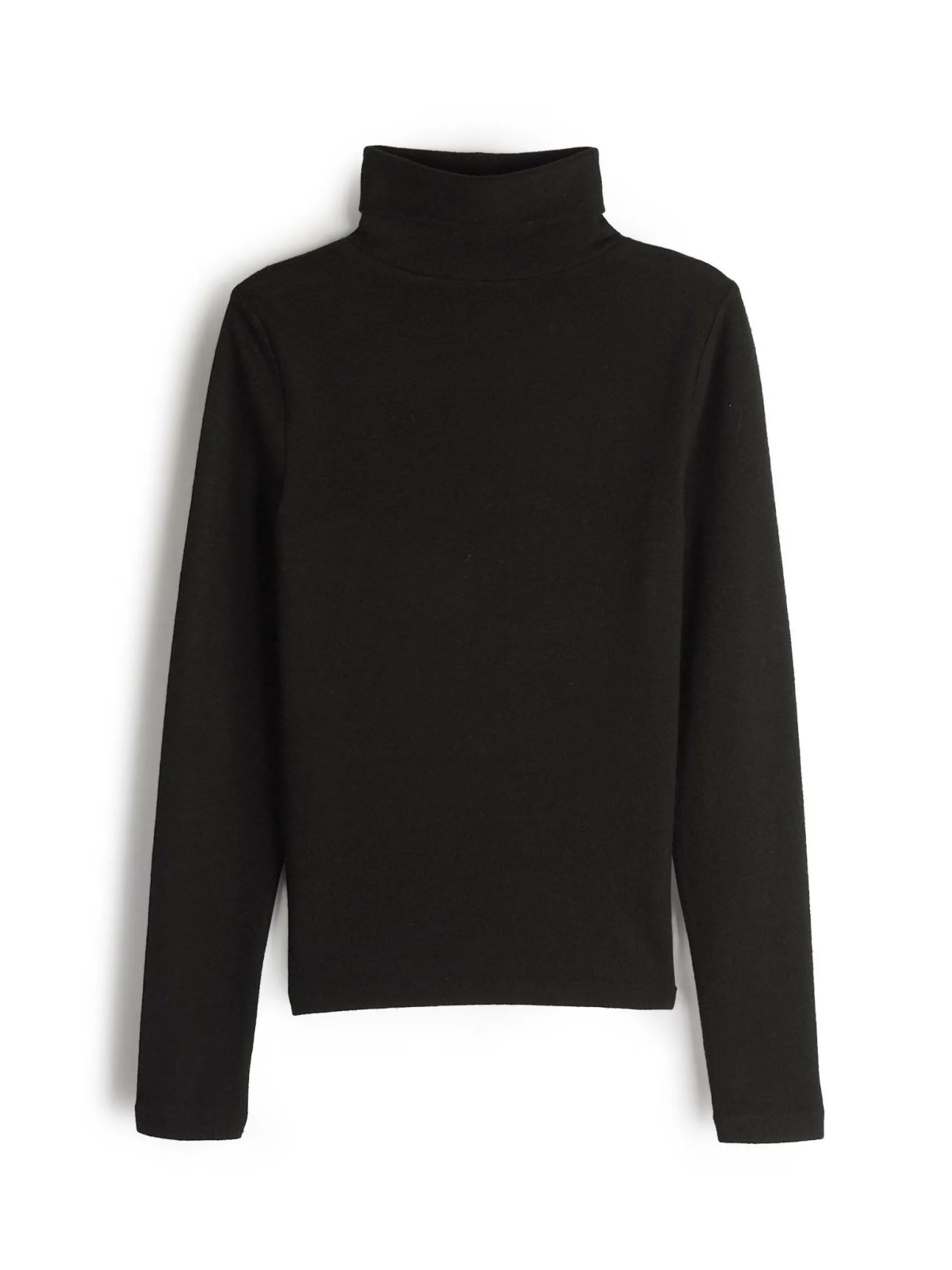 Kolor: czarnyKrój: regularTyp: golfRekaw: długi rękawDługość: krótkiPattern style: pojedynczy kolorDetal: nad gł…