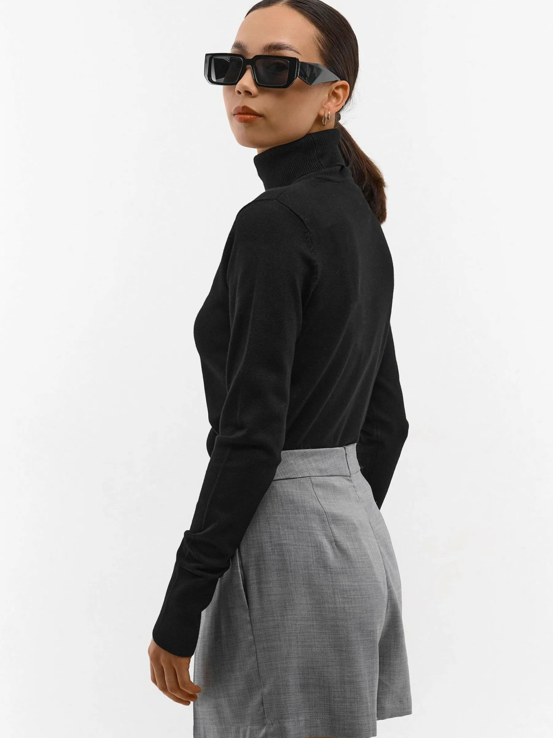 Kolor: czarnyKrój: regularTyp: golfRekaw: długi rękawDługość: krótkiPattern style: pojedynczy kolorDetal: nad gł…