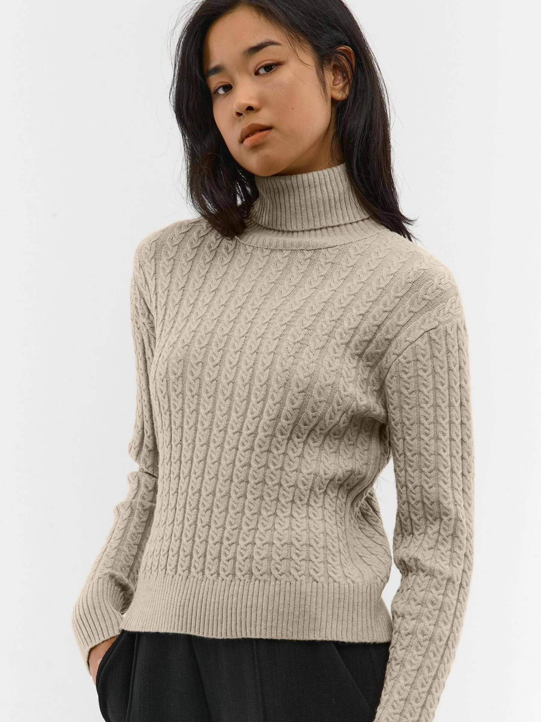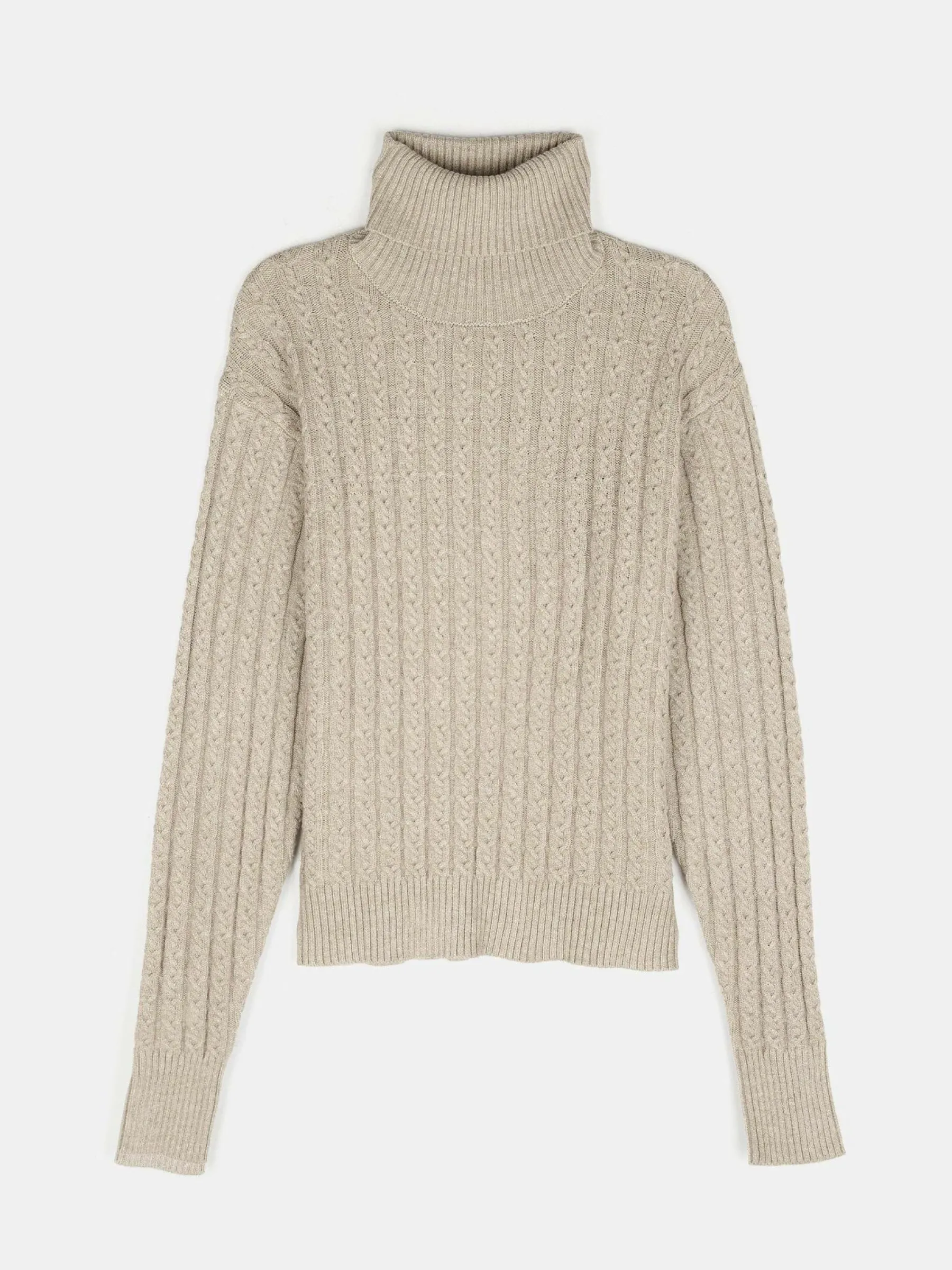 Kolor: beżowyKrój: regularTyp: golfRekaw: długi rękawDługość: krótkiPattern style: pojedynczy kolor, strukturowa…