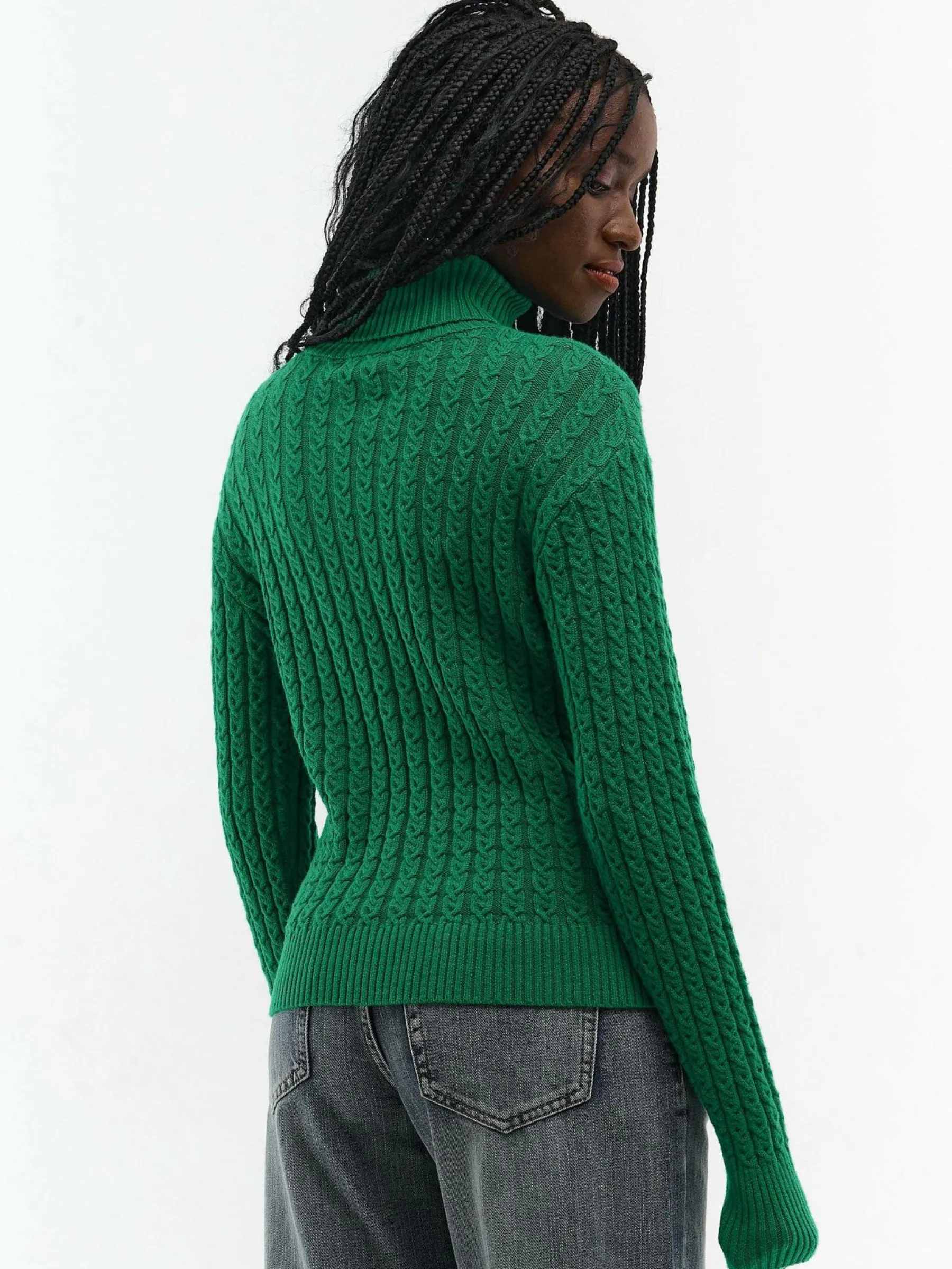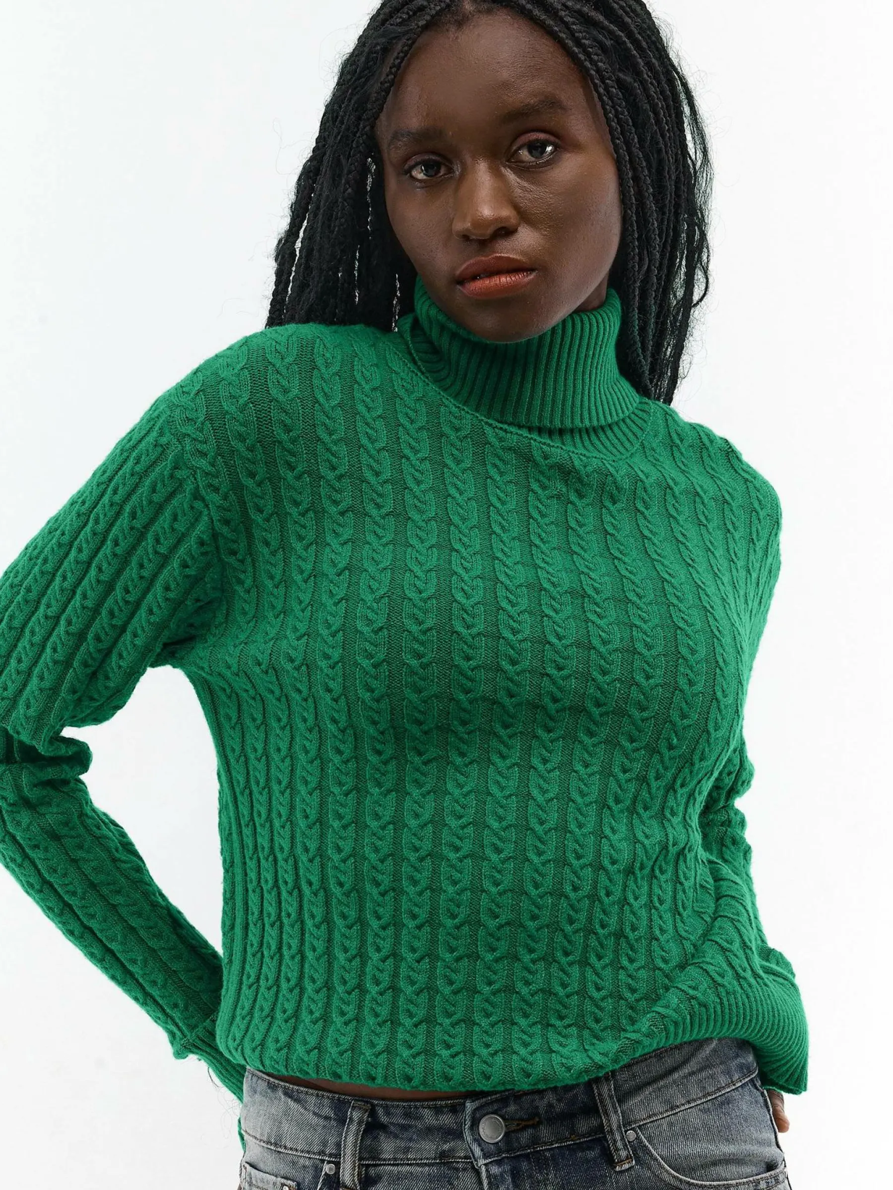 Kolor: zielonyKrój: regularTyp: golfRekaw: długi rękawDługość: krótkiPattern style: pojedynczy kolor, strukturowa…