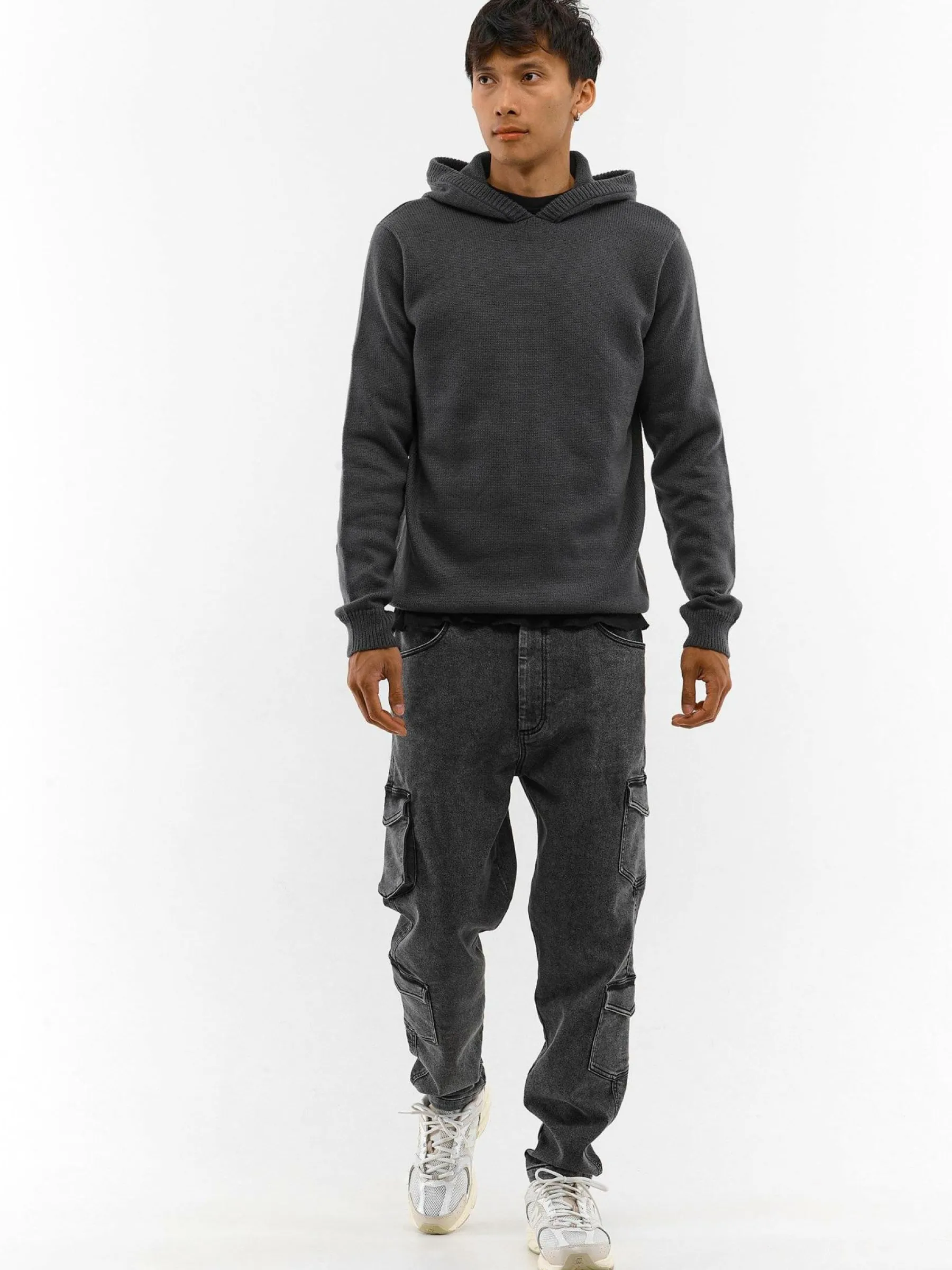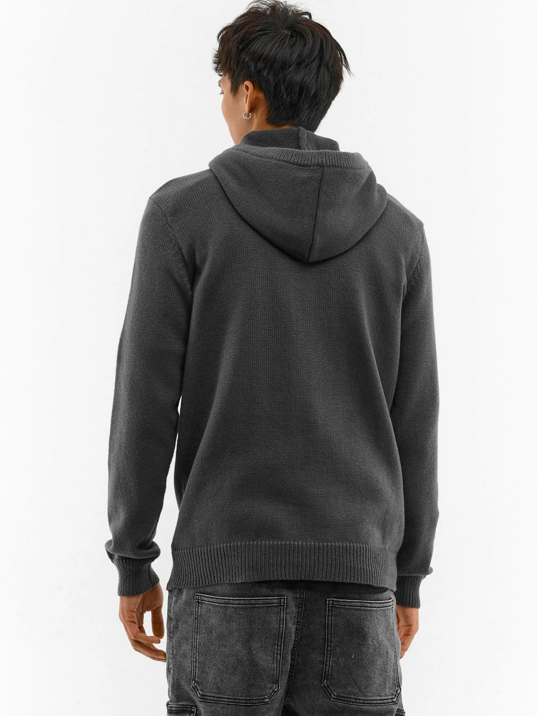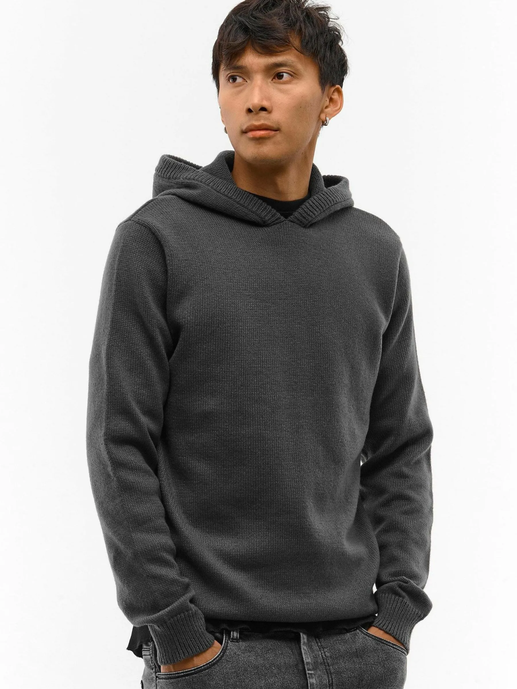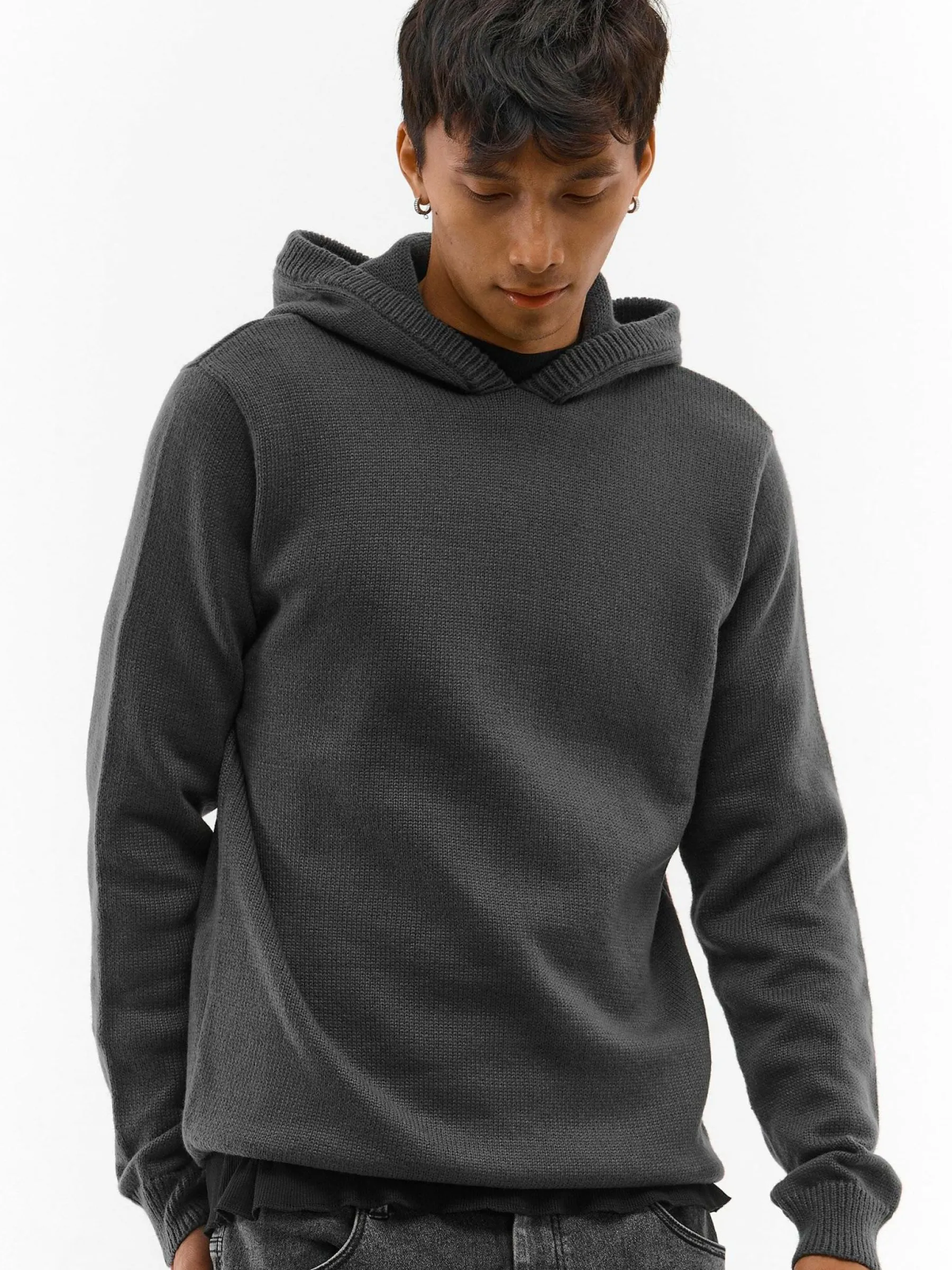 Kolor: szaryKrój: regularTyp: swetryRekaw: długi rękawPattern style: pojedynczy kolorDetal: bluza z kapturem, nad gł…