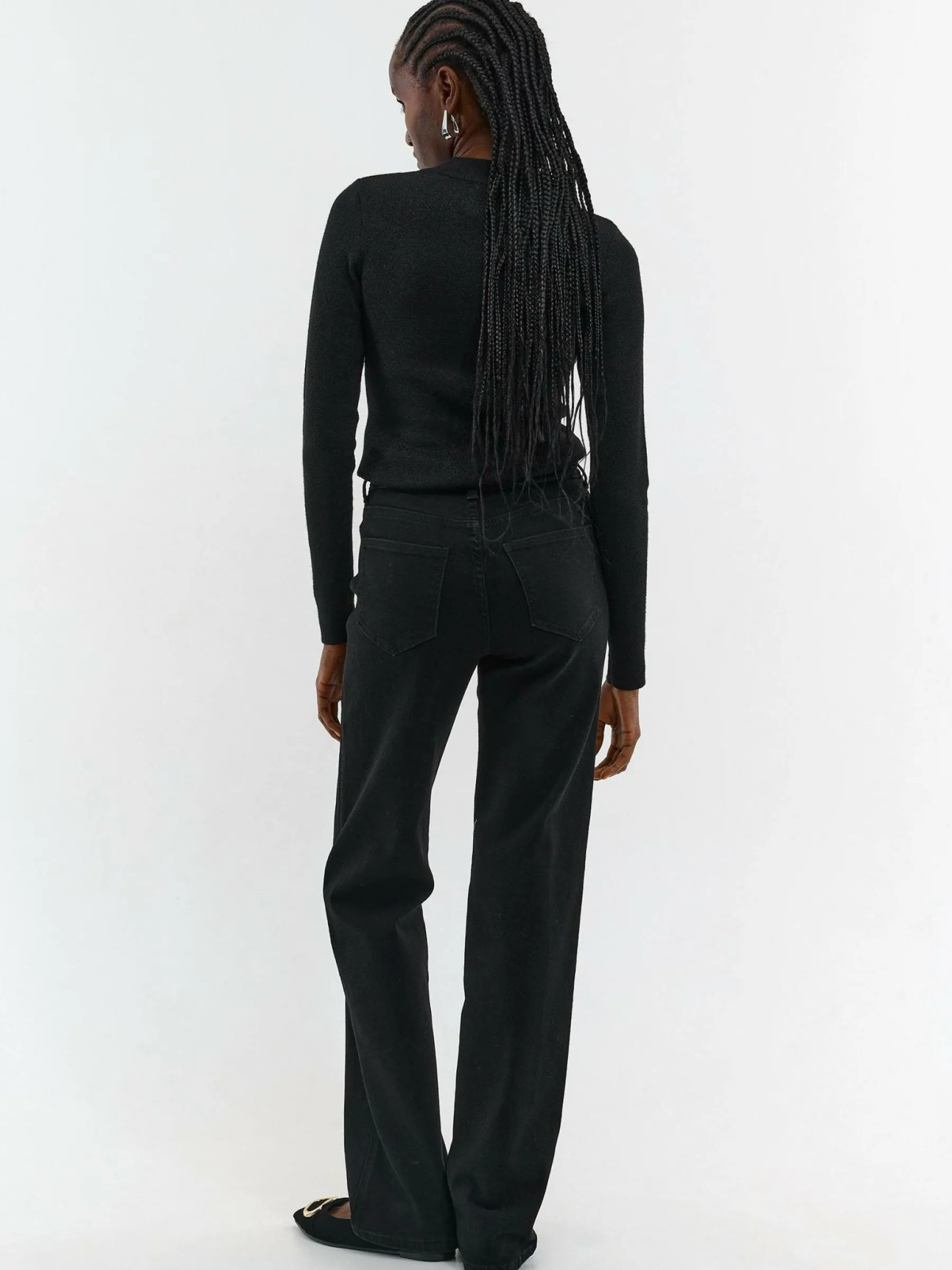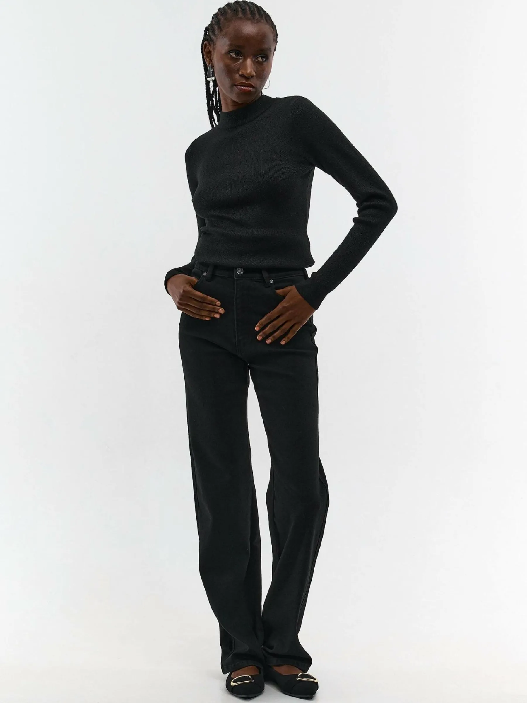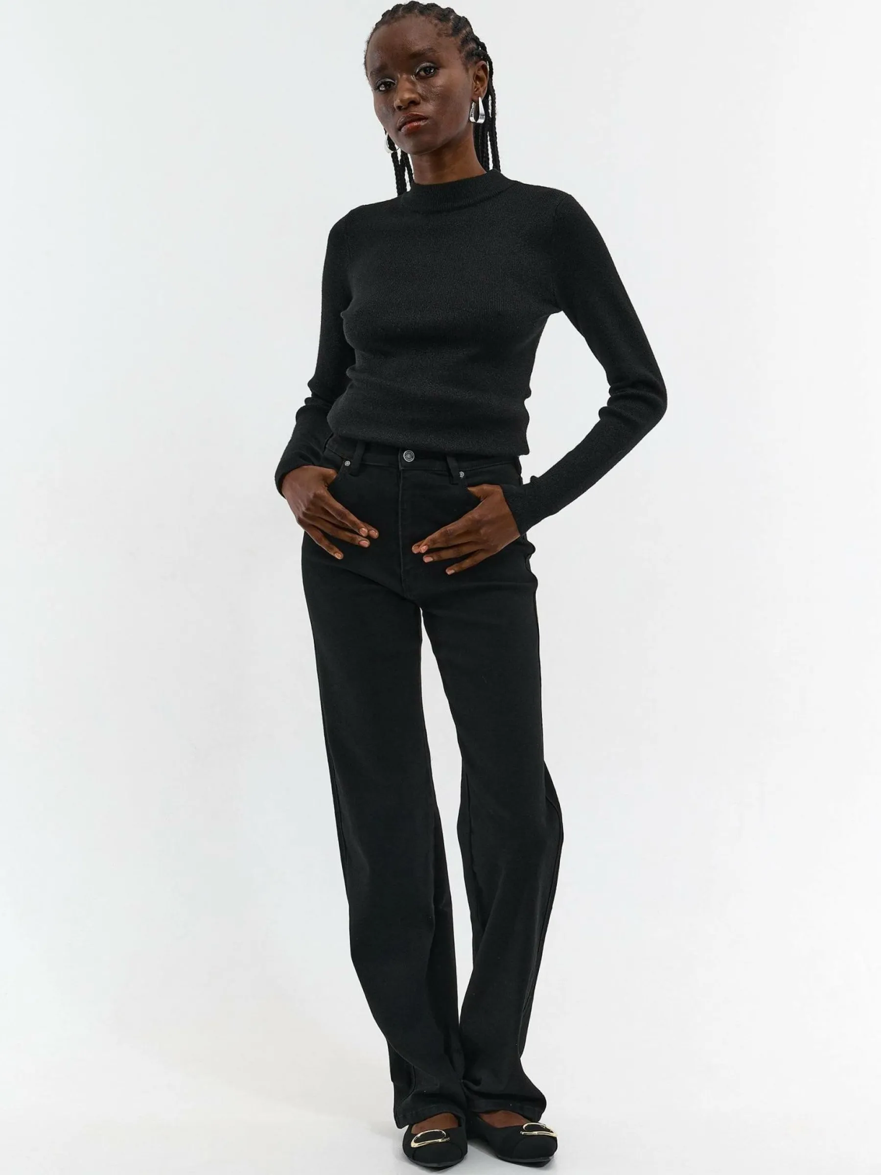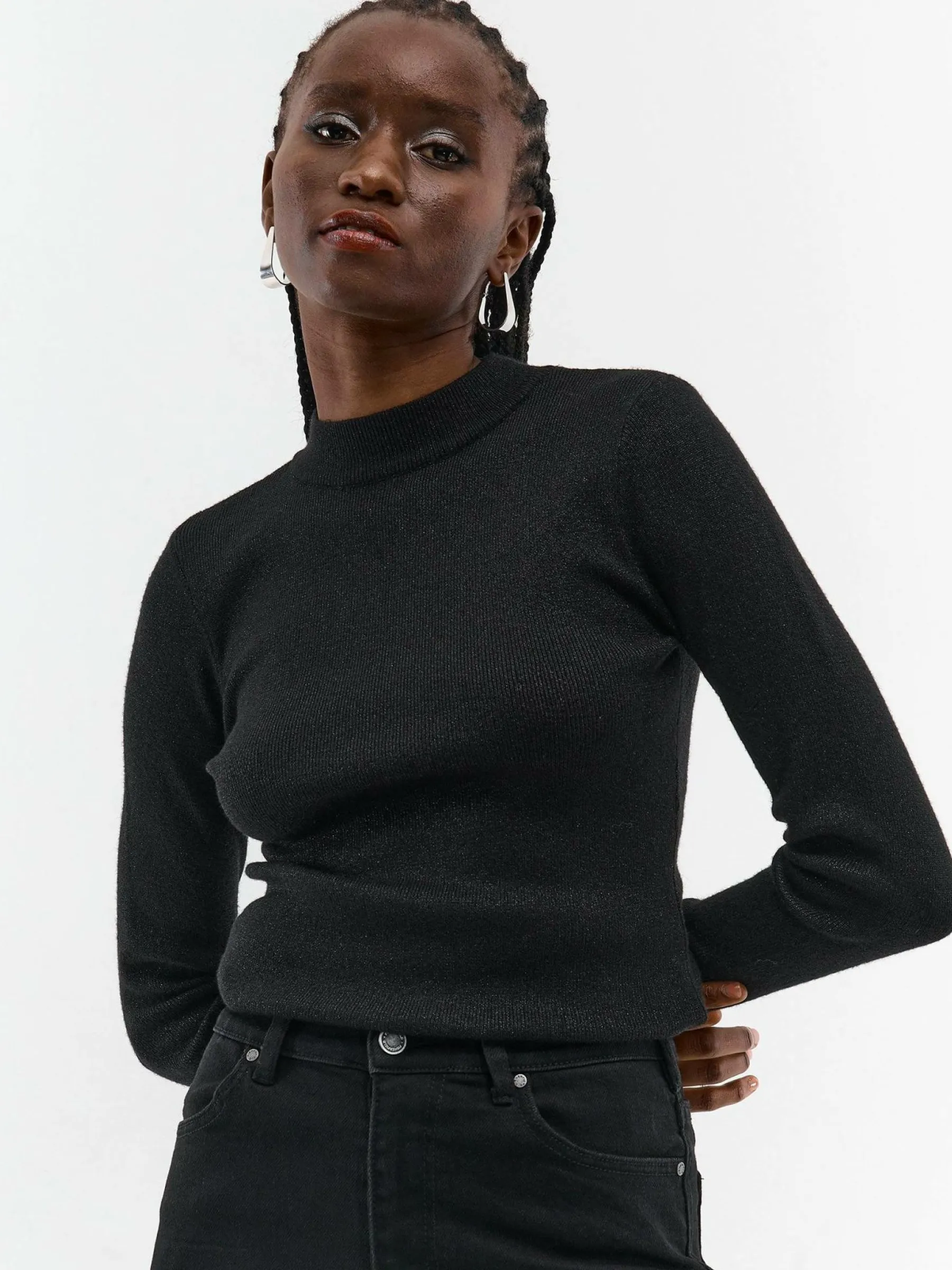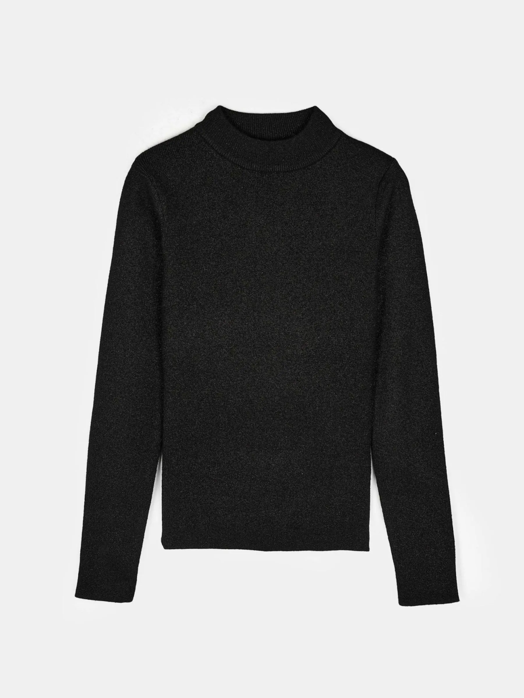 Kolor: czarnyKrój: regularTyp: swetryRekaw: długi rękawDługość: krótkiPattern style: z włóknem metalicznym, poj…