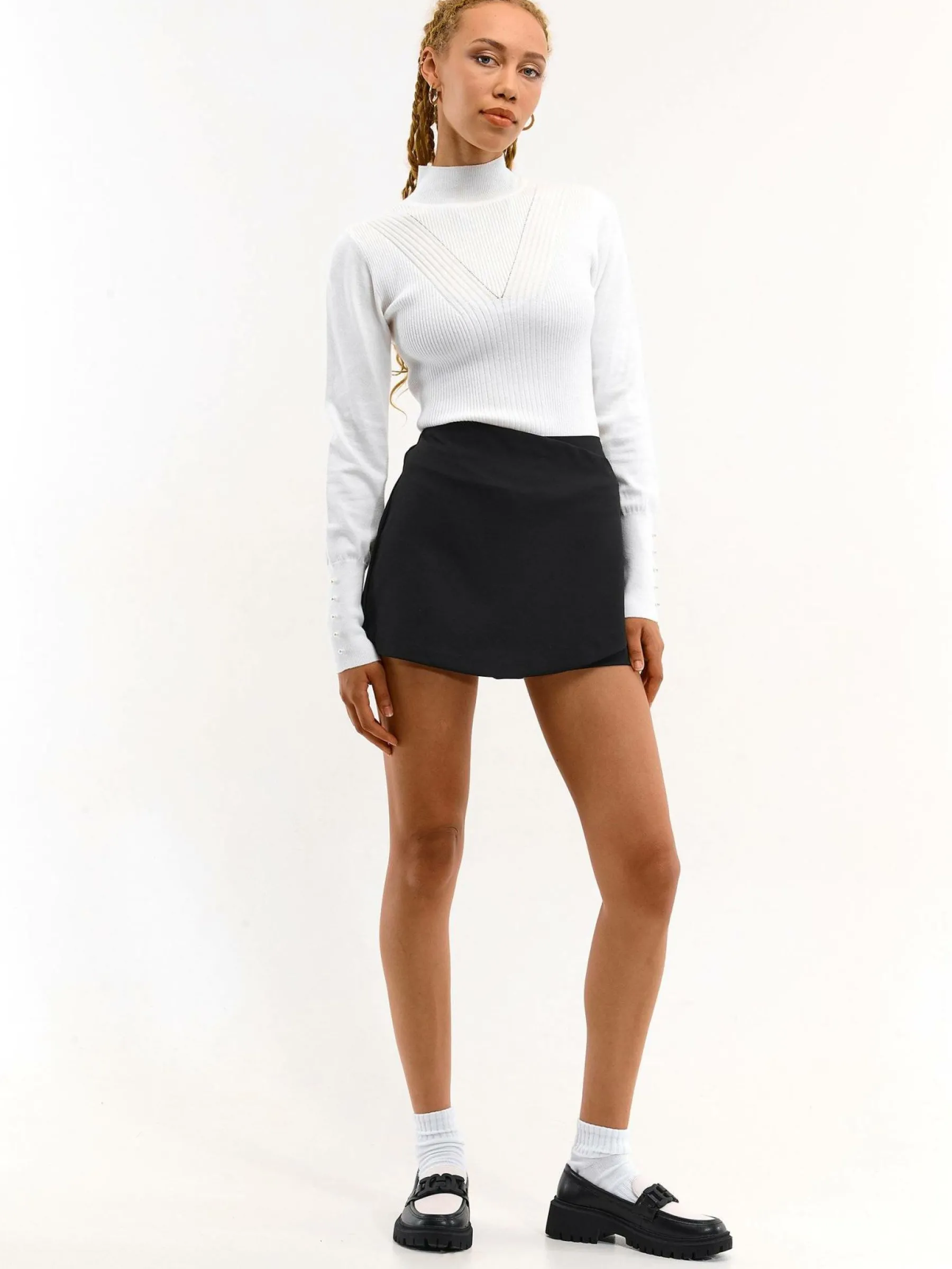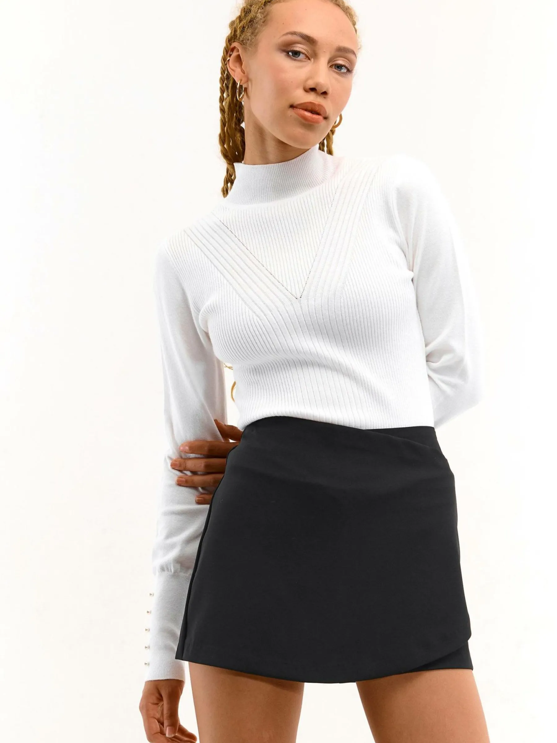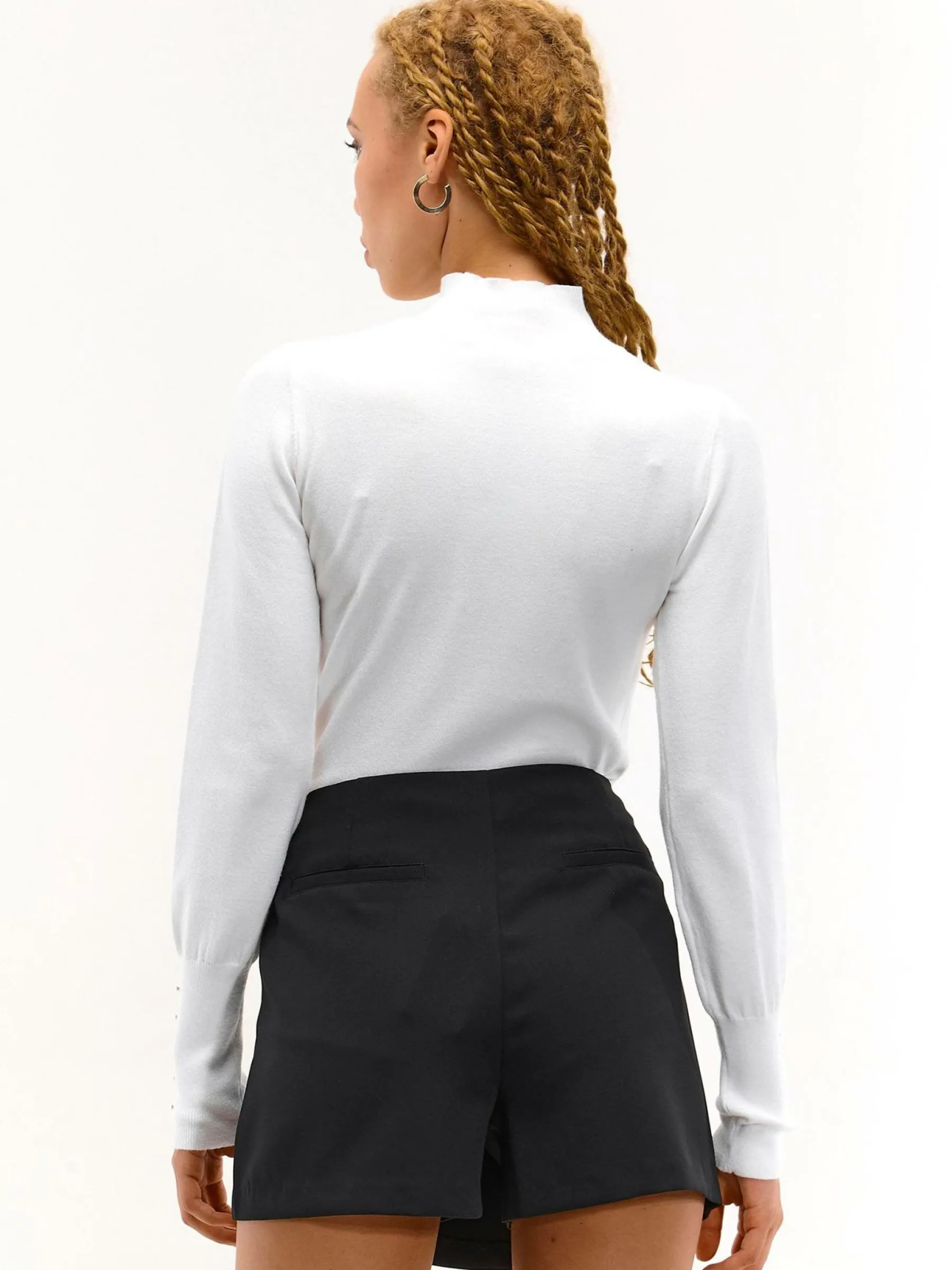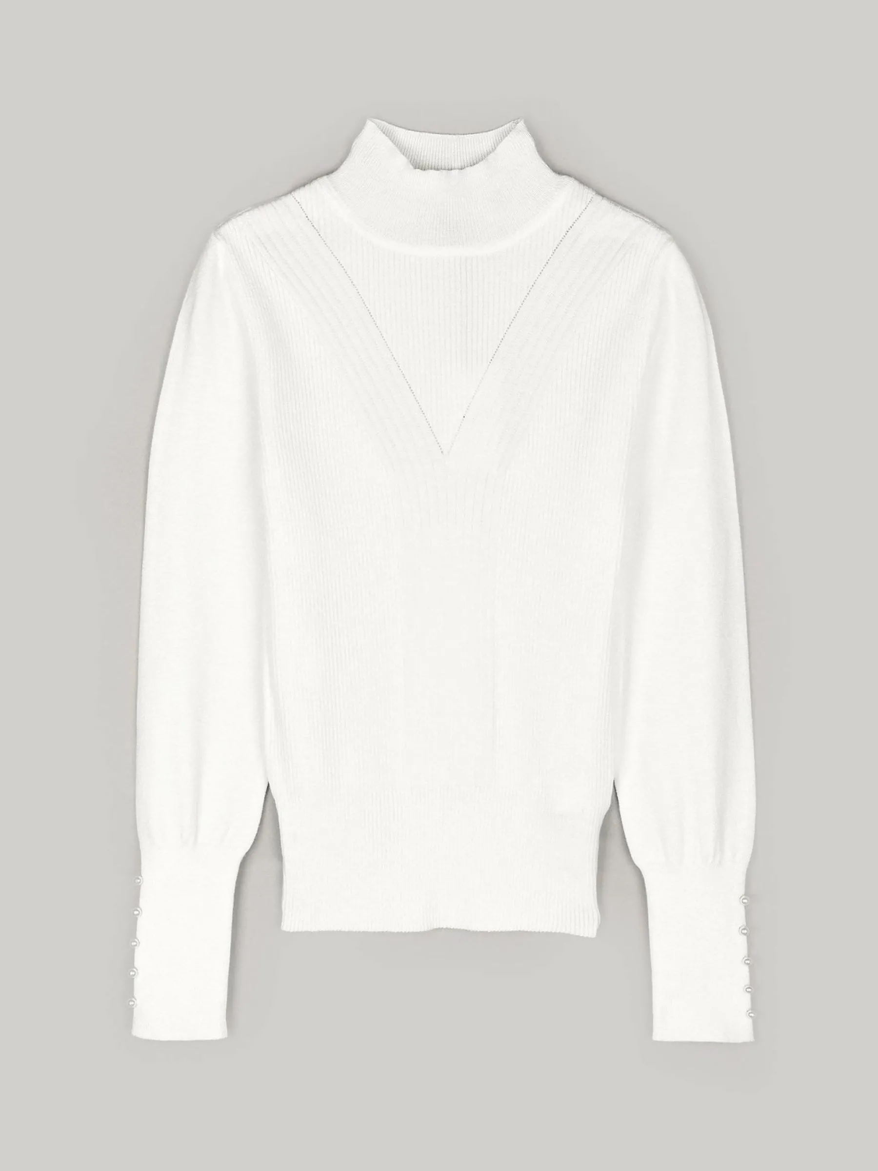 Kolor: białyKrój: regularTyp: swetry, golfRekaw: długi rękawDługość: krótkiPattern style: pojedynczy kolor, żeb…