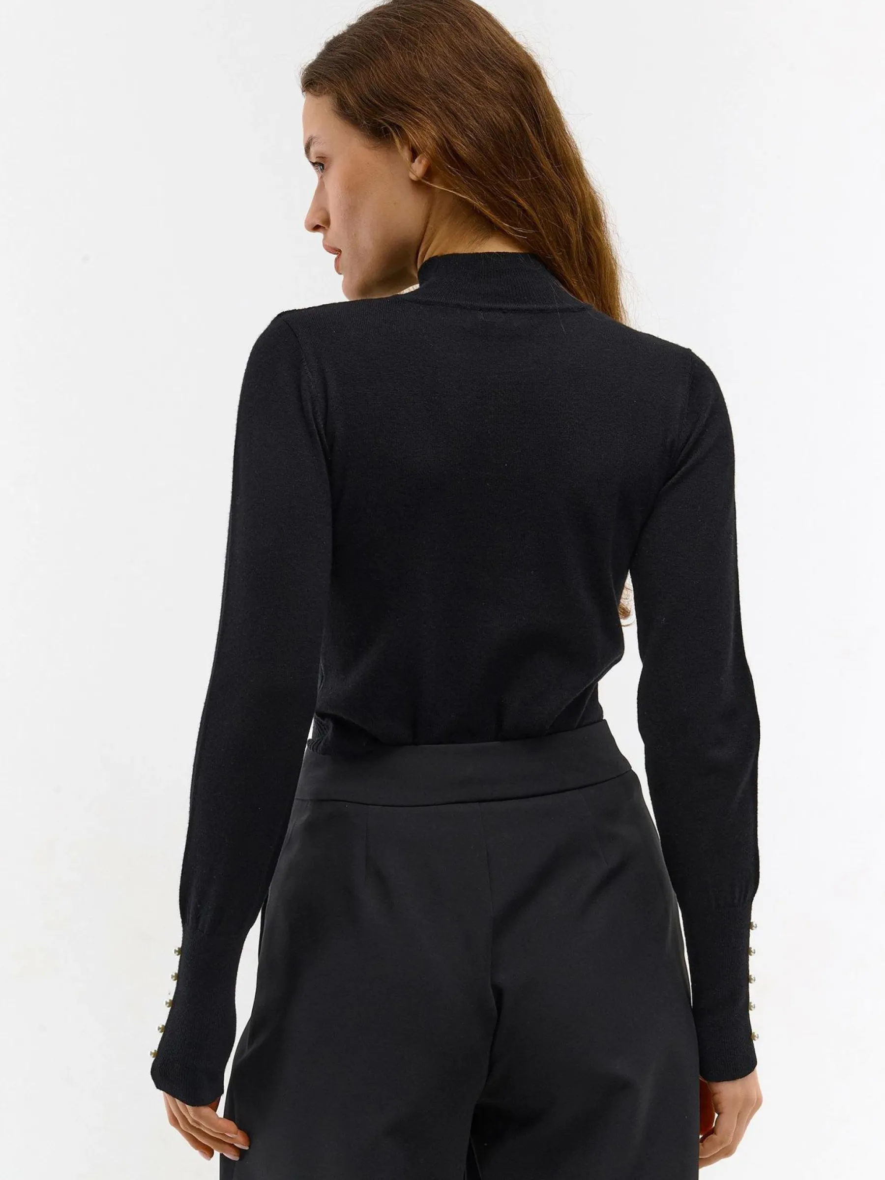 Kolor: czarnyKrój: regularTyp: swetry, golfRekaw: długi rękawDługość: krótkiPattern style: pojedynczy kolor, żeb…