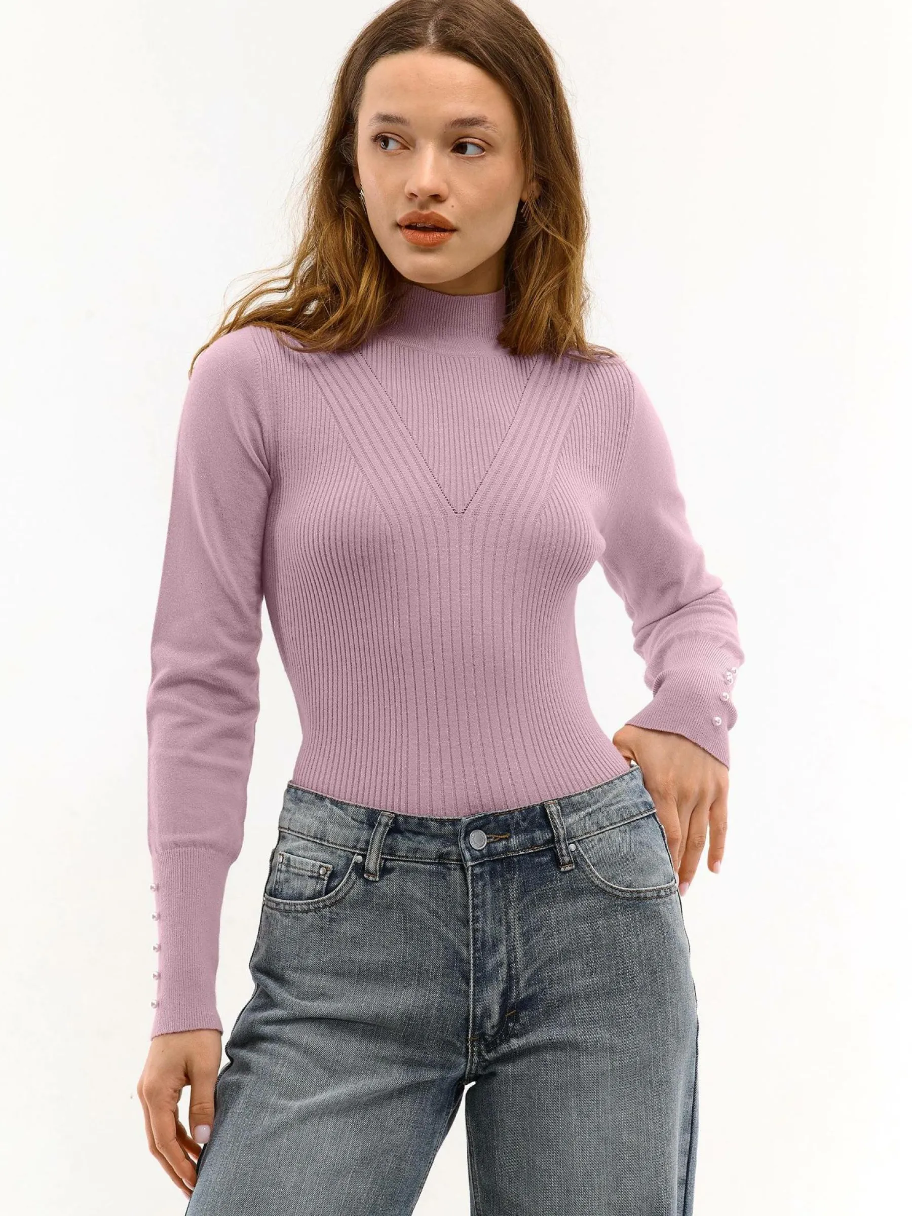 Kolor: różowyKrój: regularTyp: swetryRekaw: długi rękawDługość: krótkiPattern style: pojedynczy kolor, żebrowa…