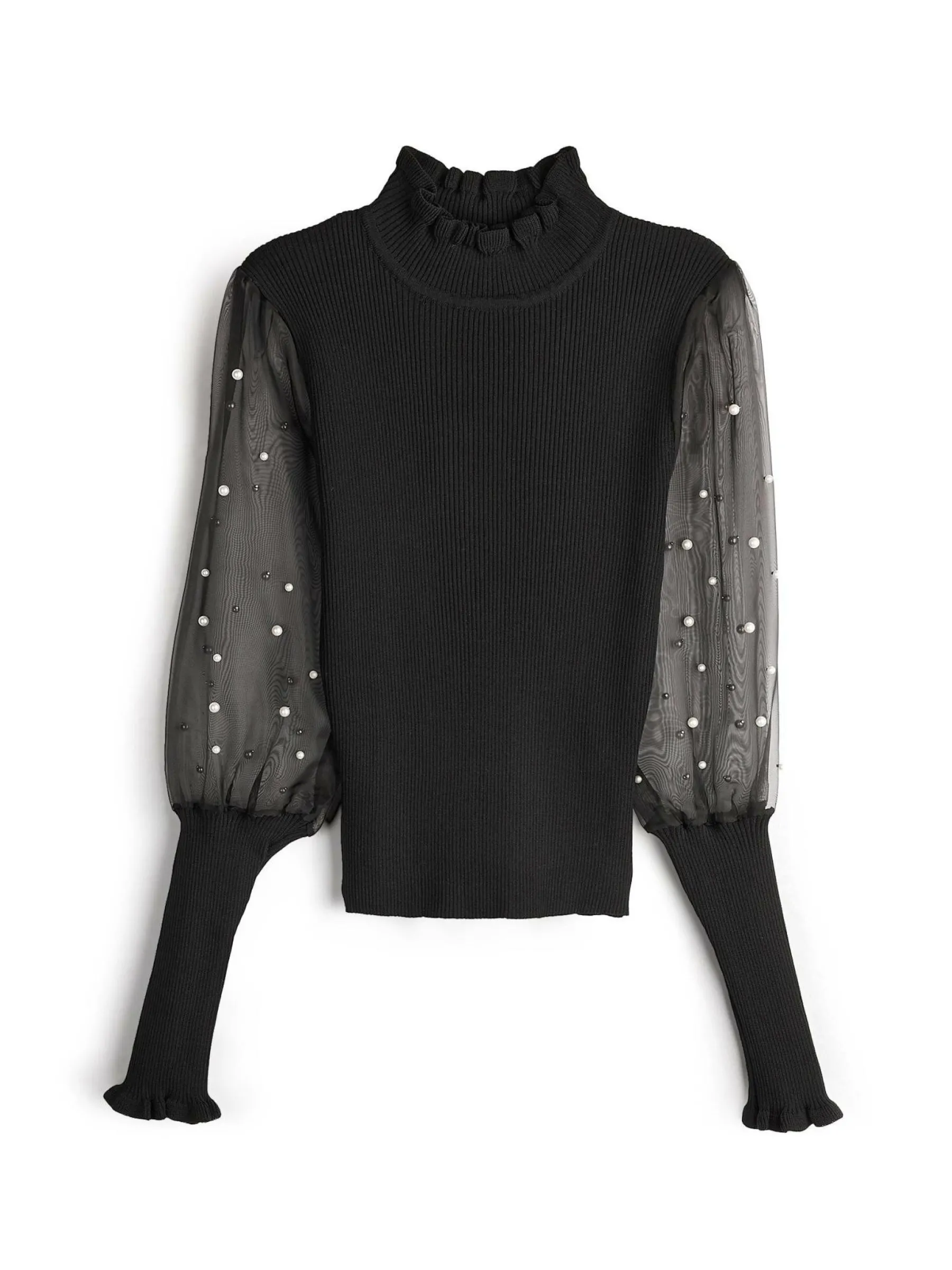 Kolor: czarnyKrój: podstawowyTyp: swetryRekaw: długi rękawDługość: krótkiPattern style: pojedynczy kolorDetal: na…