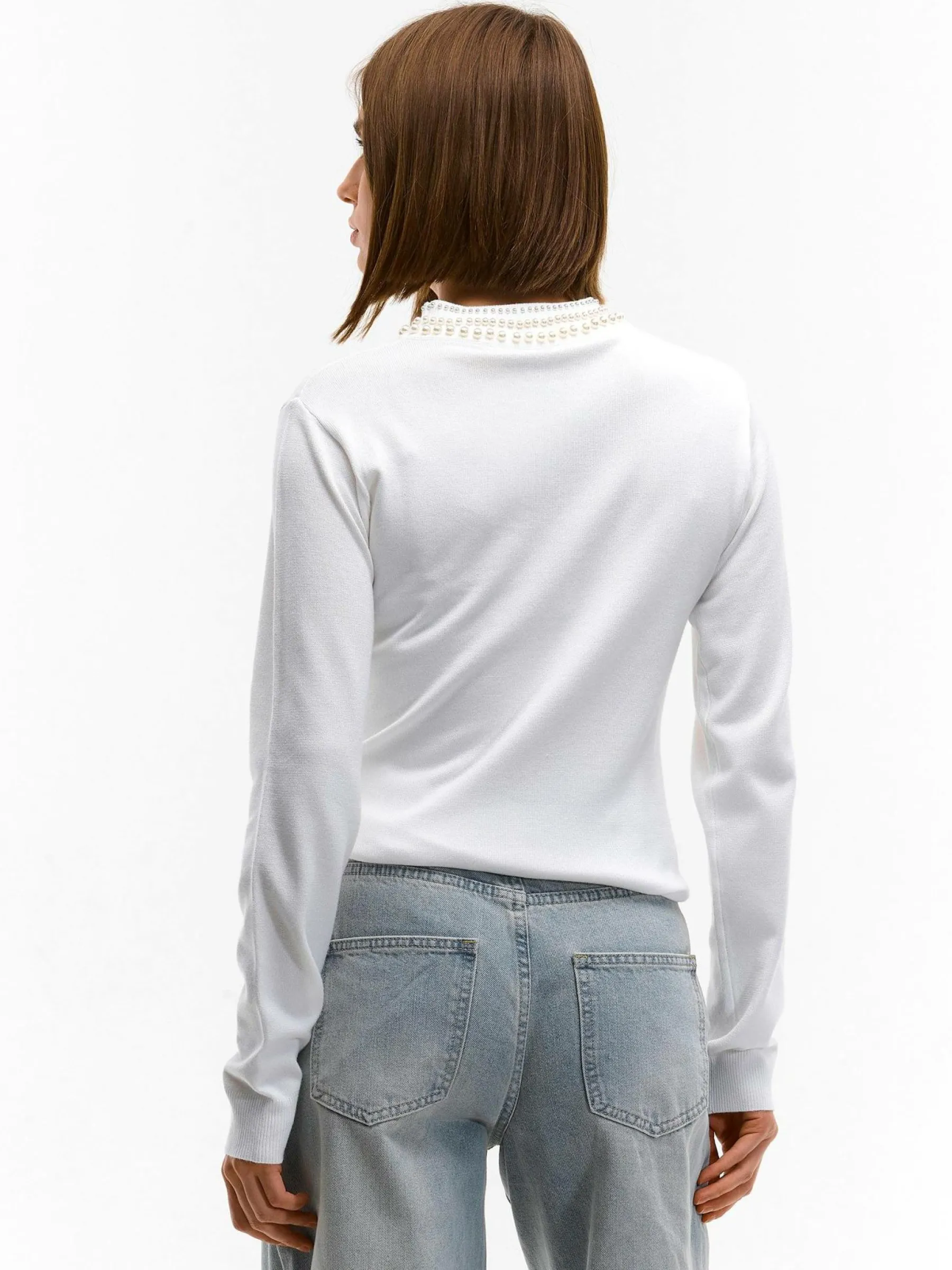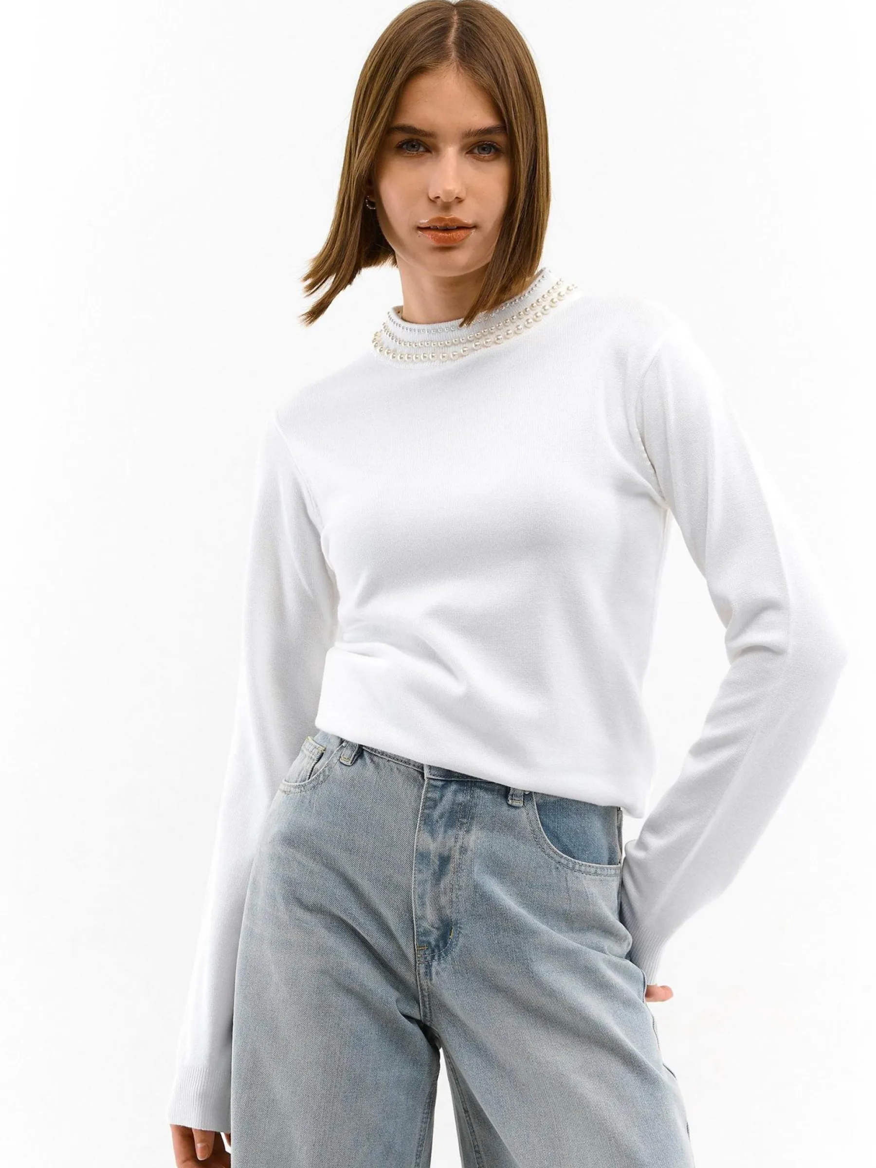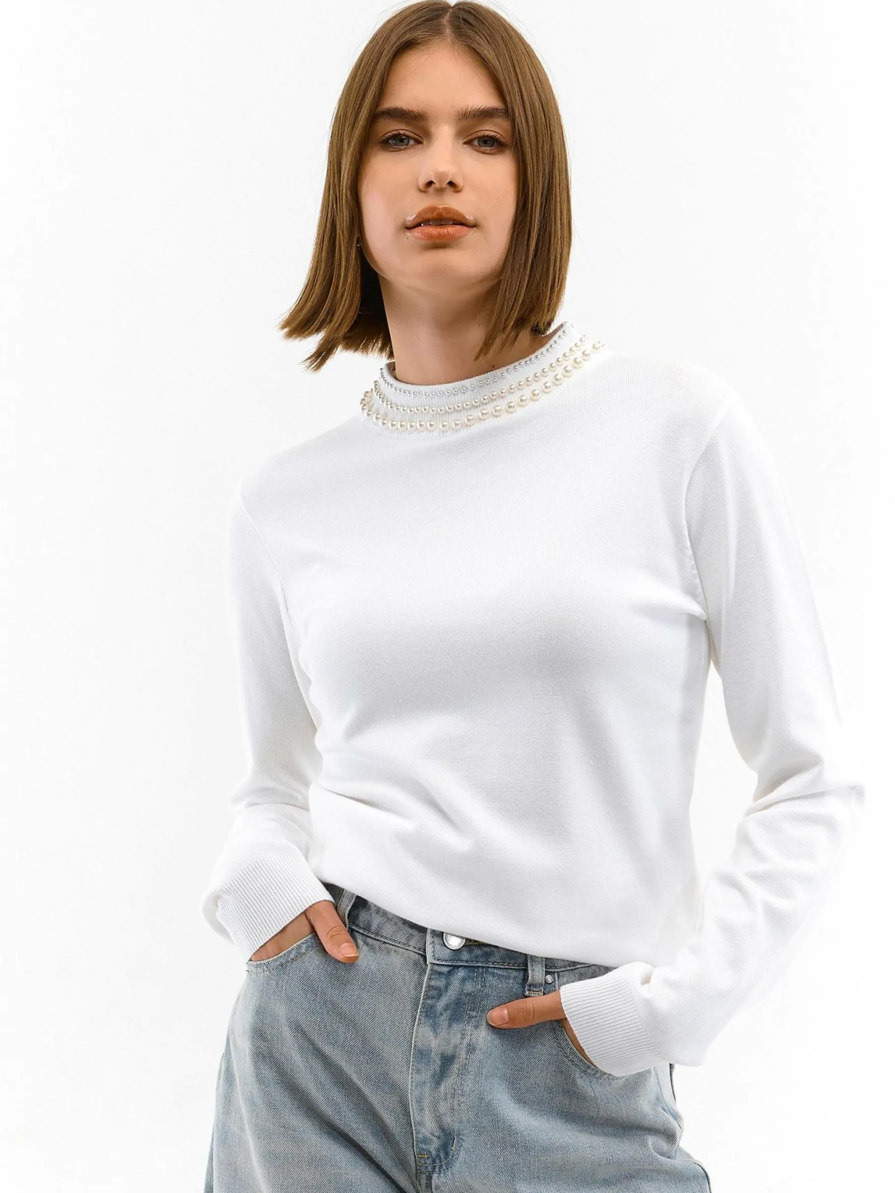 Kolor: białyKrój: regularTyp: swetryRekaw: długi rękawDługość: krótkiPattern style: pojedynczy kolorDetal: z per…