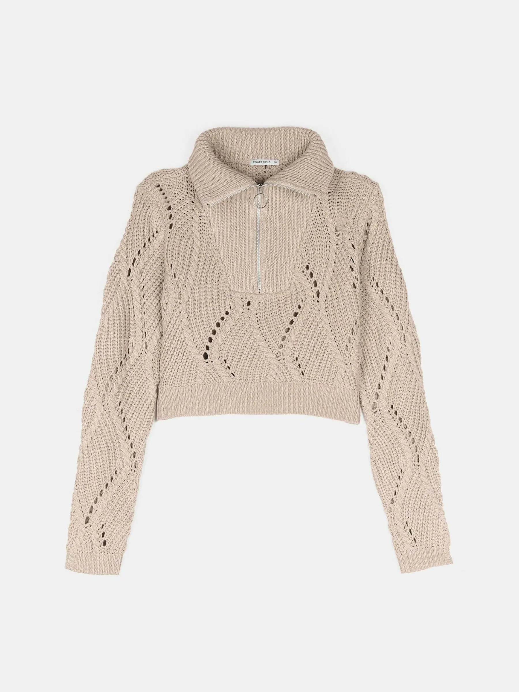 Kolor: beżowyKrój: regularTyp: swetryRekaw: długi rękawDługość: krótki topPattern style: pojedynczy kolor, struk…