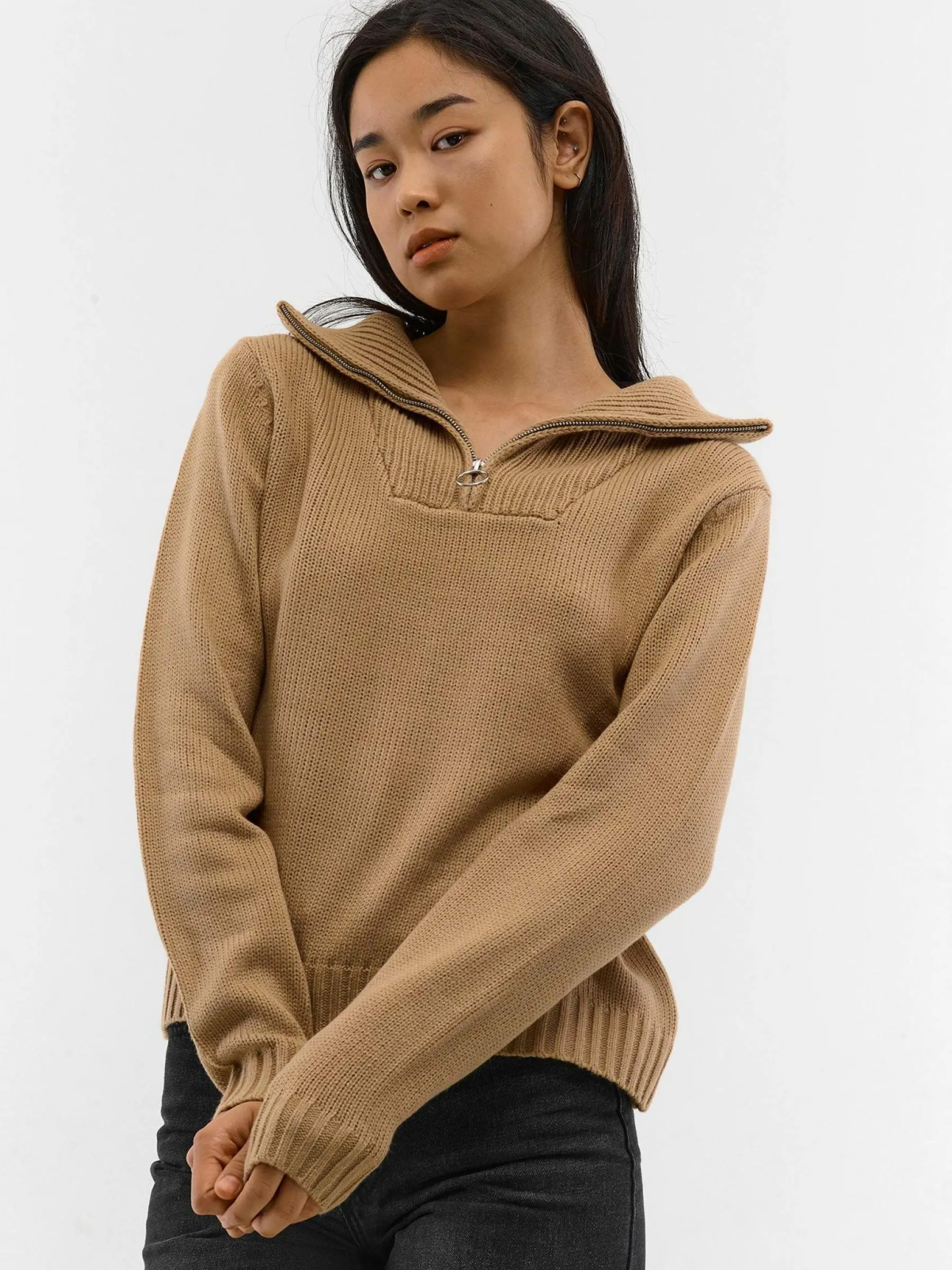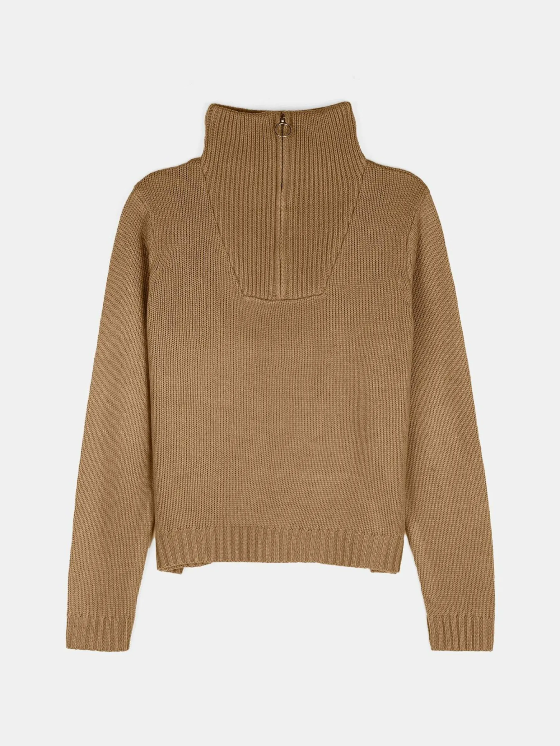 Kolor: beżowy, brązowyKrój: regularTyp: swetryRekaw: długi rękawDługość: krótkiPattern style: pojedynczy kolor,…