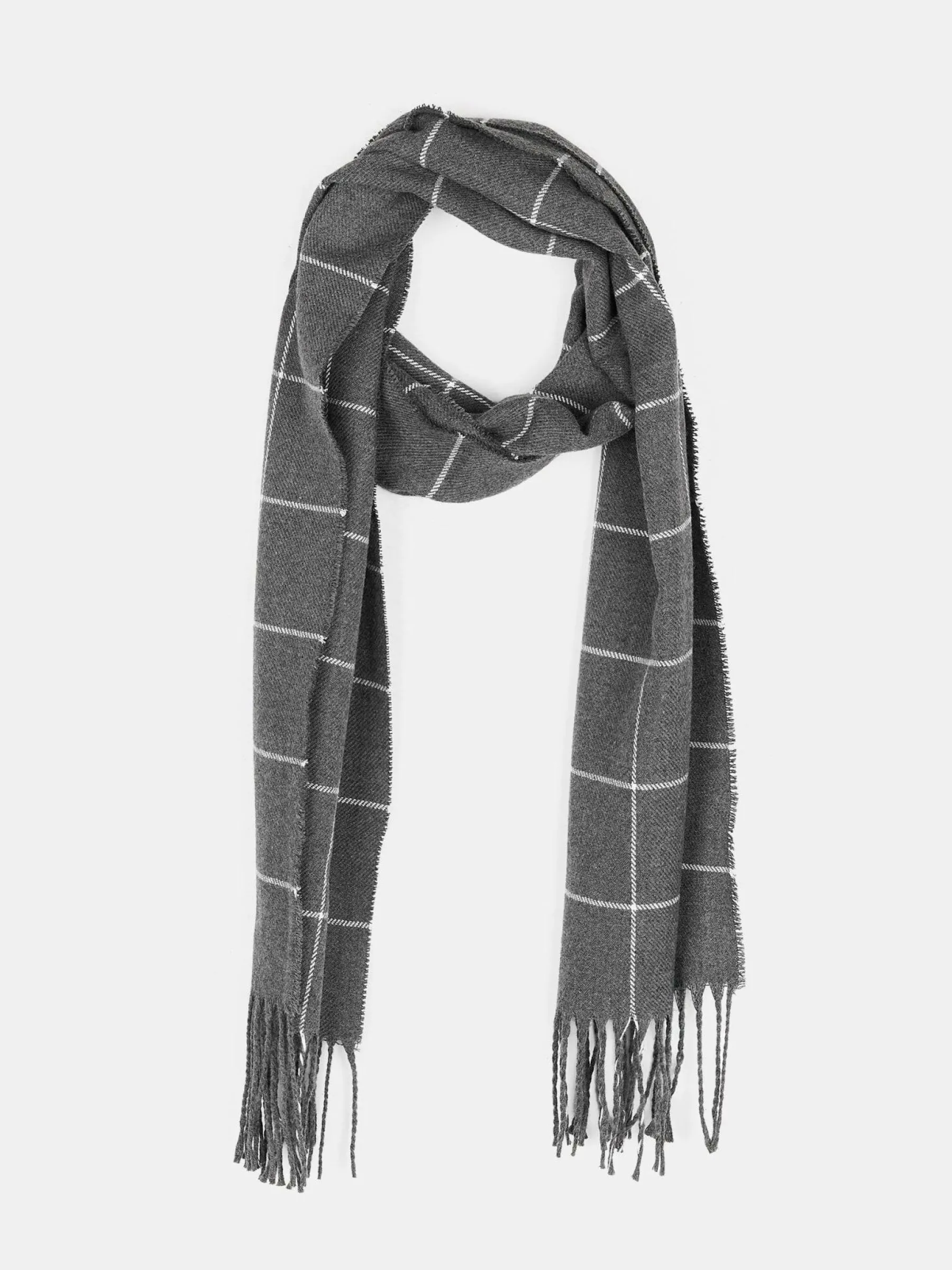 Kolor: szaryKrój: podstawowyTyp: szalPattern style: w krateDetal: z frędzlamiMateriał: syntetycznePłeć: kobietyOkaz…
