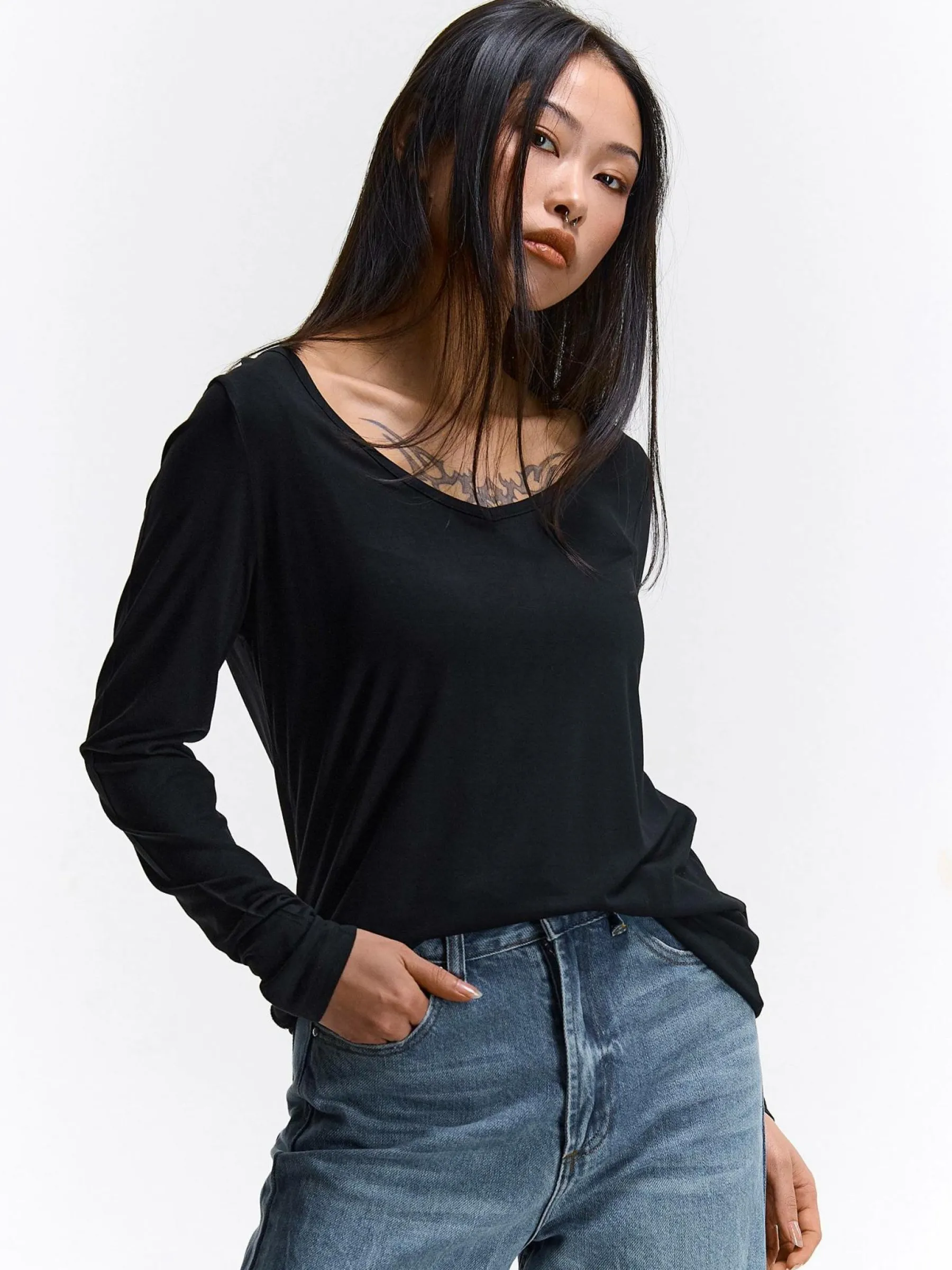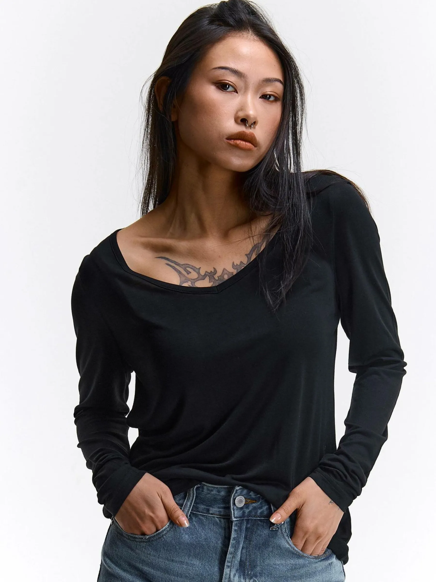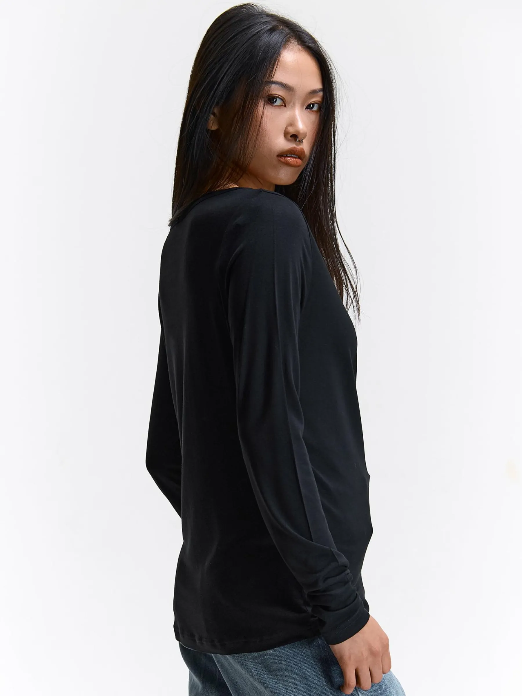 Kolor: czarnyKrój: regularTyp: topRekaw: długi rękawDługość: krótkiPattern style: pojedynczy kolorDetal: nad gło…