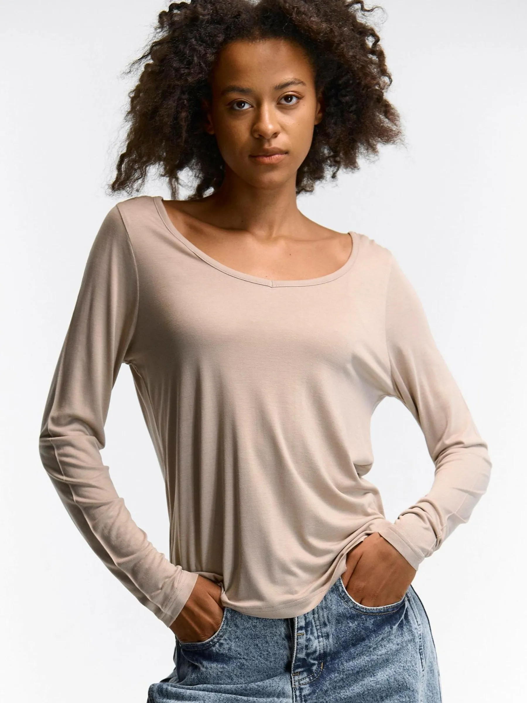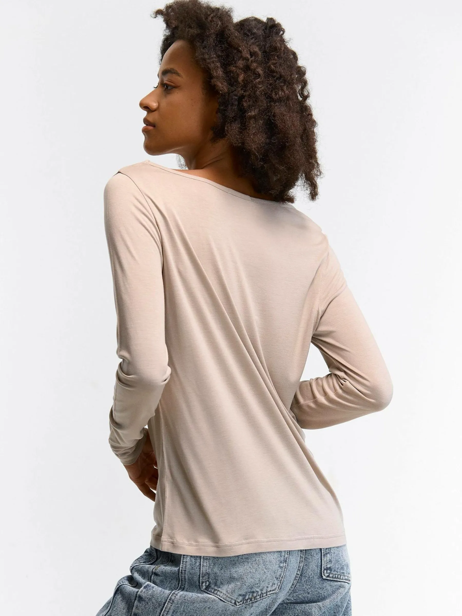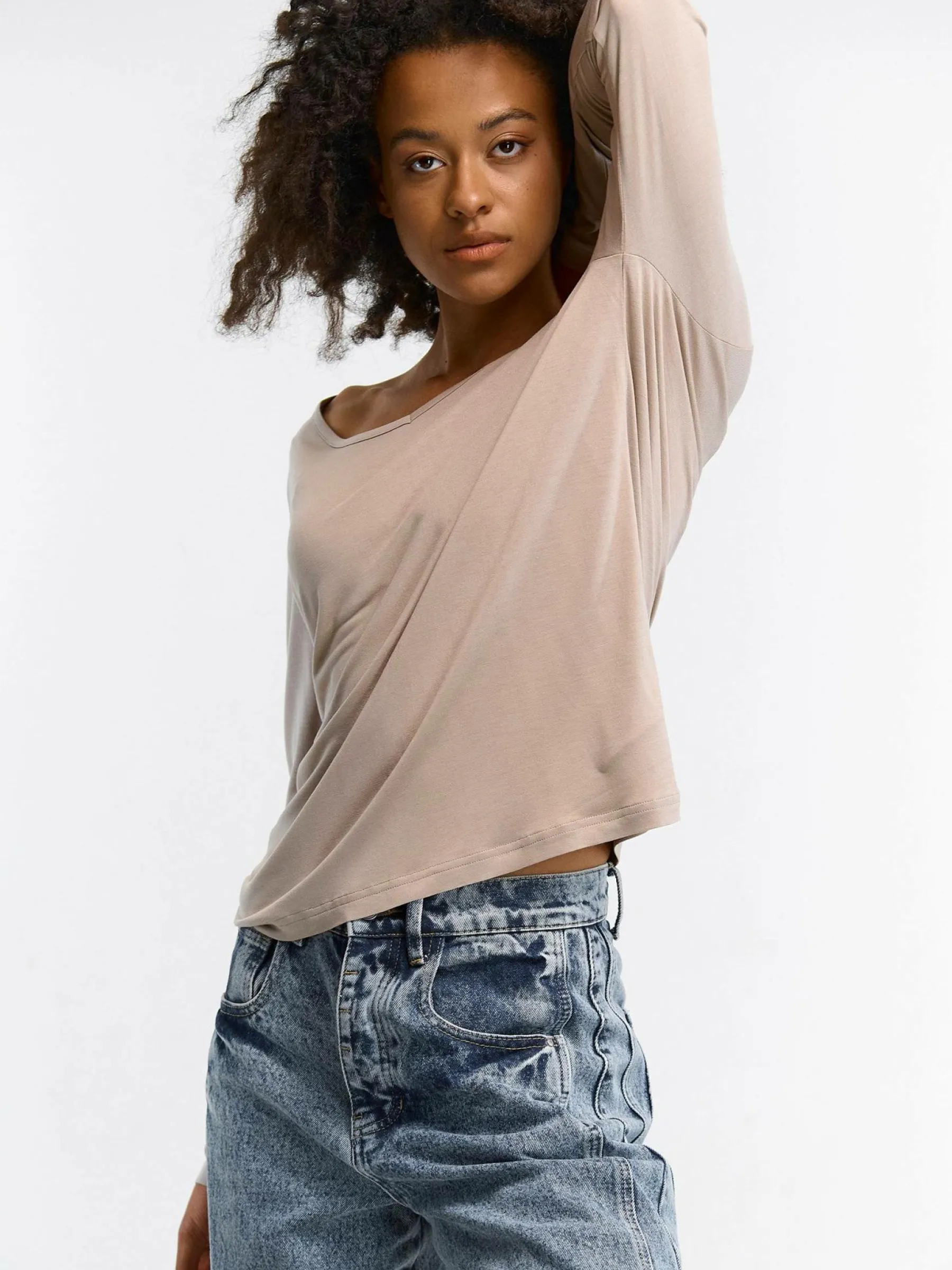 Kolor: beżowyKrój: regularTyp: topRekaw: długi rękawDługość: krótkiPattern style: pojedynczy kolorDetal: nad gł…