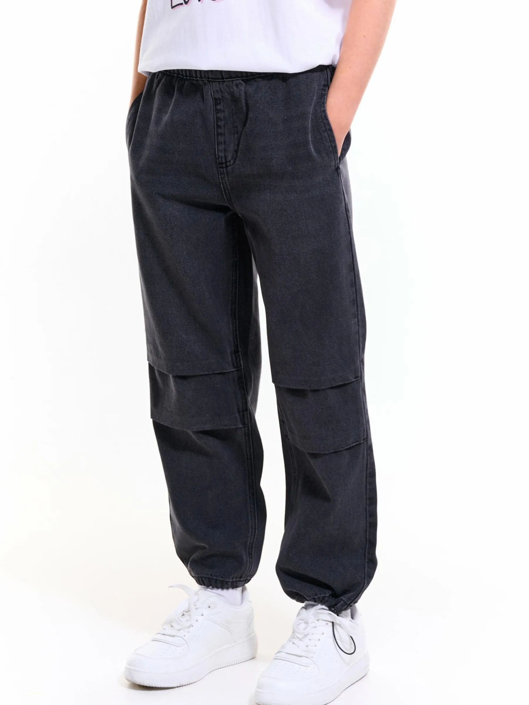 Kolor: czarny, szaryKrój: joggerTyp: jeansDługość: dlugiePattern style: pojedynczy kolorMateriał: dżinsowePłeć: …