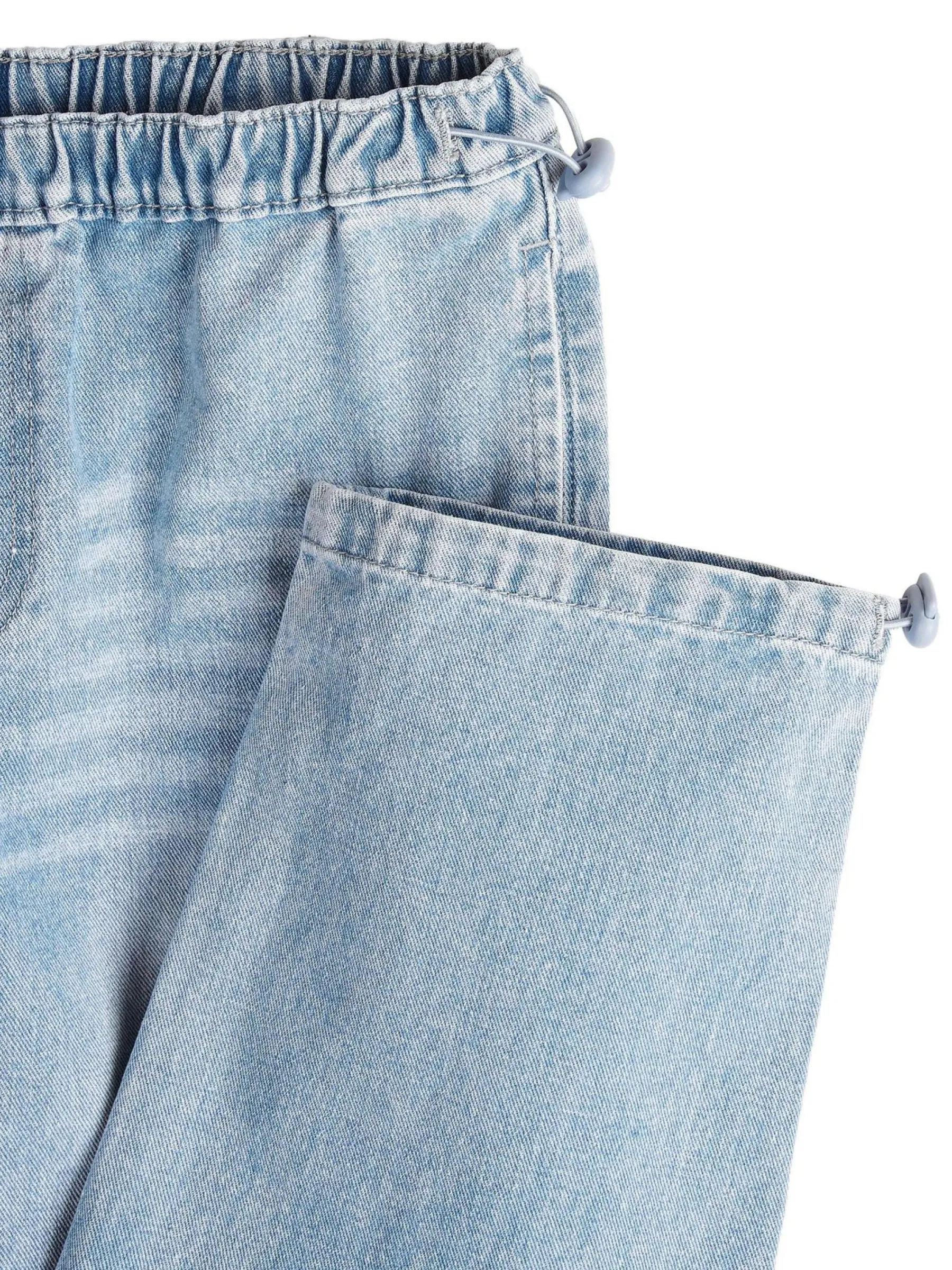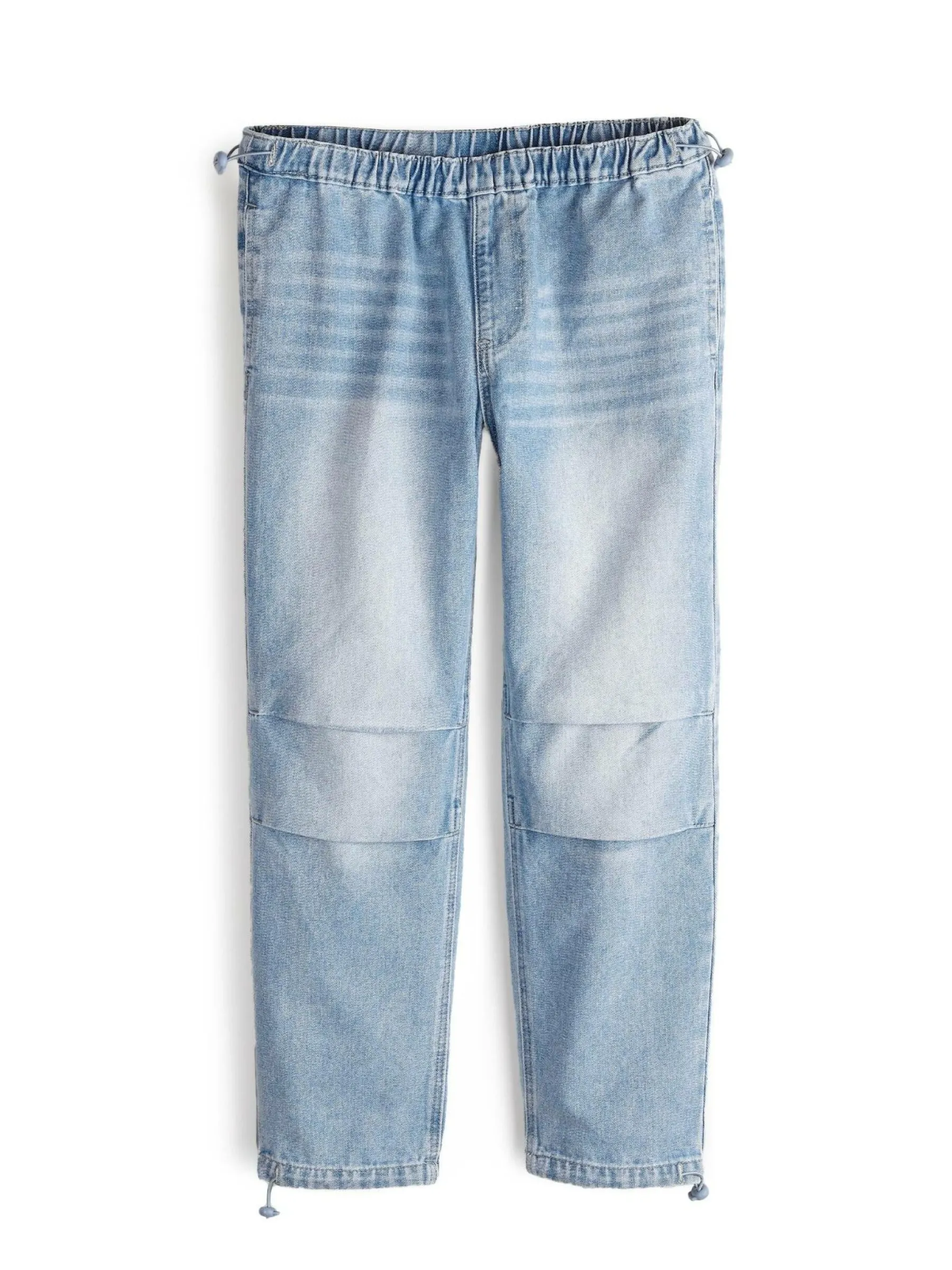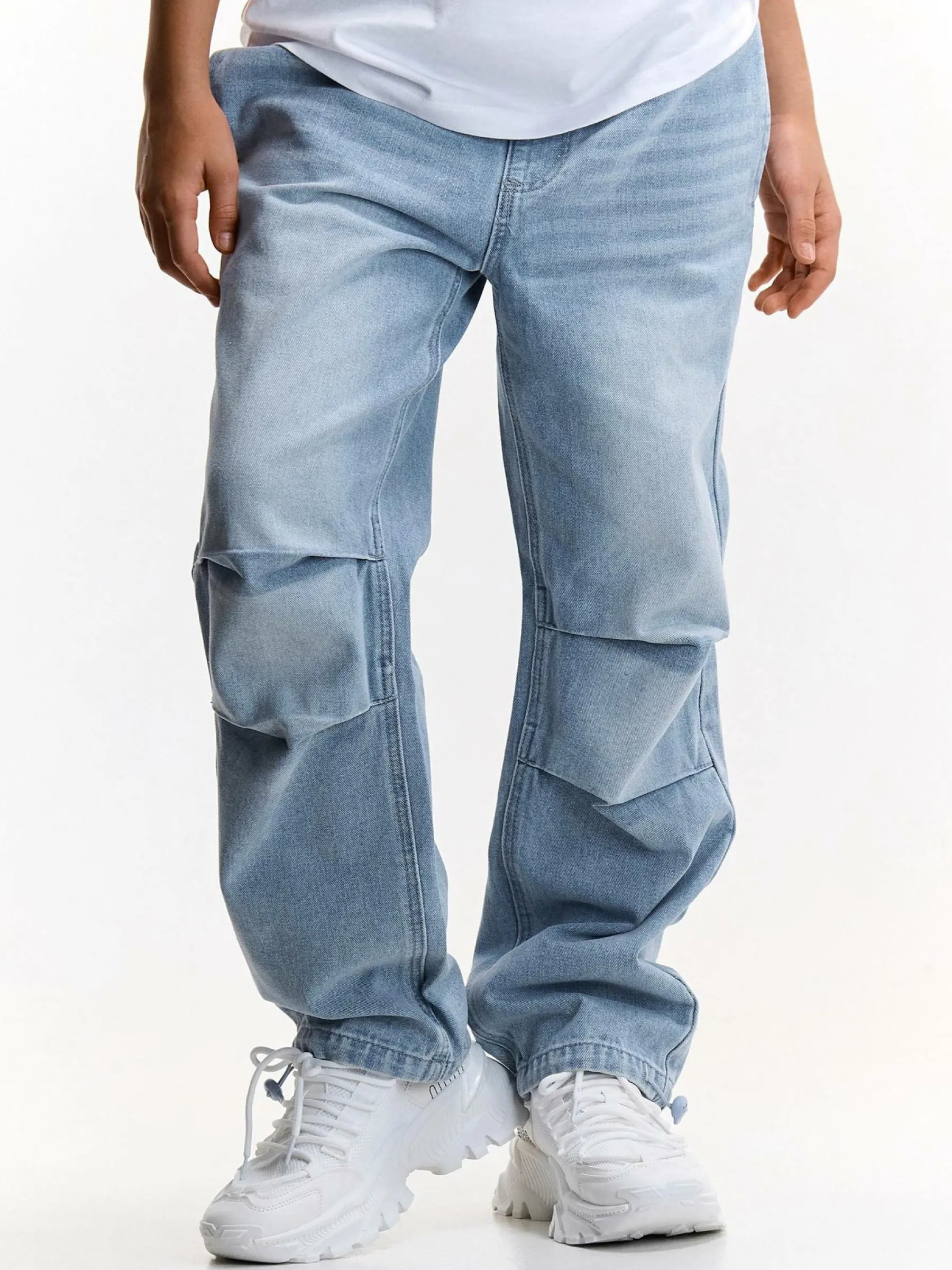 Kolor: niebieskiKrój: szerokieTyp: jeansDługość: dlugiePattern style: pojedynczy kolorDetal: z przeszyciami na kolan…