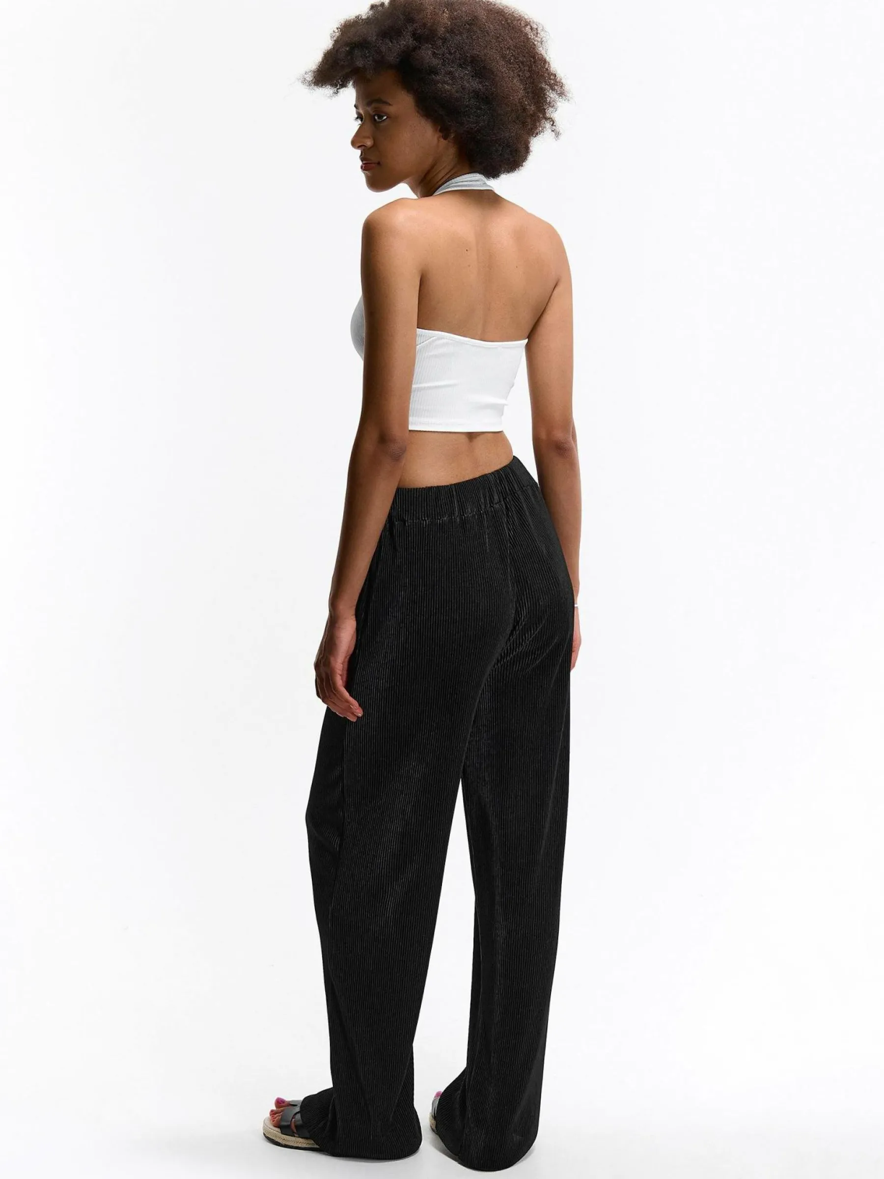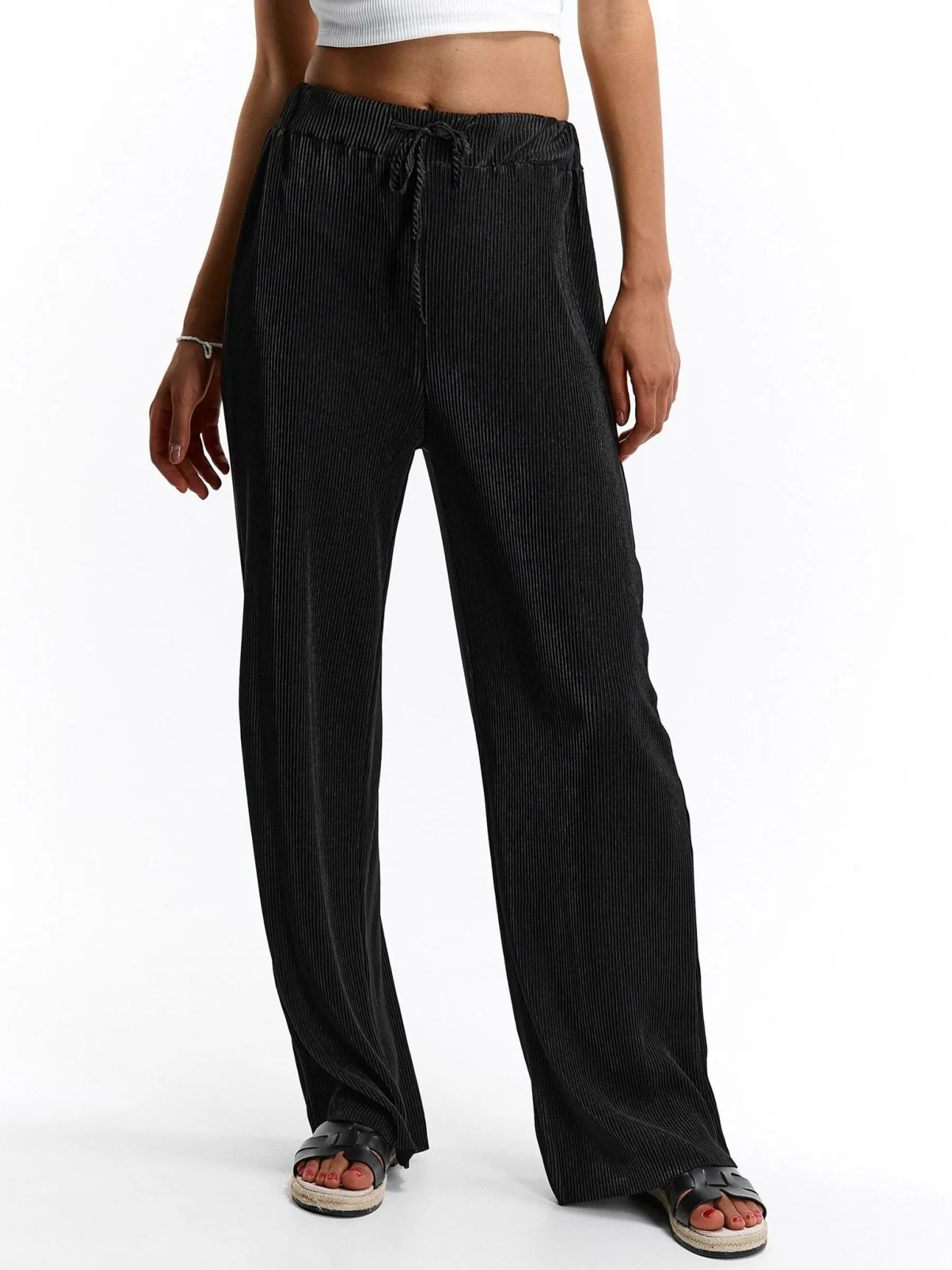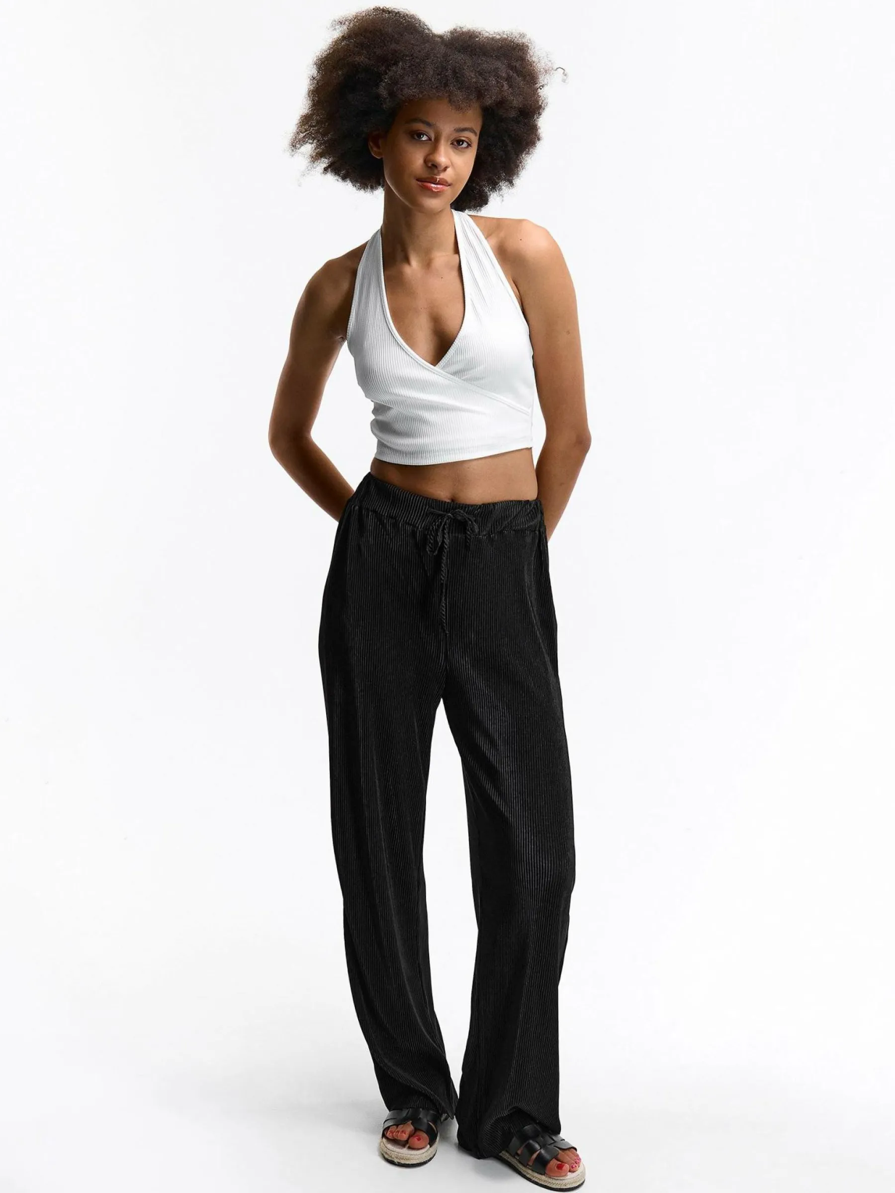 Kolor: czarnyKrój: szerokie, plisowaneTyp: spodnieDługość: dlugiePattern style: pojedynczy kolorDetal: ze sznurowani…