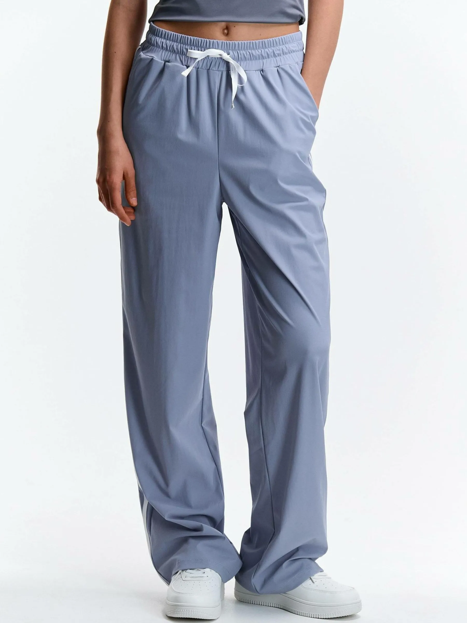 Kolor: niebieskiKrój: szerokieTyp: spodnie dresoweDługość: dlugiePattern style: pojedynczy kolorDetal: ze sznurowani…