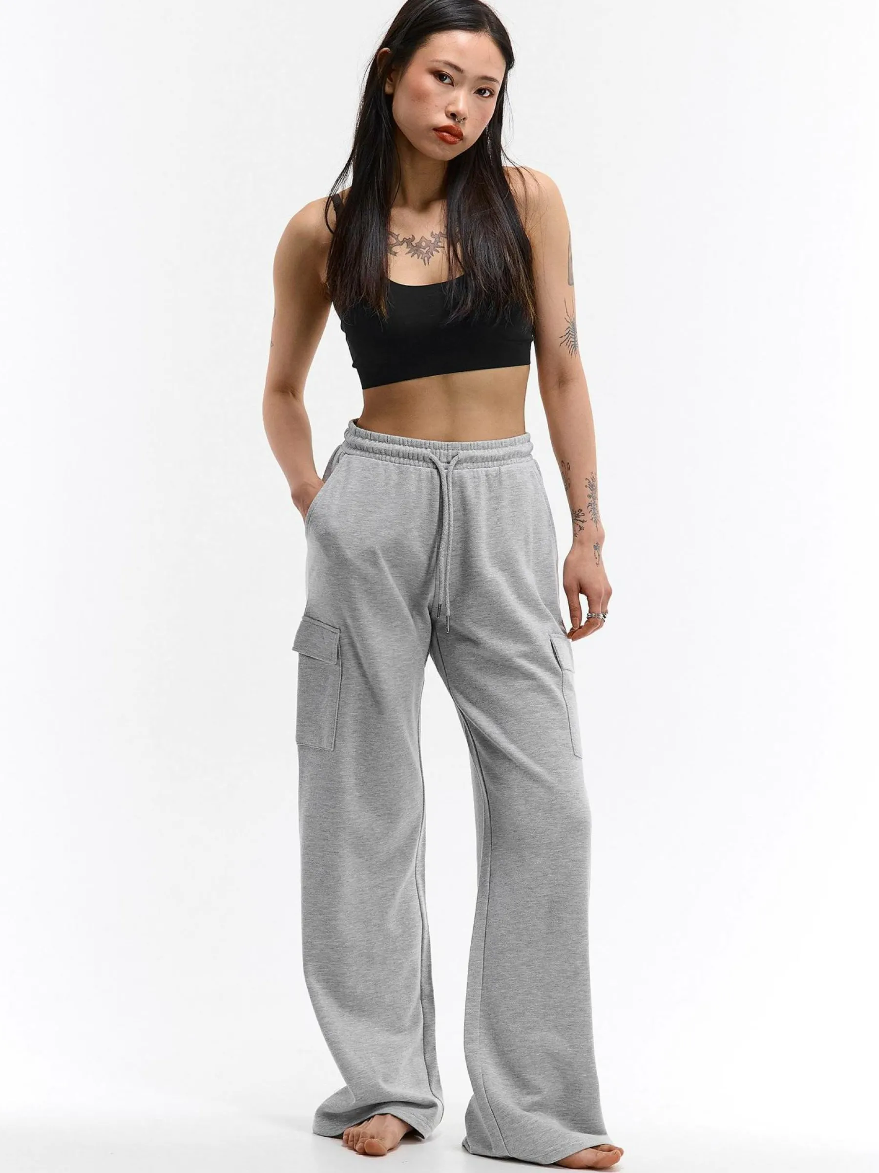 Kolor: szaryKrój: cargoTyp: spodnie dresoweDługość: dlugiePattern style: pojedynczy kolorDetal: ze sznurowaniem, z k…