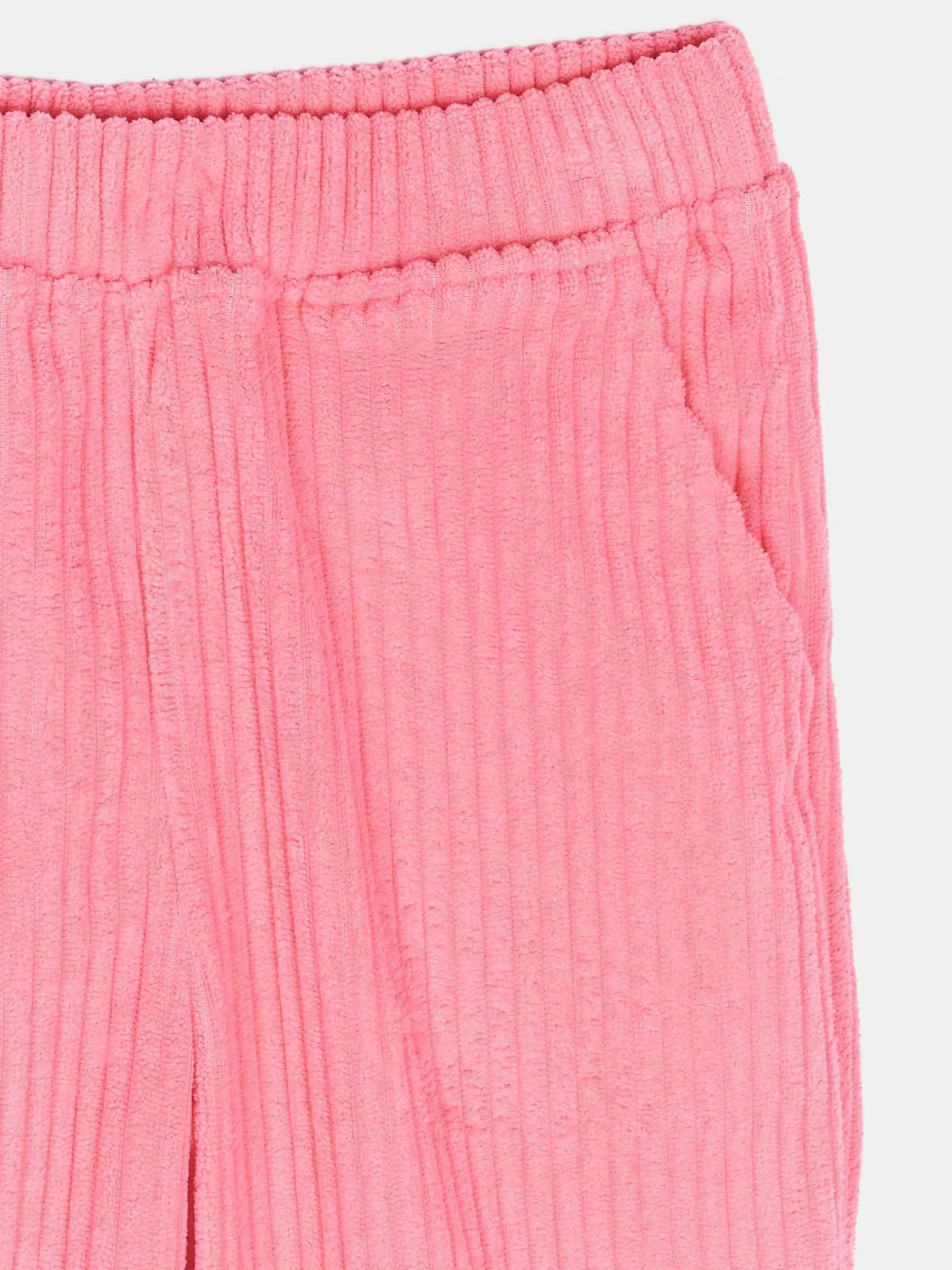 Kolor: różowyKrój: szerokieTyp: spodnie dresoweDługość: dlugiePattern style: pojedynczy kolor, żebrowanyDetal: z …
