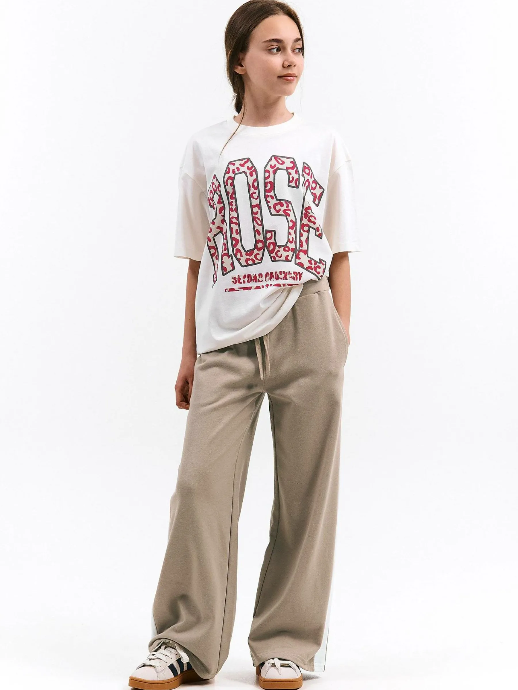 Kolor: beżowyKrój: szerokieTyp: spodnie dresoweDługość: dlugiePattern style: pojedynczy kolorDetal: ze sznurowaniem…
