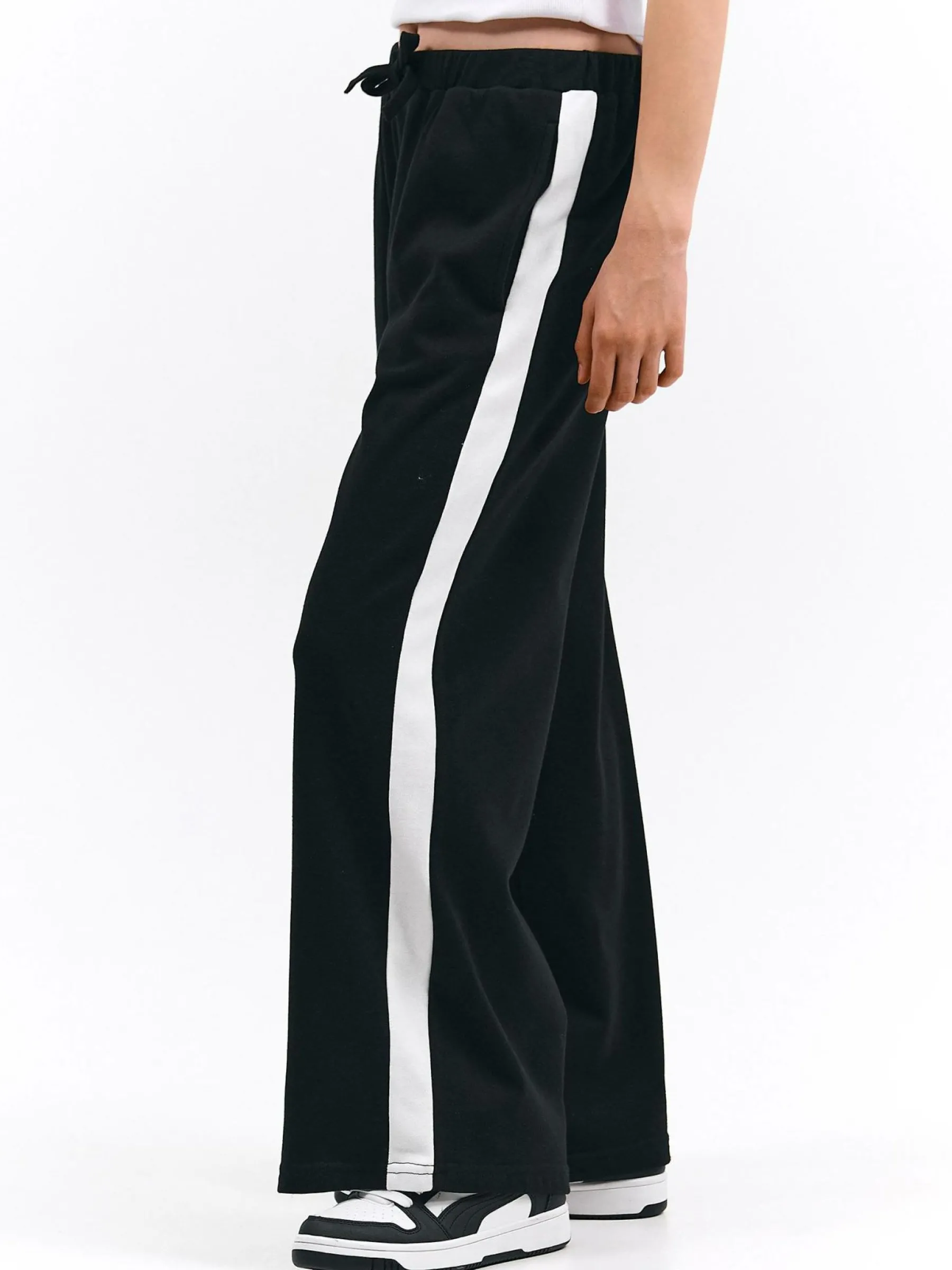 Kolor: czarnyKrój: szerokieTyp: spodnie dresoweDługość: dlugiePattern style: pojedynczy kolorDetal: ze sznurowaniem,…