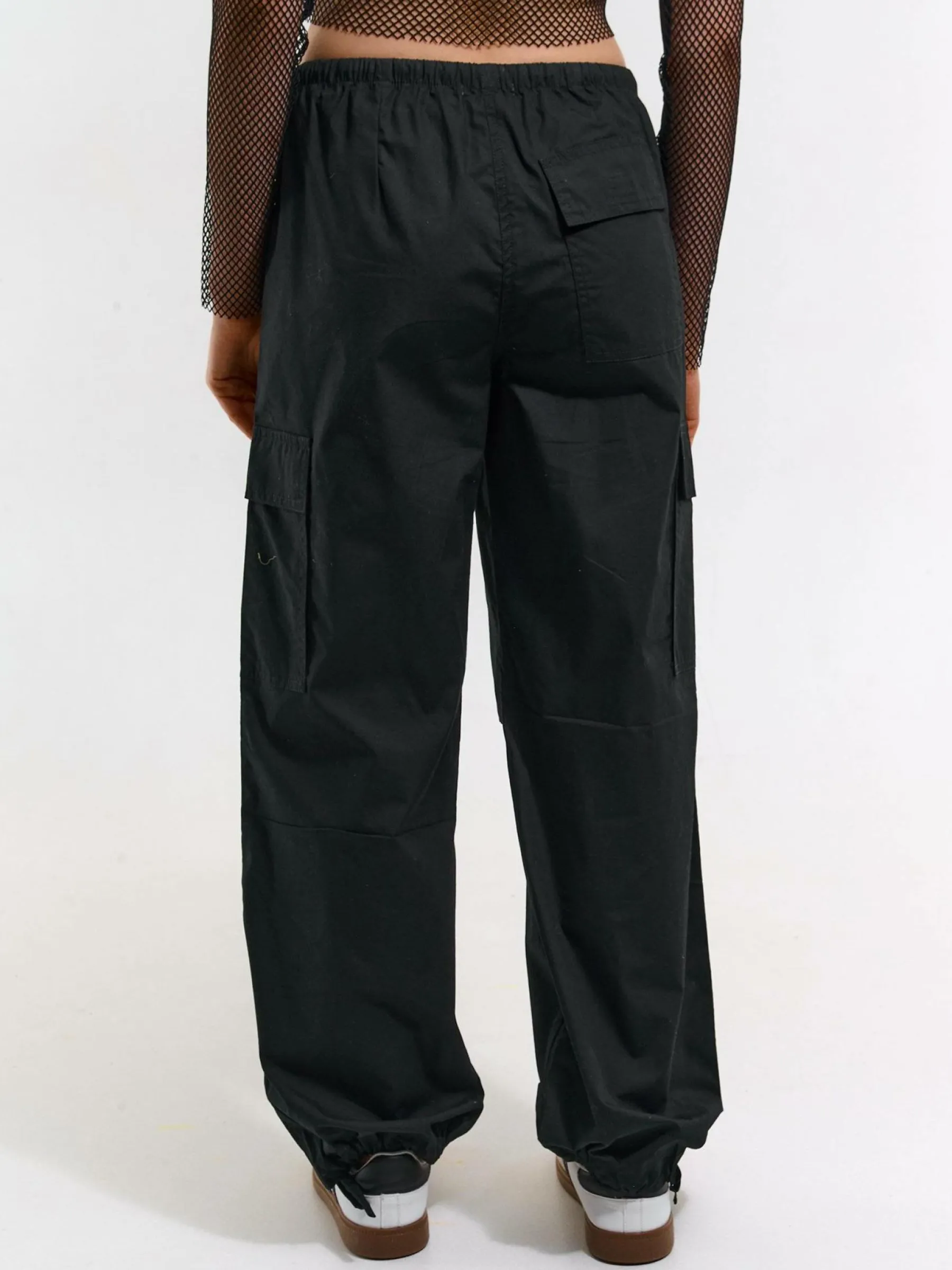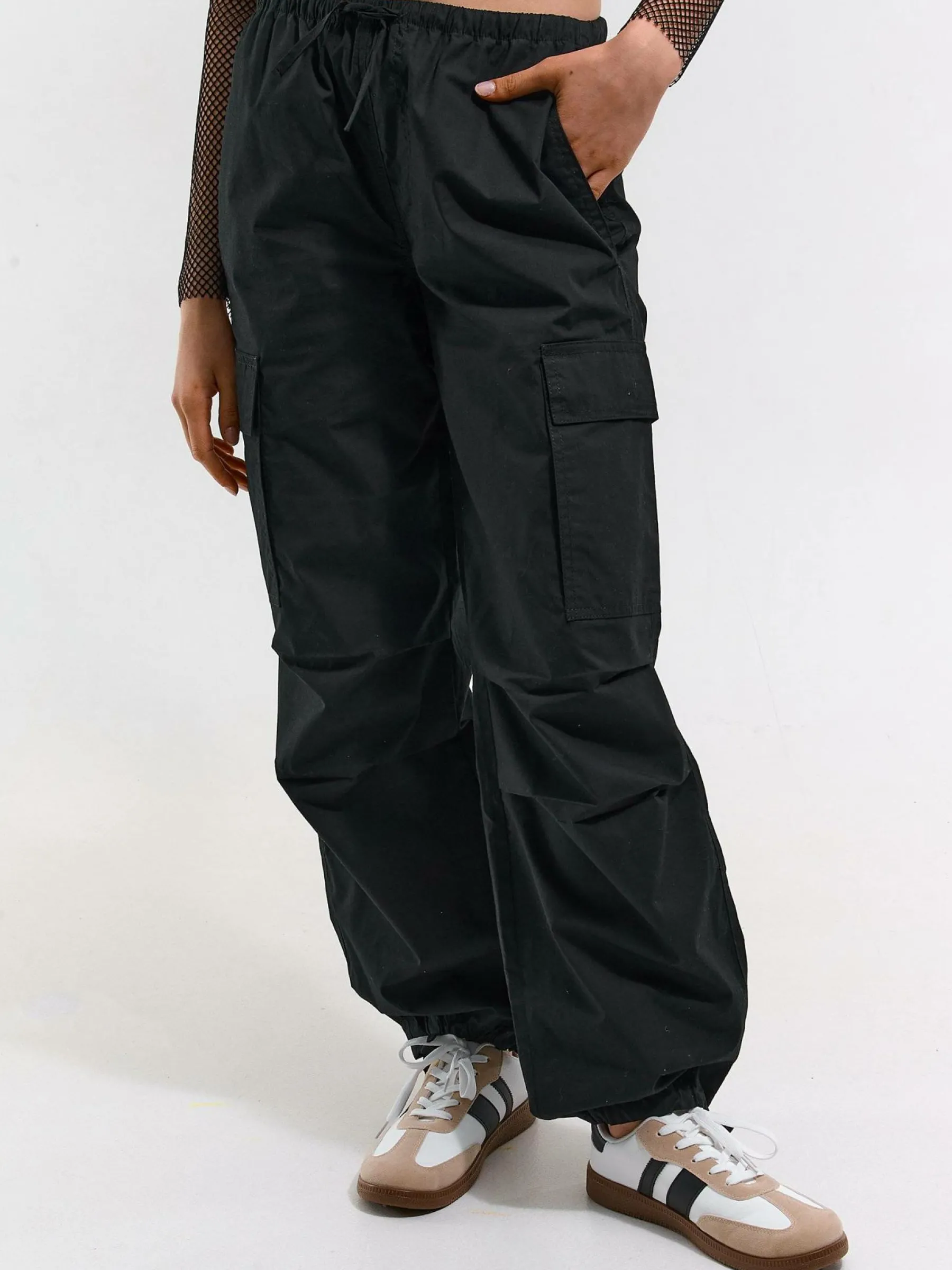 Kolor: czarnyKrój: szerokieTyp: spodnieDługość: dlugiePattern style: pojedynczy kolorDetal: ze sznurowaniemMateriał…