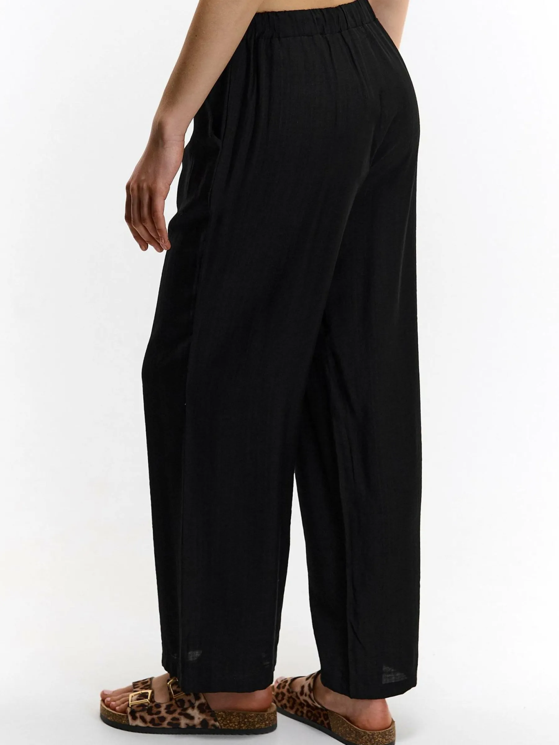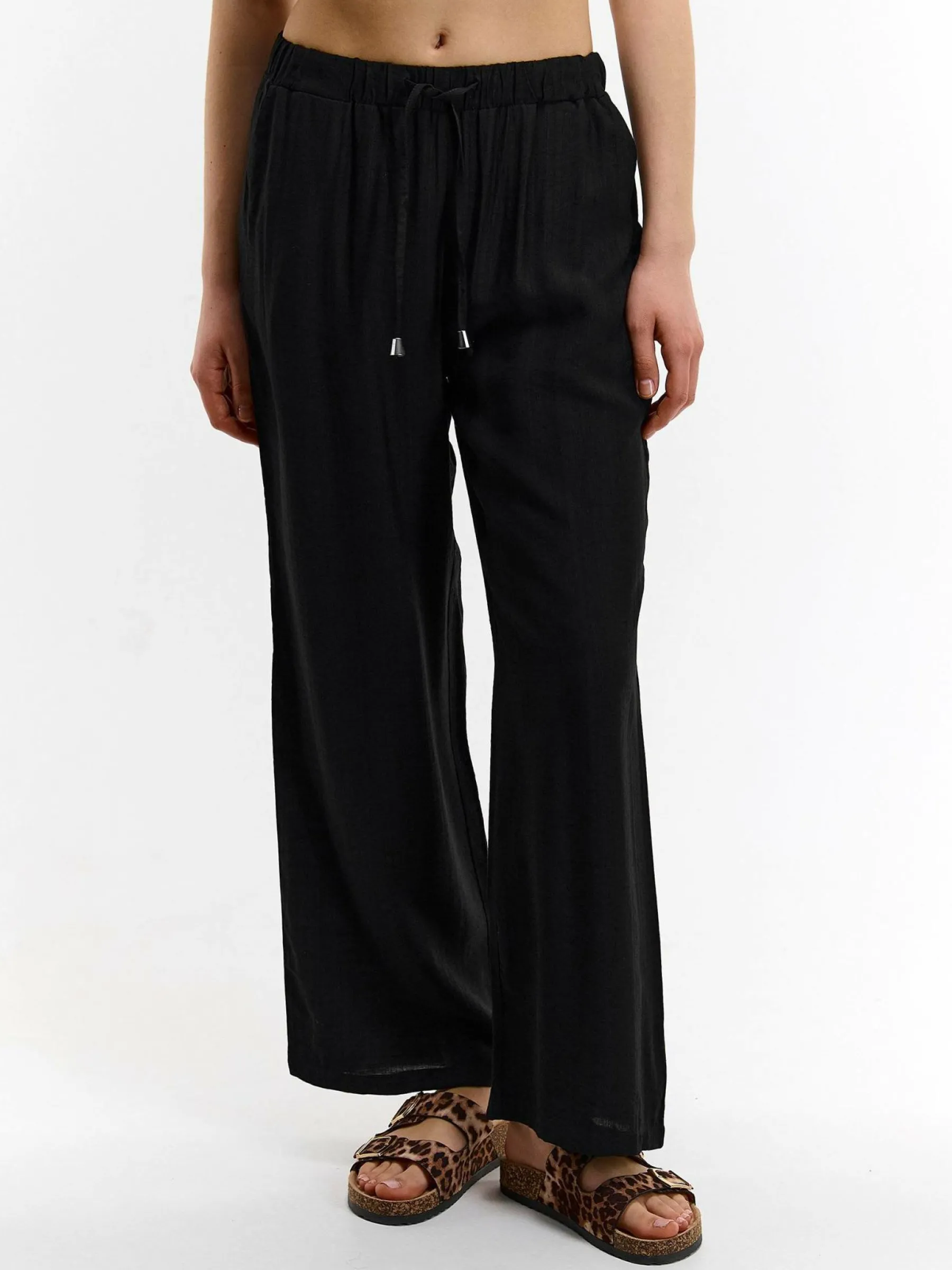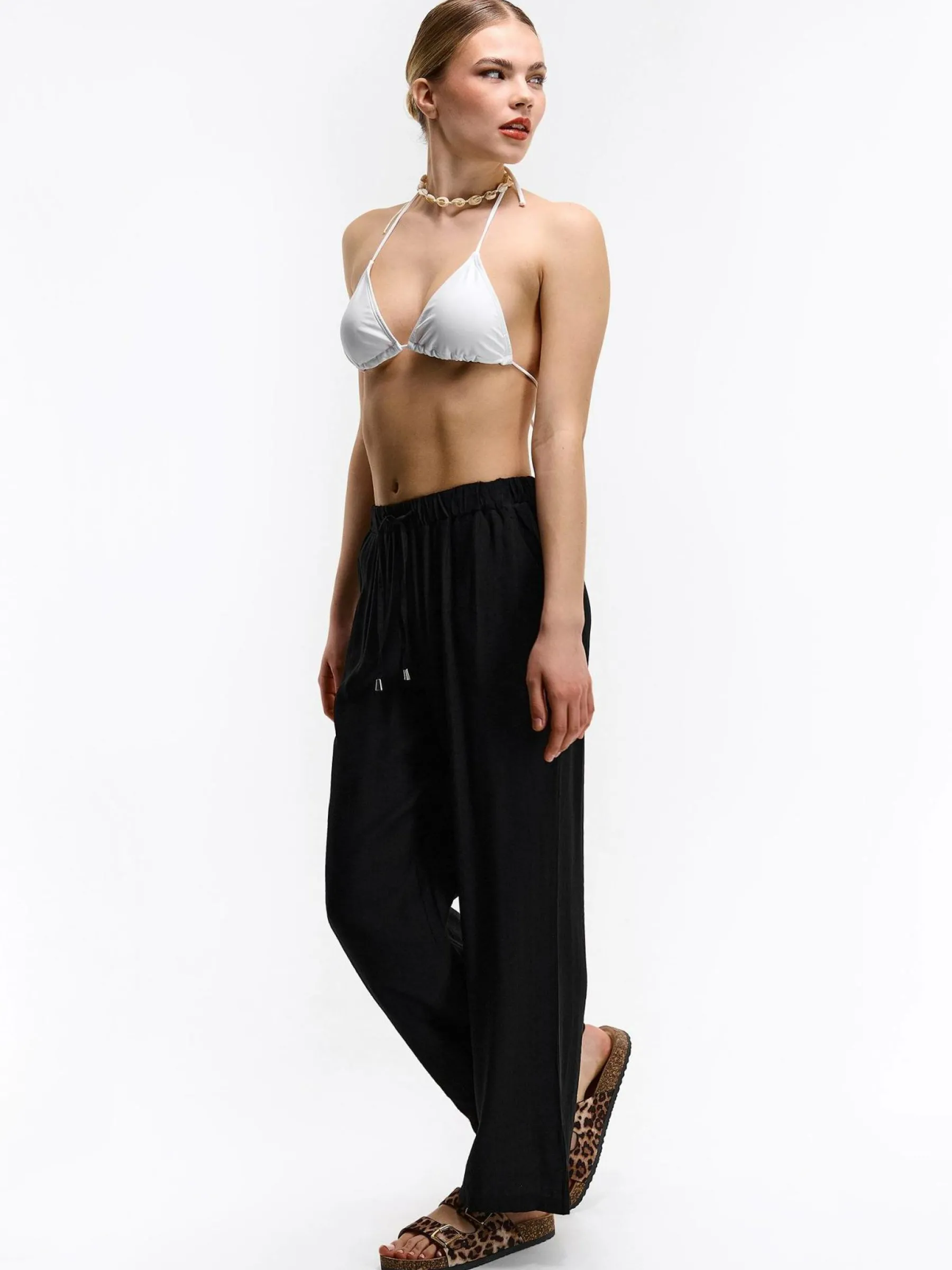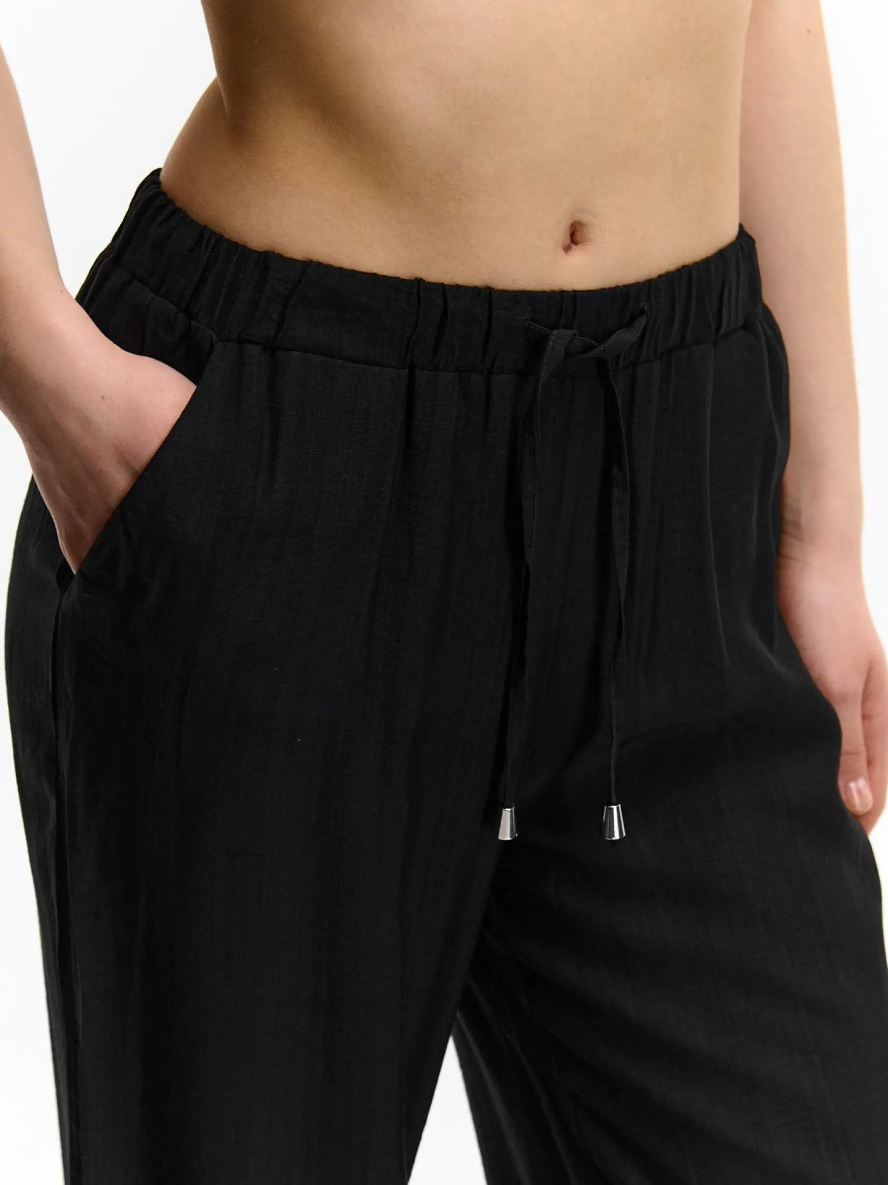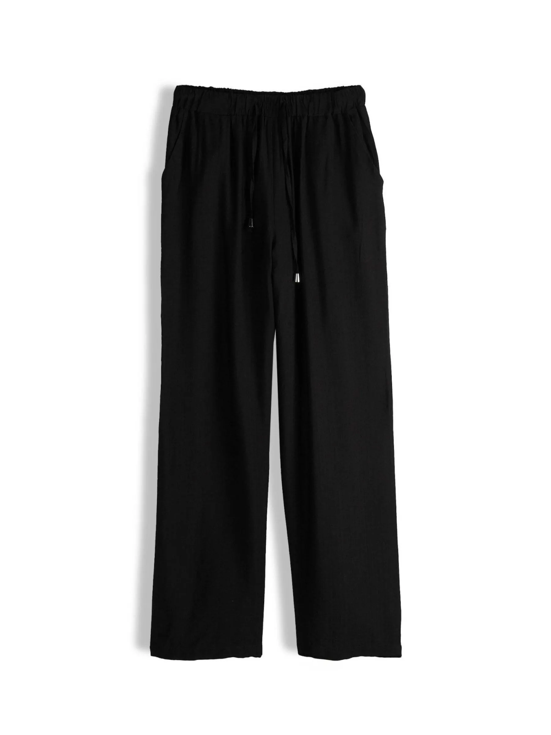 Kolor: czarnyKrój: szerokieTyp: spodnieDługość: dlugiePattern style: pojedynczy kolorDetal: ze sznurowaniem, z kiesz…