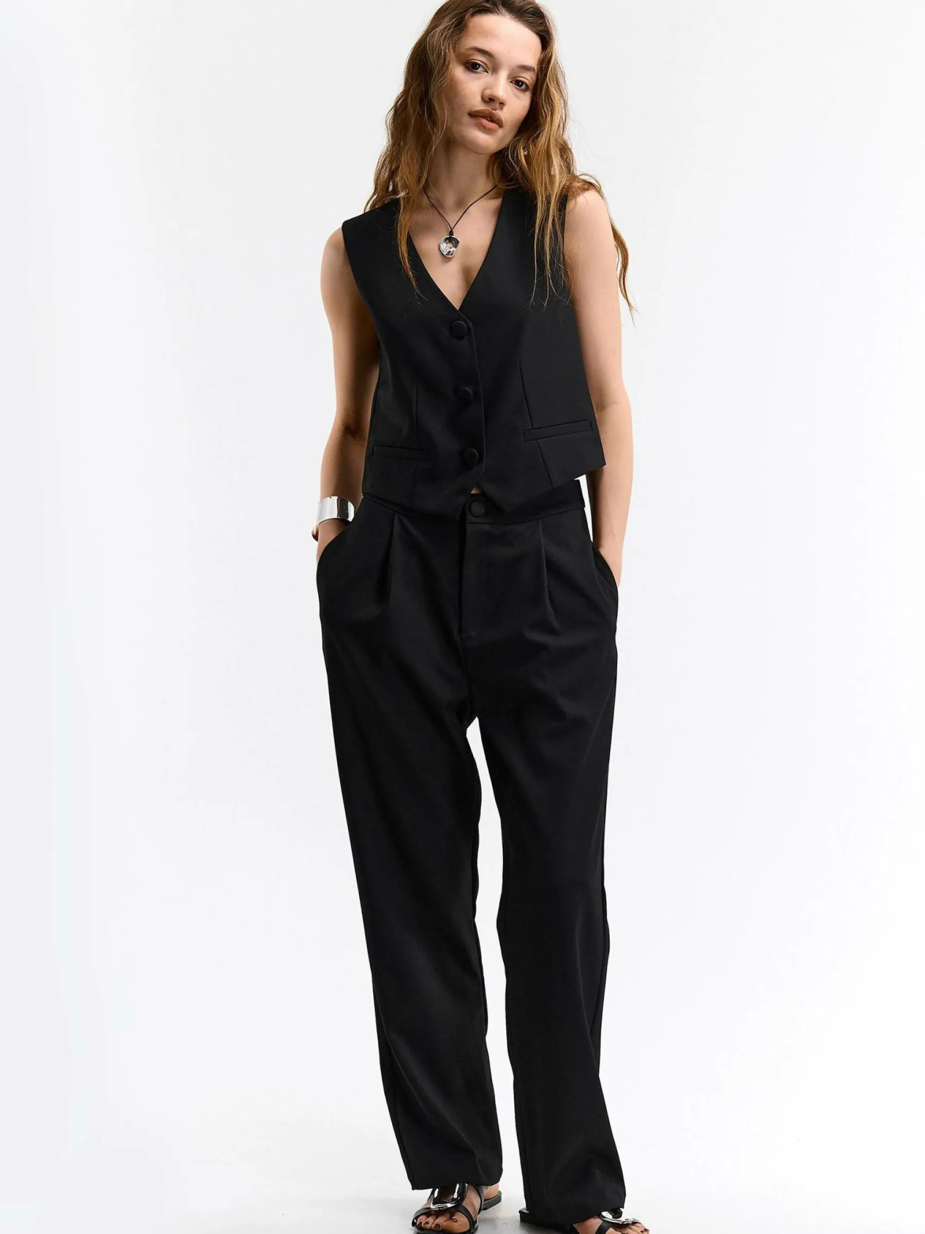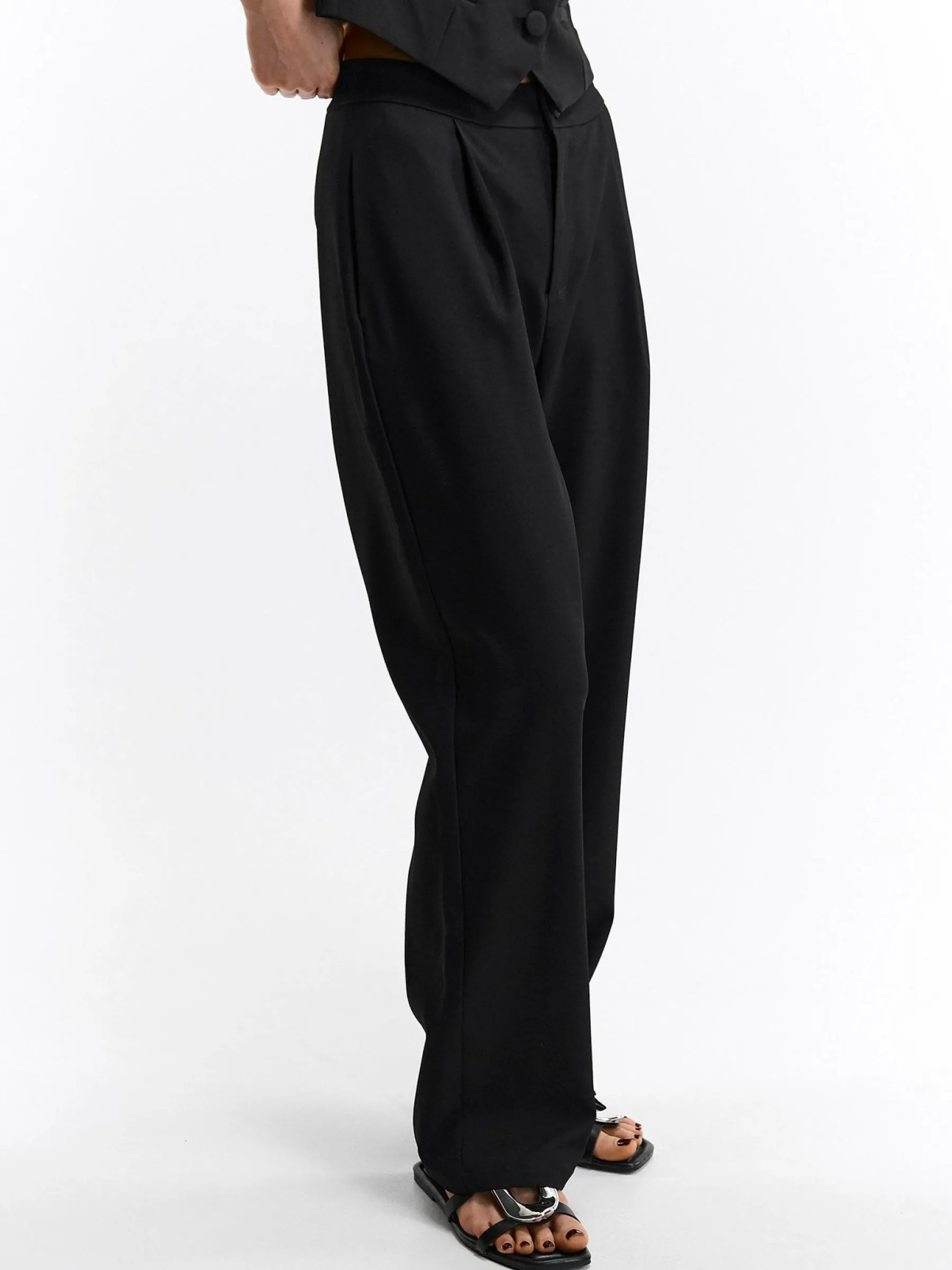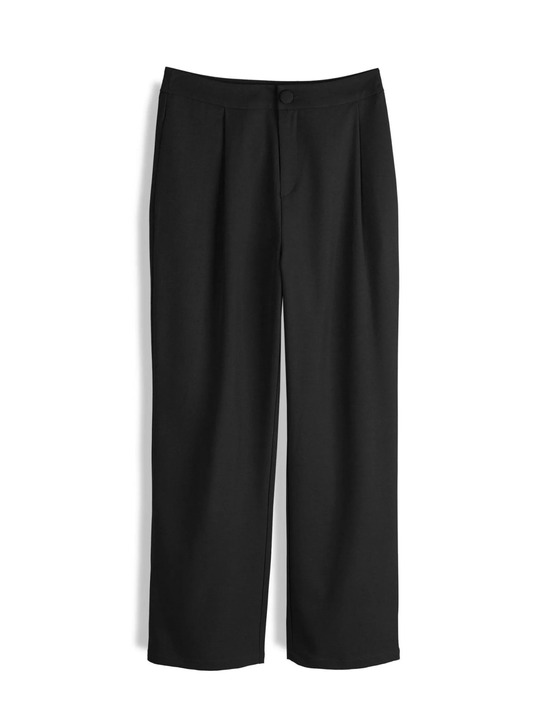 Kolor: czarnyKrój: szerokieTyp: spodnieDługość: dlugiePattern style: pojedynczy kolorDetal: na zamekMateriał: synte…