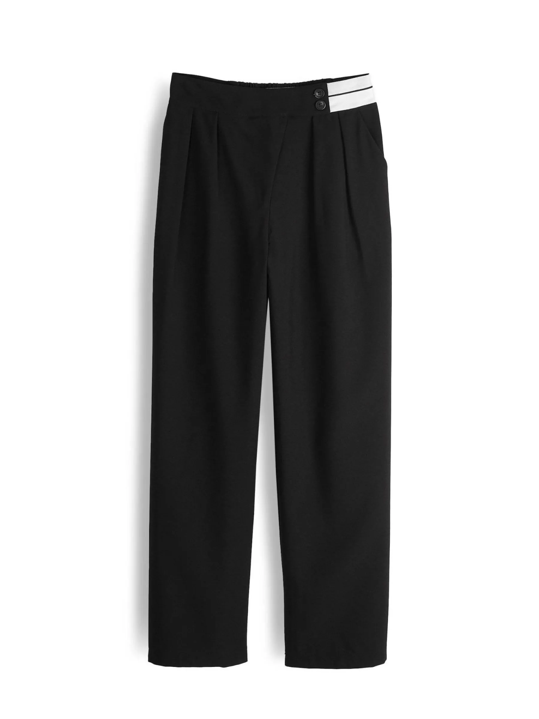 Kolor: czarnyKrój: szerokieTyp: spodnieDługość: dlugiePattern style: pojedynczy kolorDetal: na guzikiMateriał: mies…
