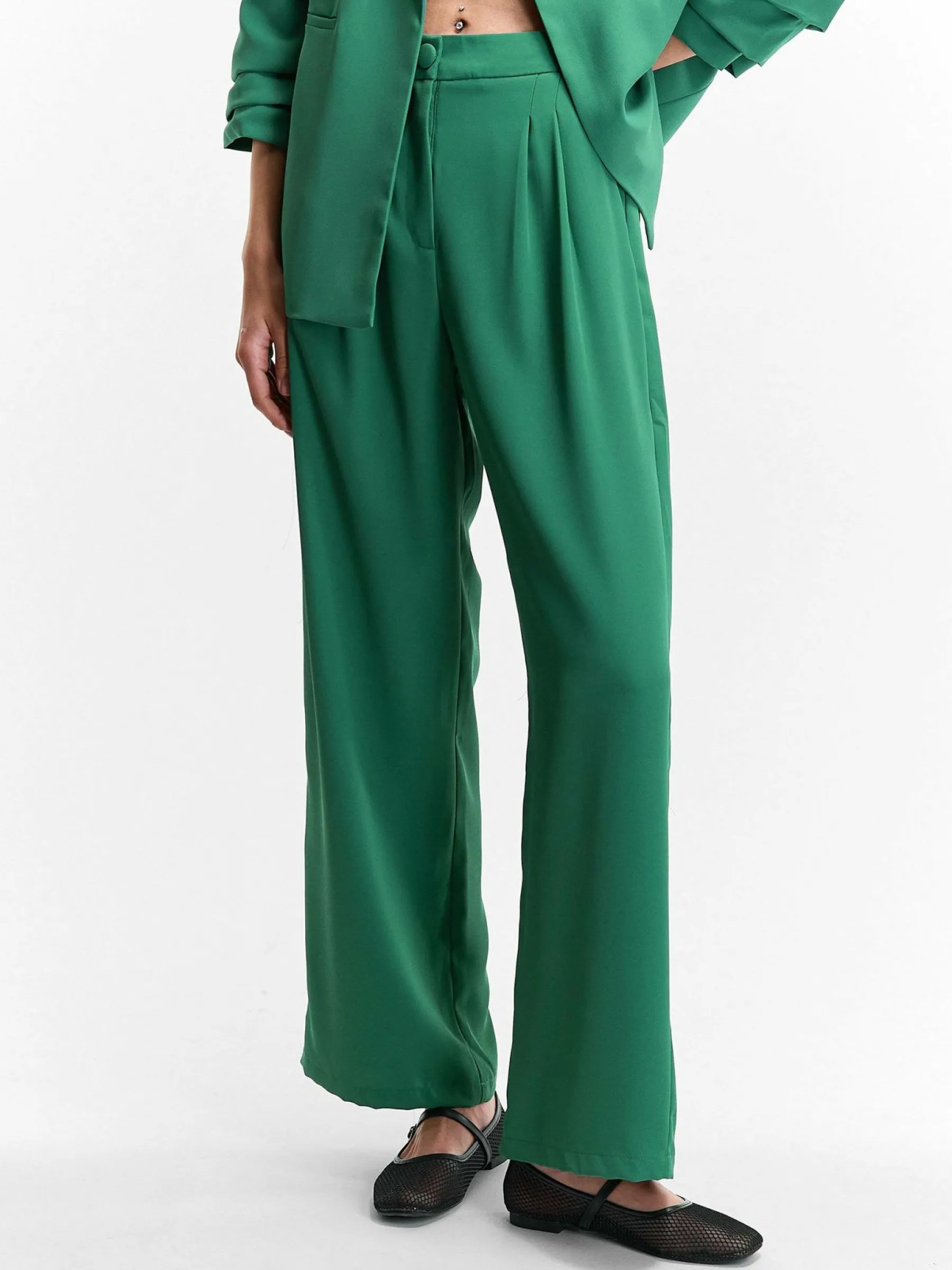 Kolor: zielonyKrój: szerokie, z wysokim stanemTyp: spodnieDługość: dlugiePattern style: pojedynczy kolorDetal: na za…