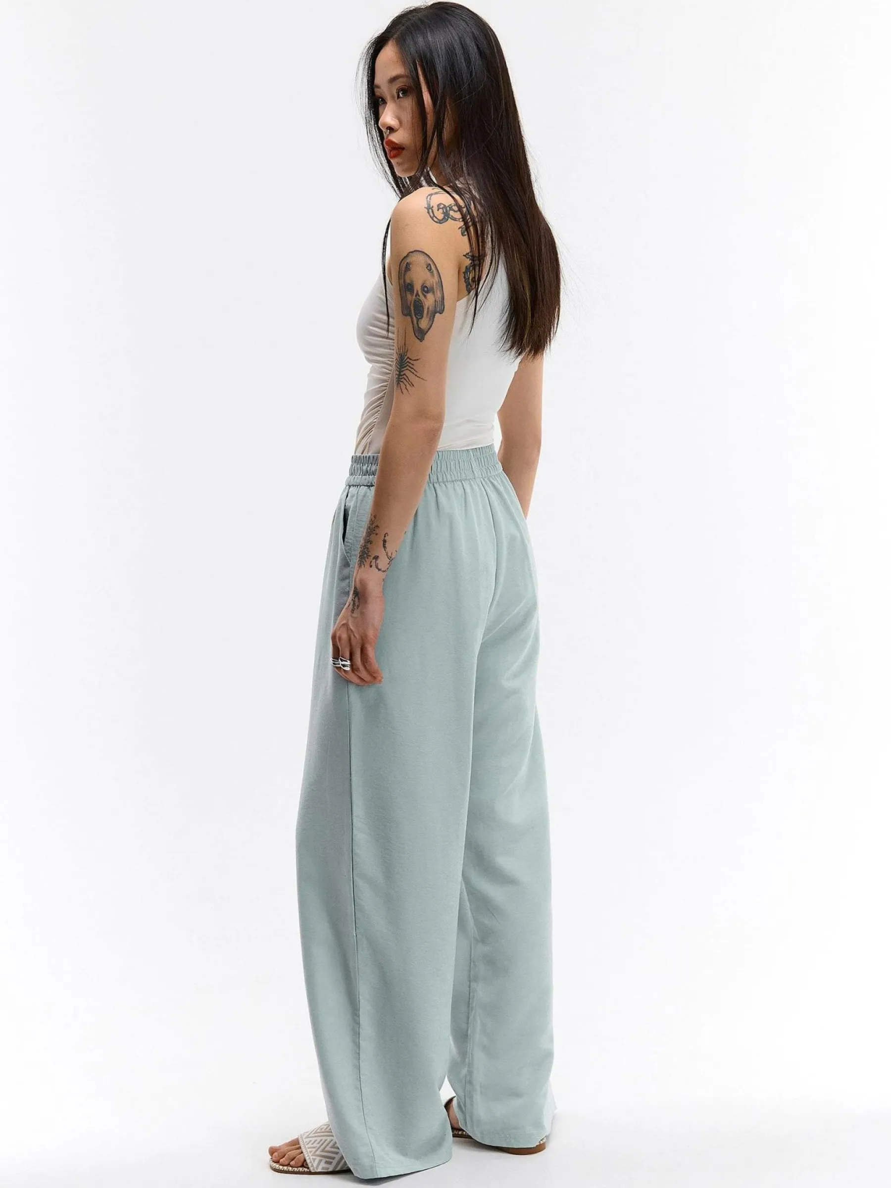 Kolor: zielonyKrój: szerokieTyp: spodnieDługość: dlugiePattern style: pojedynczy kolorDetal: z elastyczną opaską, …