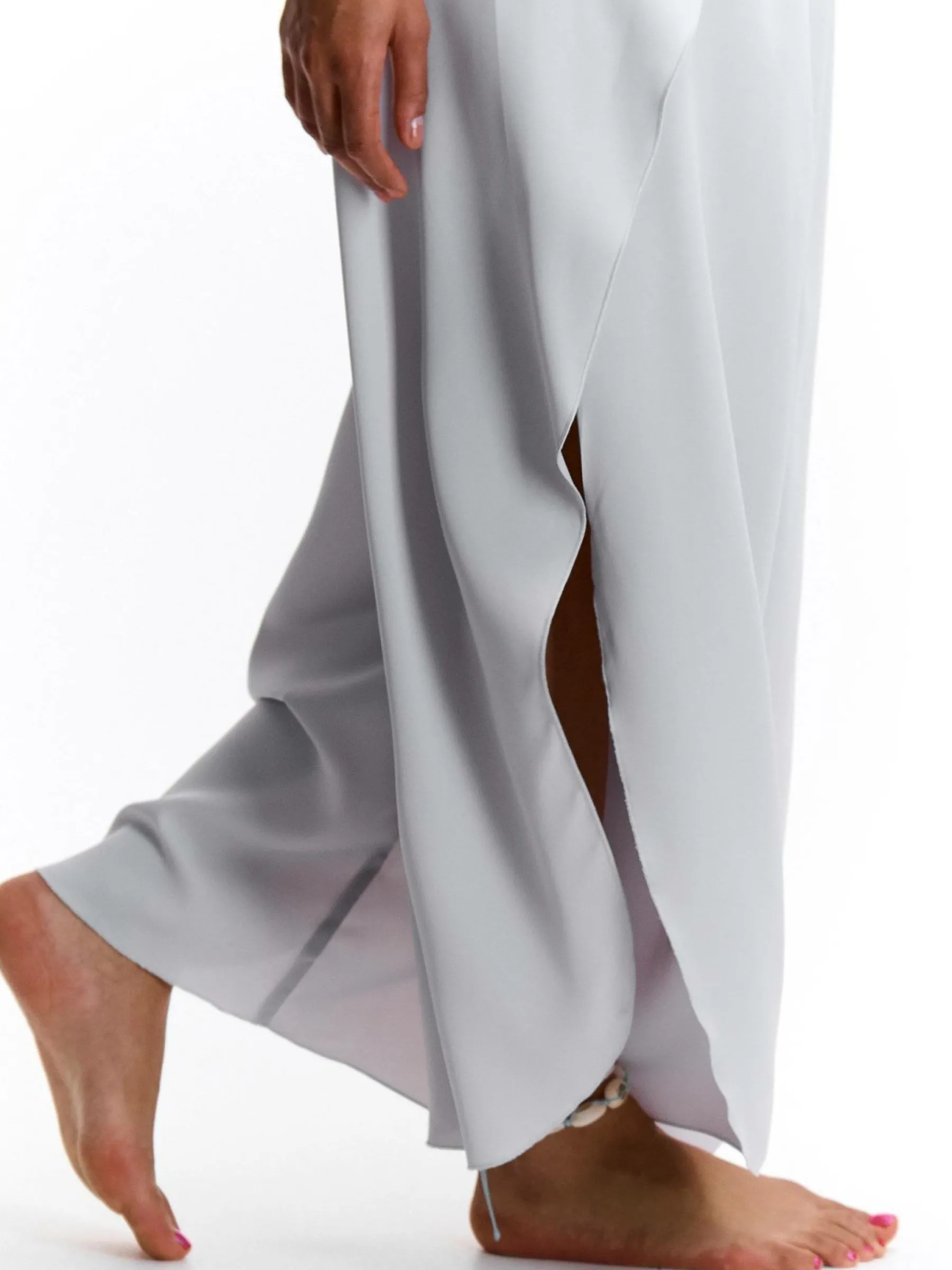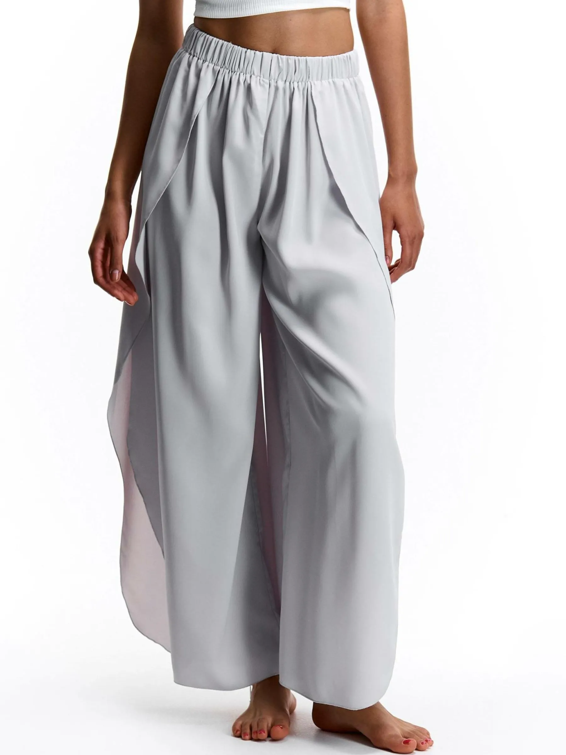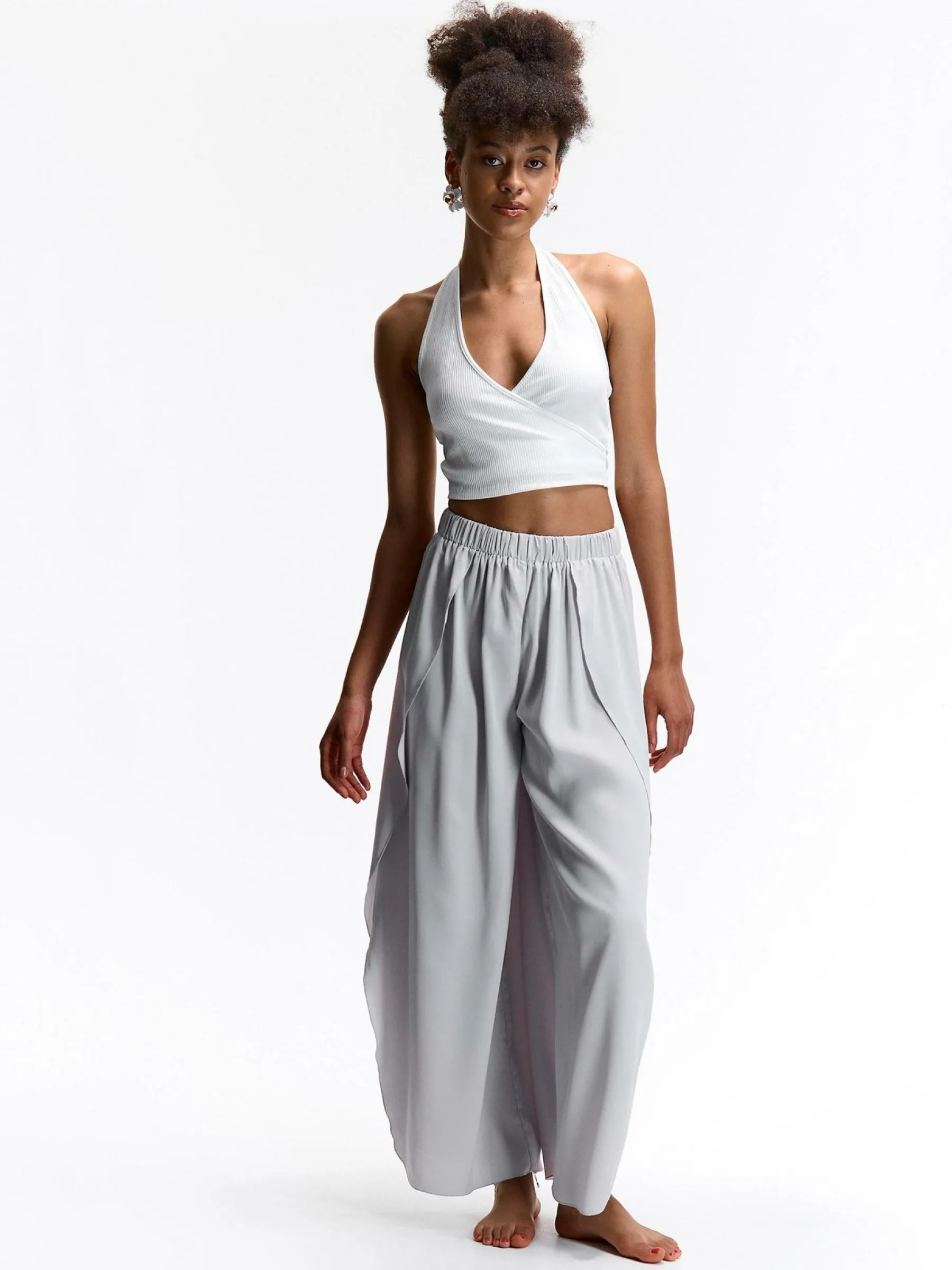 Kolor: szaryKrój: szerokieTyp: spodnieDługość: dlugiePattern style: pojedynczy kolorDetal: z elastyczną opaską, z …