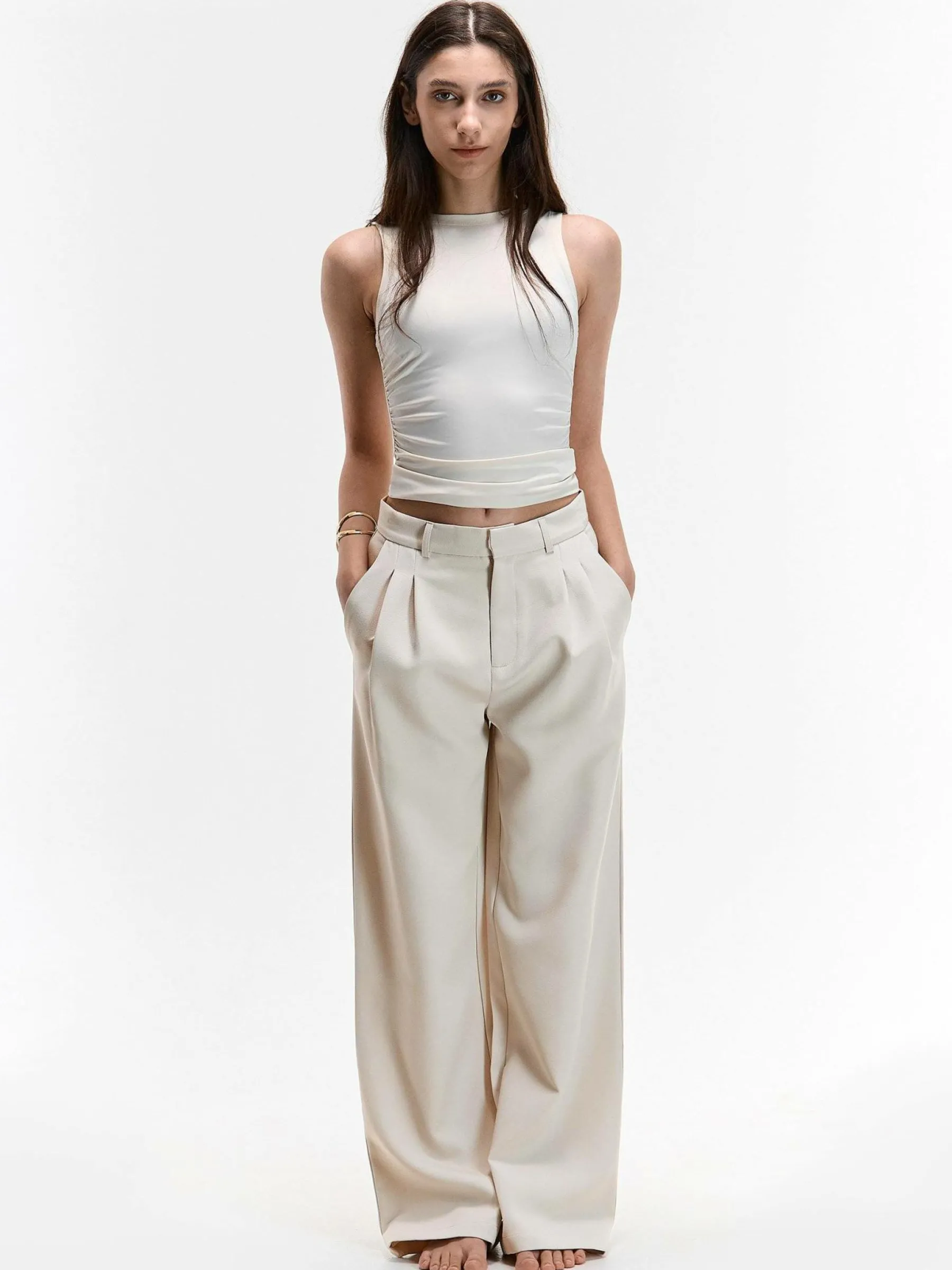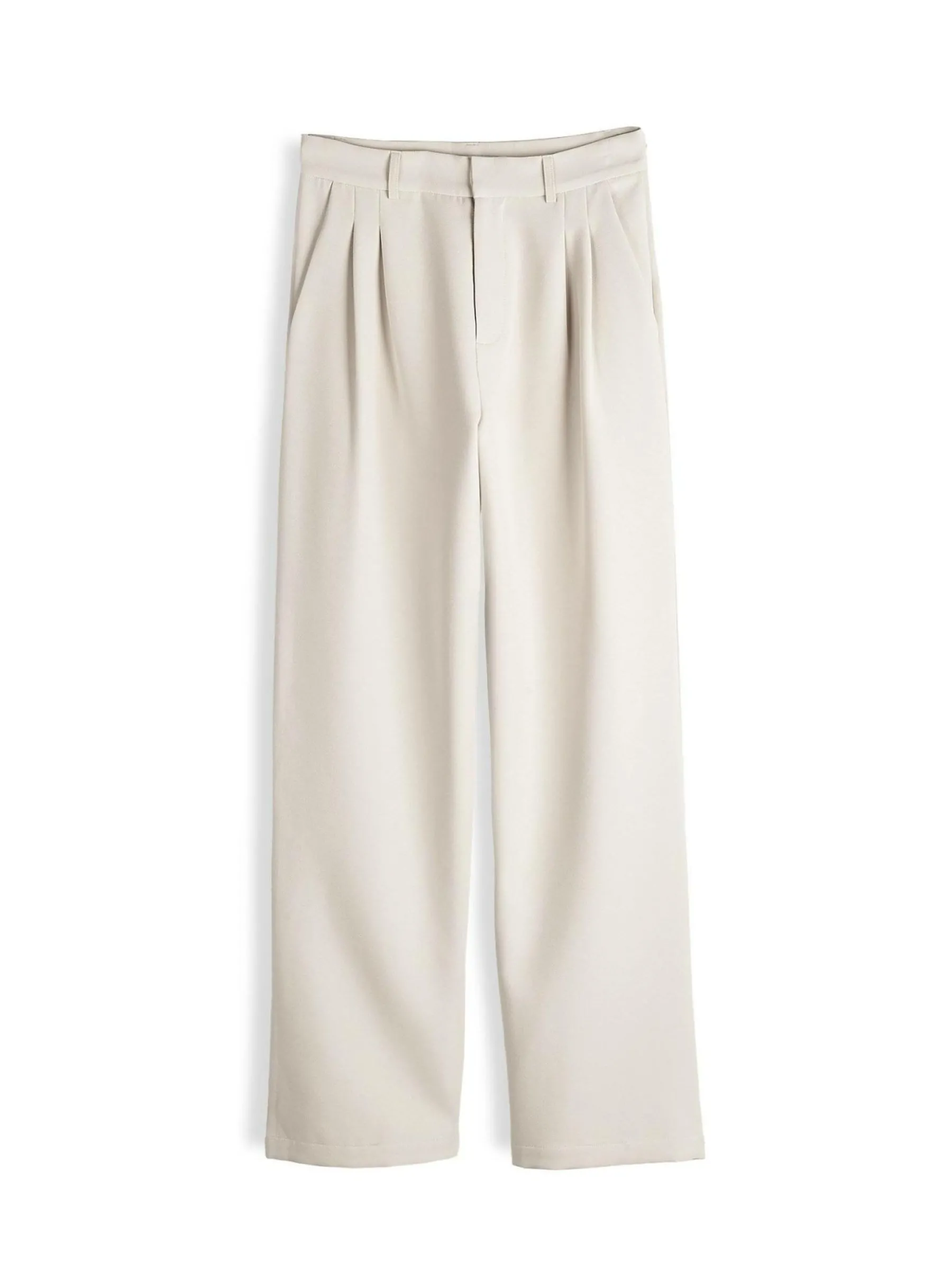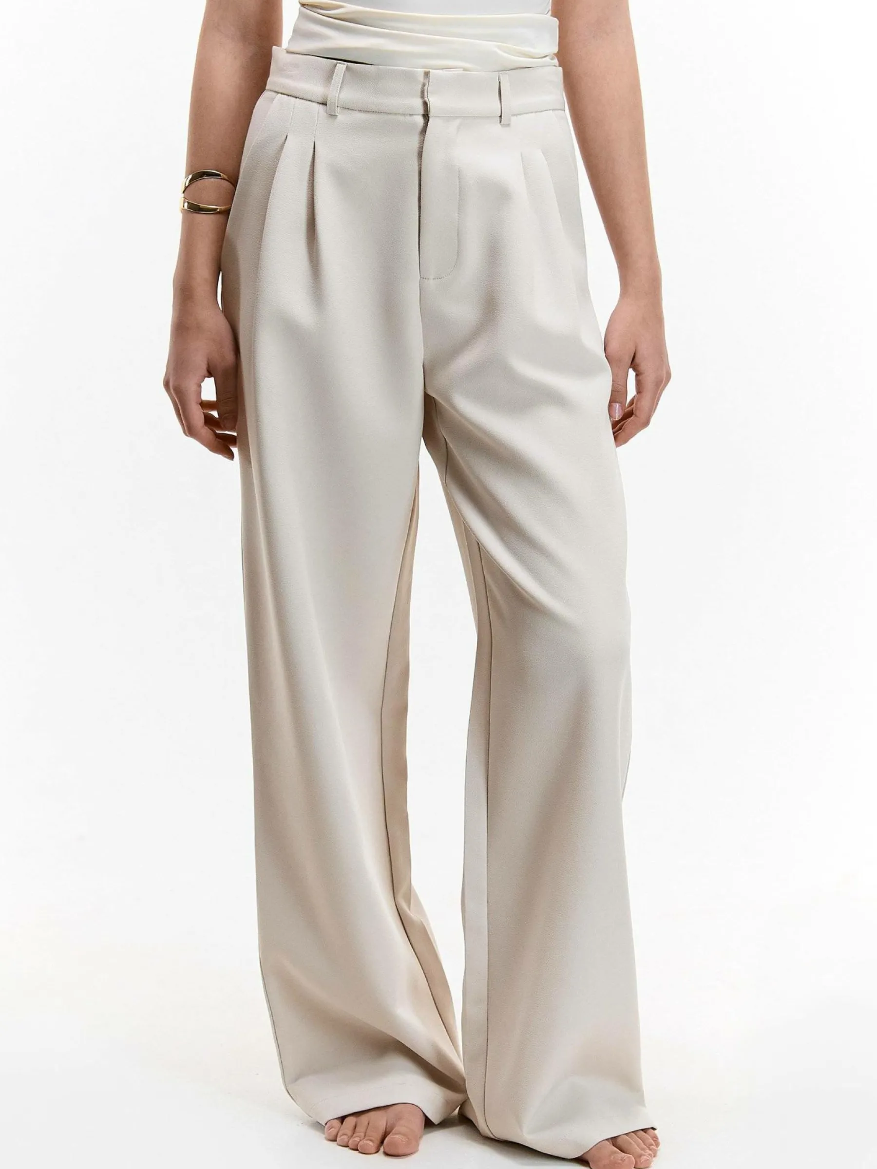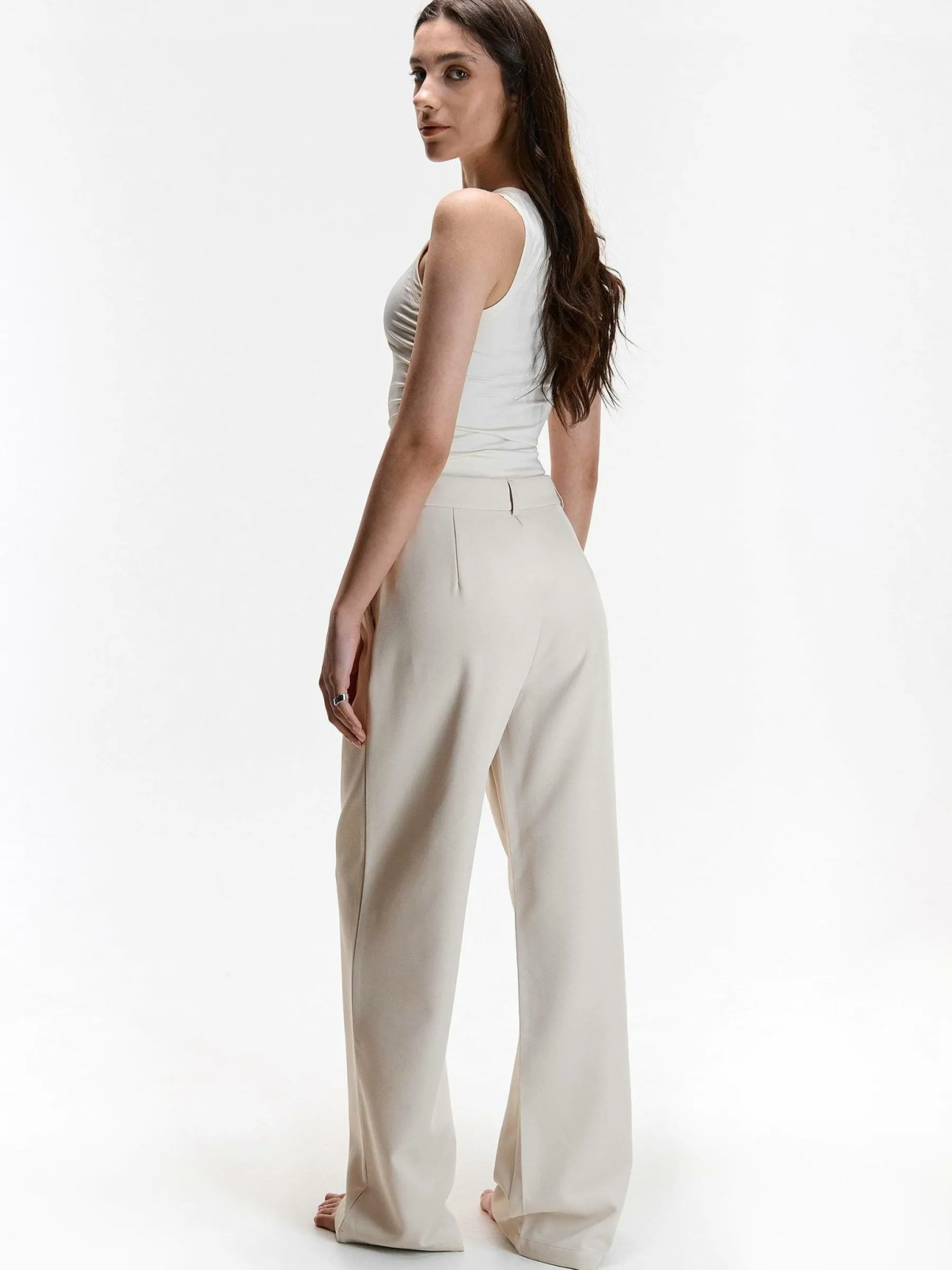 Kolor: beżowyKrój: szerokieTyp: spodnieDługość: dlugiePattern style: pojedynczy kolorDetal: na zamekMateriał: synt…