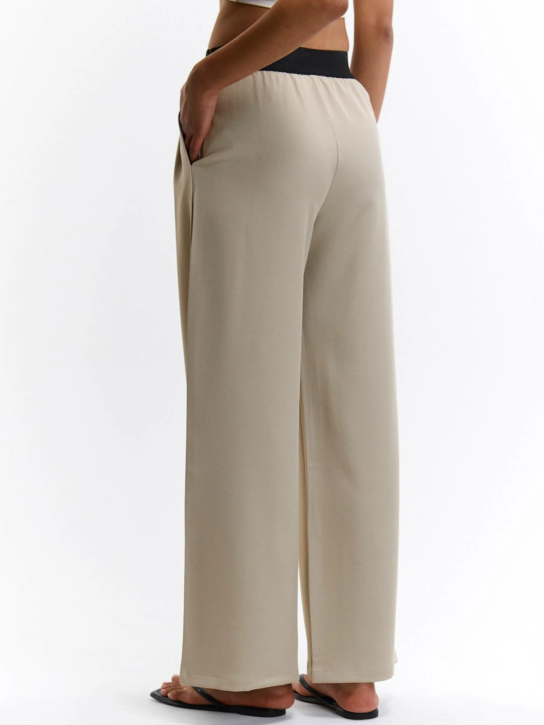 Kolor: beżowyKrój: szerokieTyp: spodnieDługość: dlugiePattern style: pojedynczy kolorMateriał: syntetycznePłeć: …