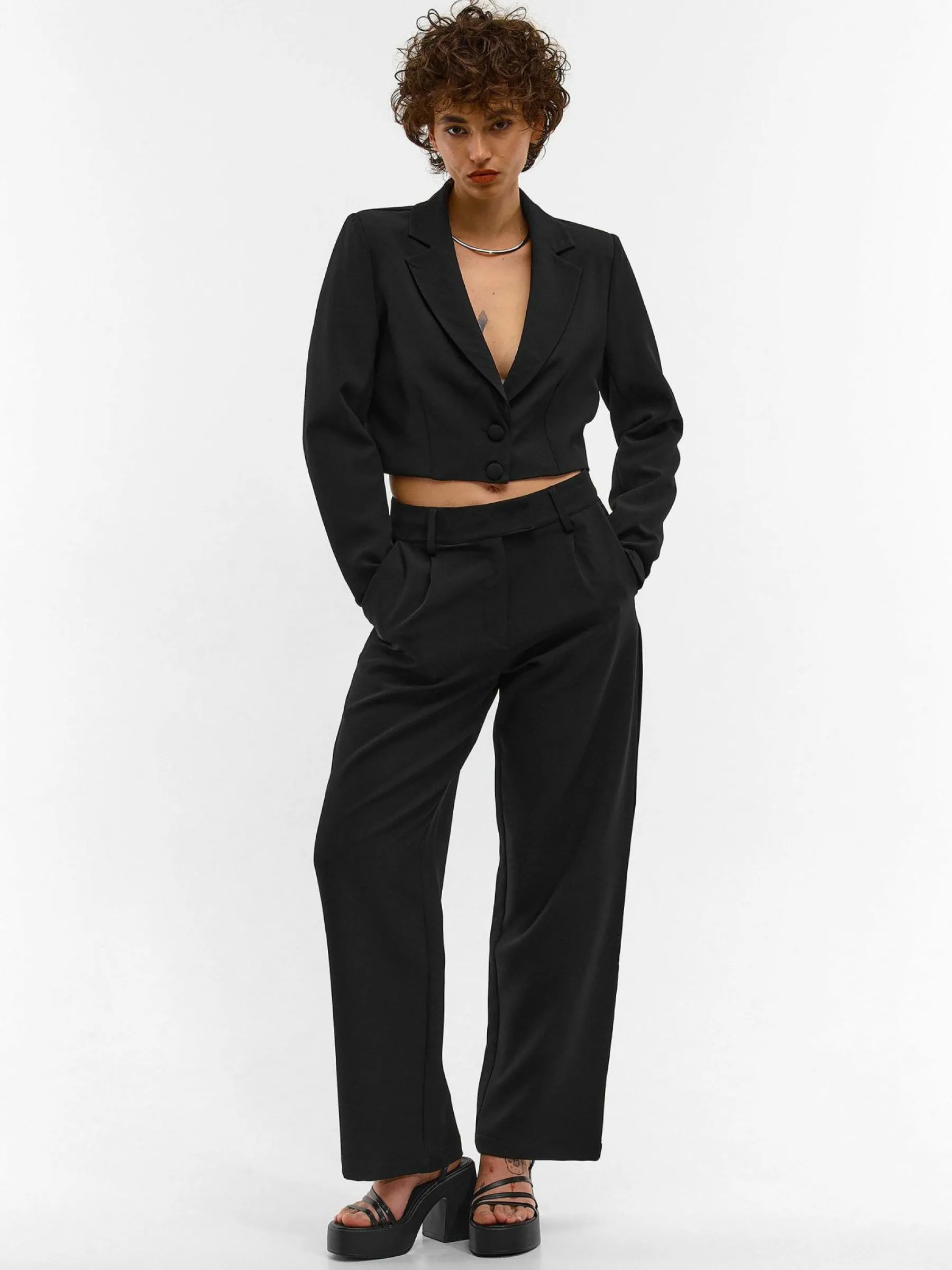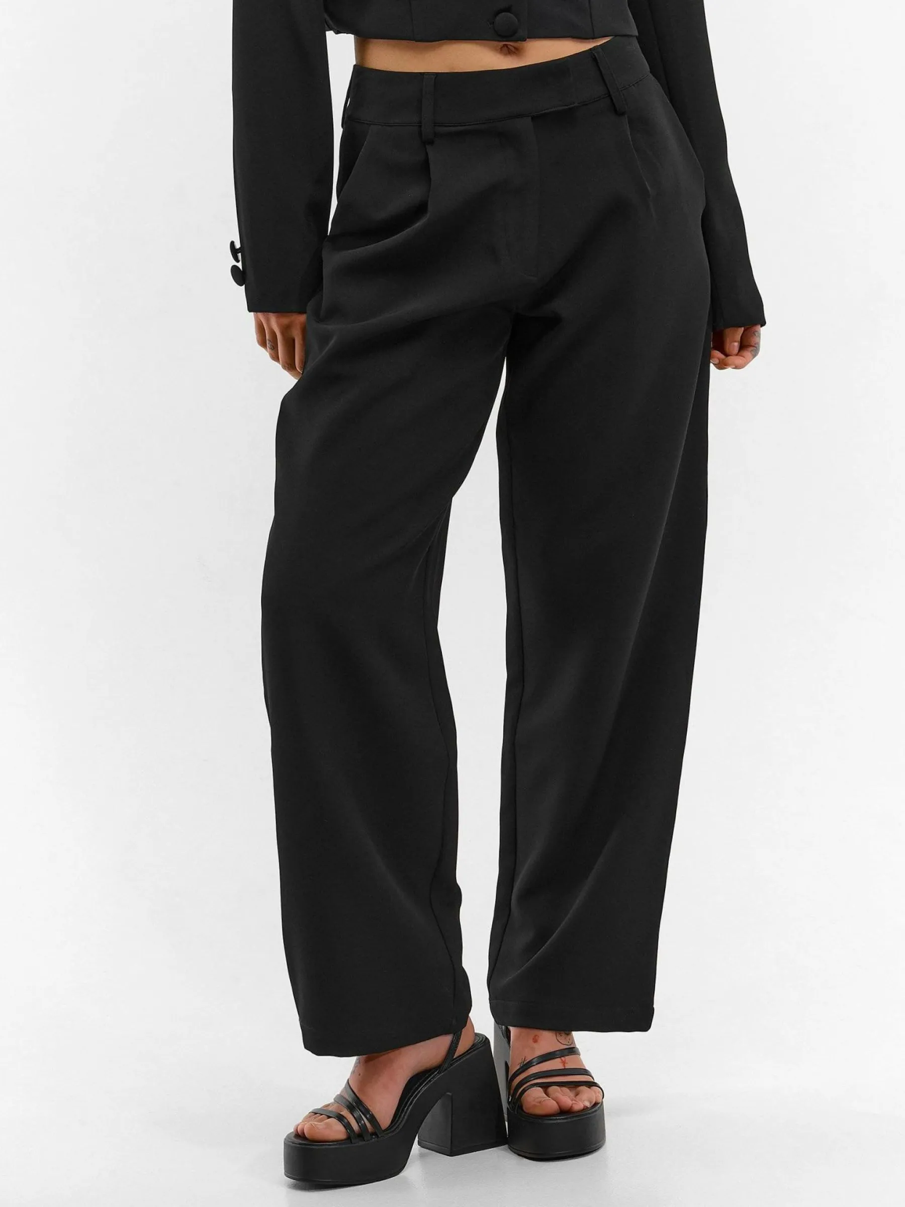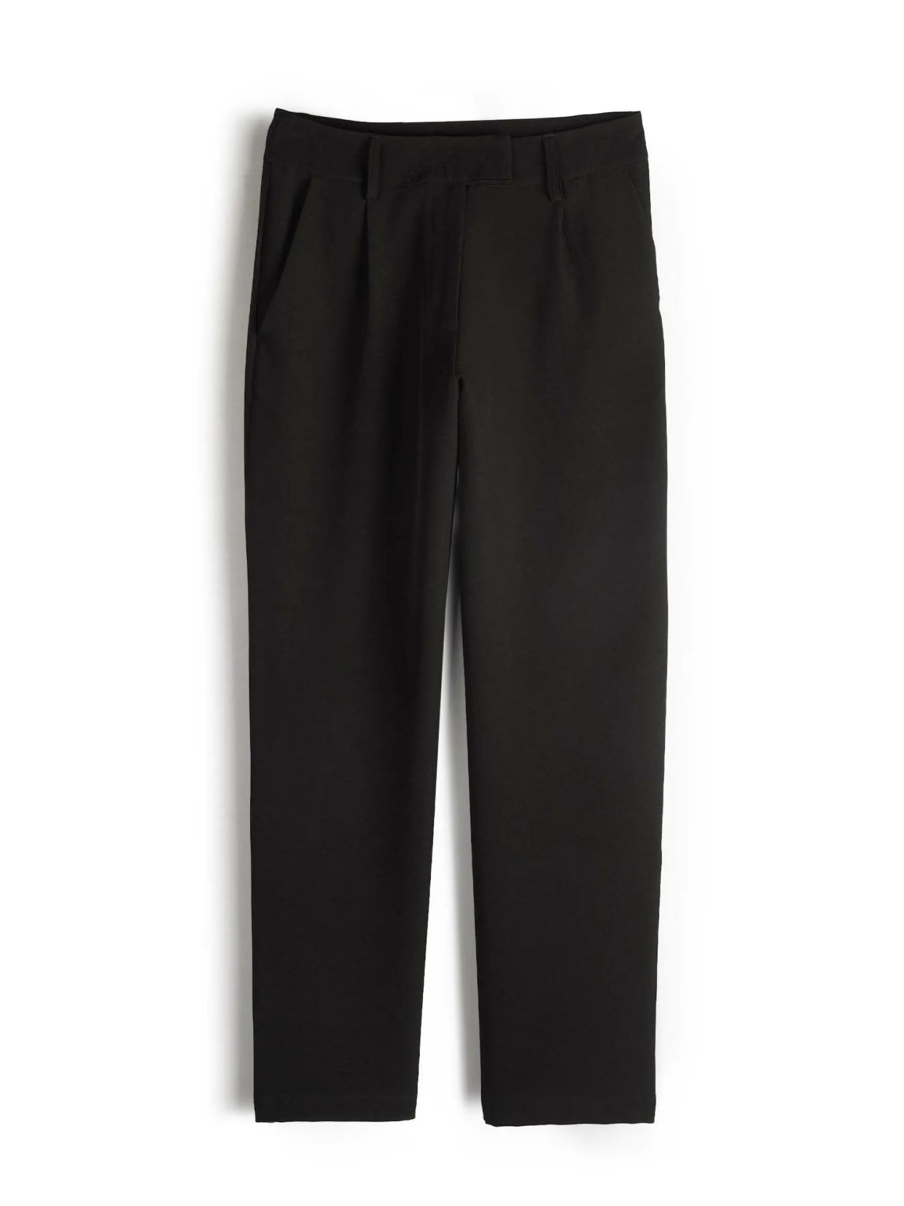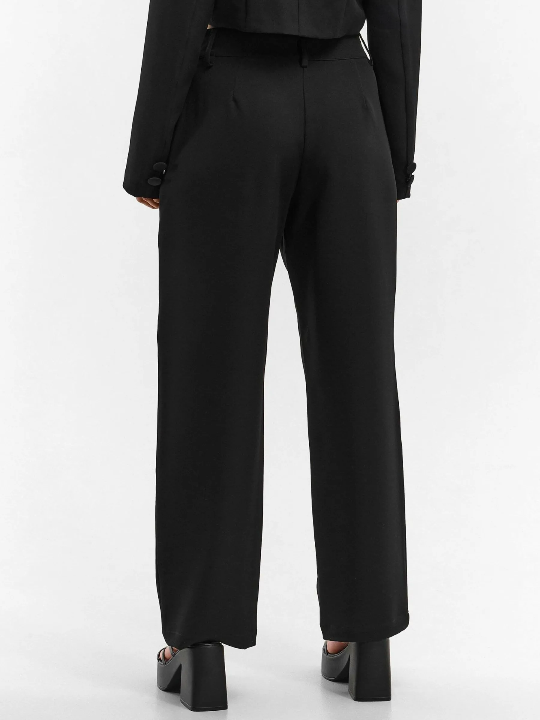 Kolor: czarnyKrój: szerokieTyp: spodnieDługość: dlugiePattern style: pojedynczy kolorDetal: z kieszeniami, na zamekM…