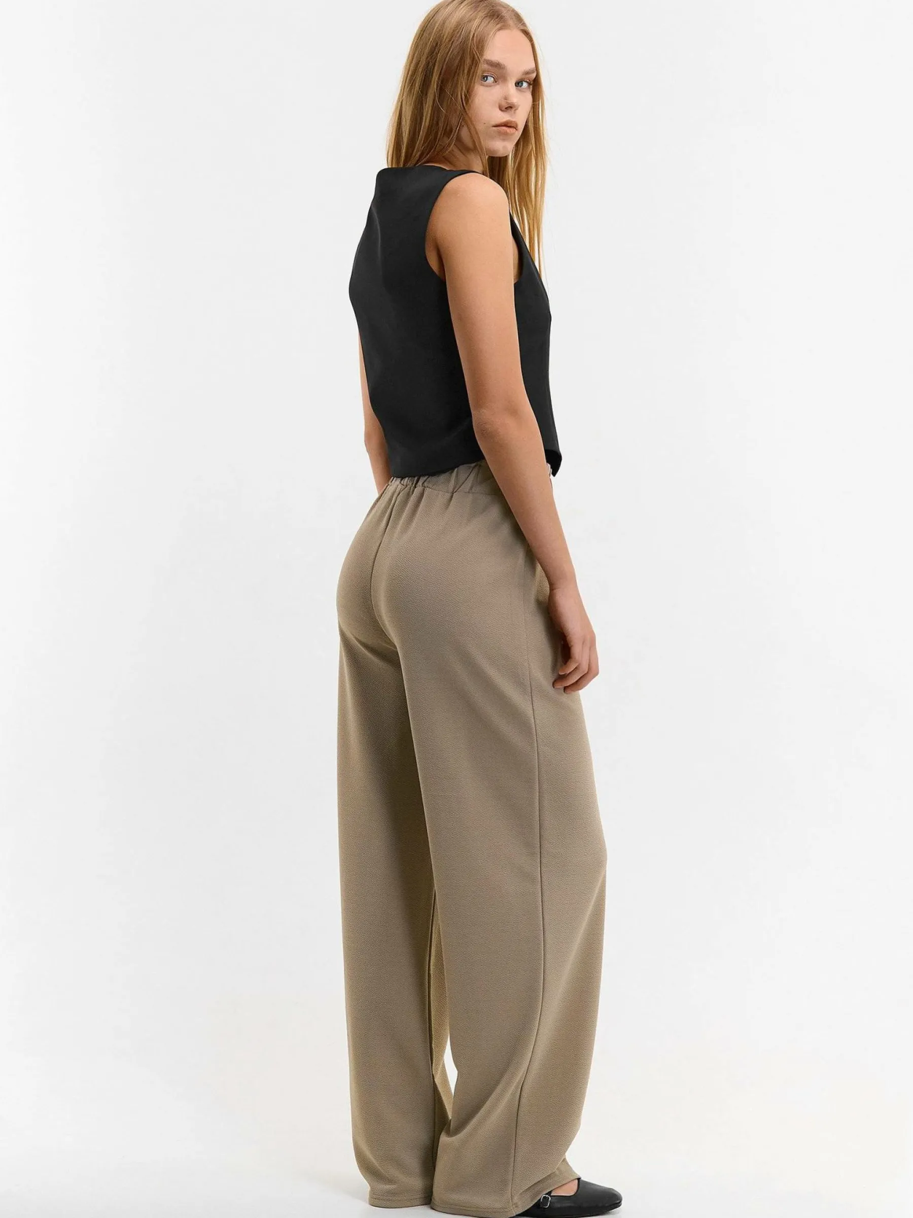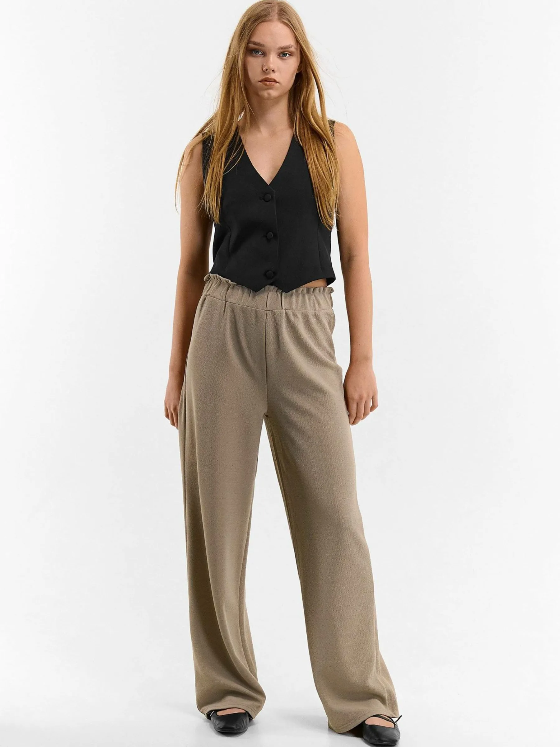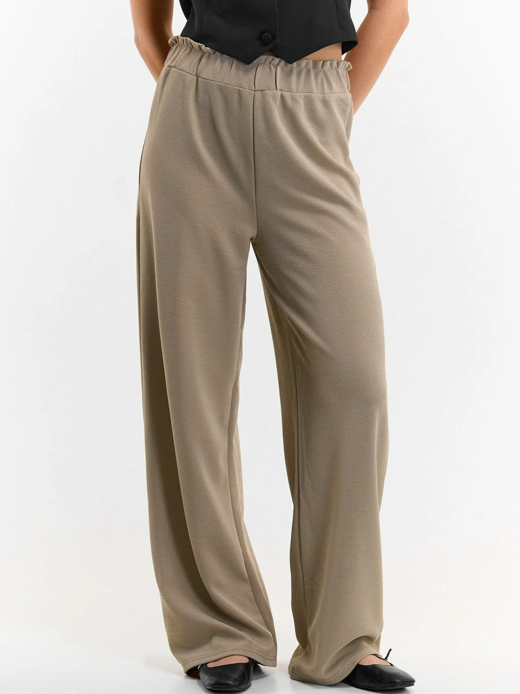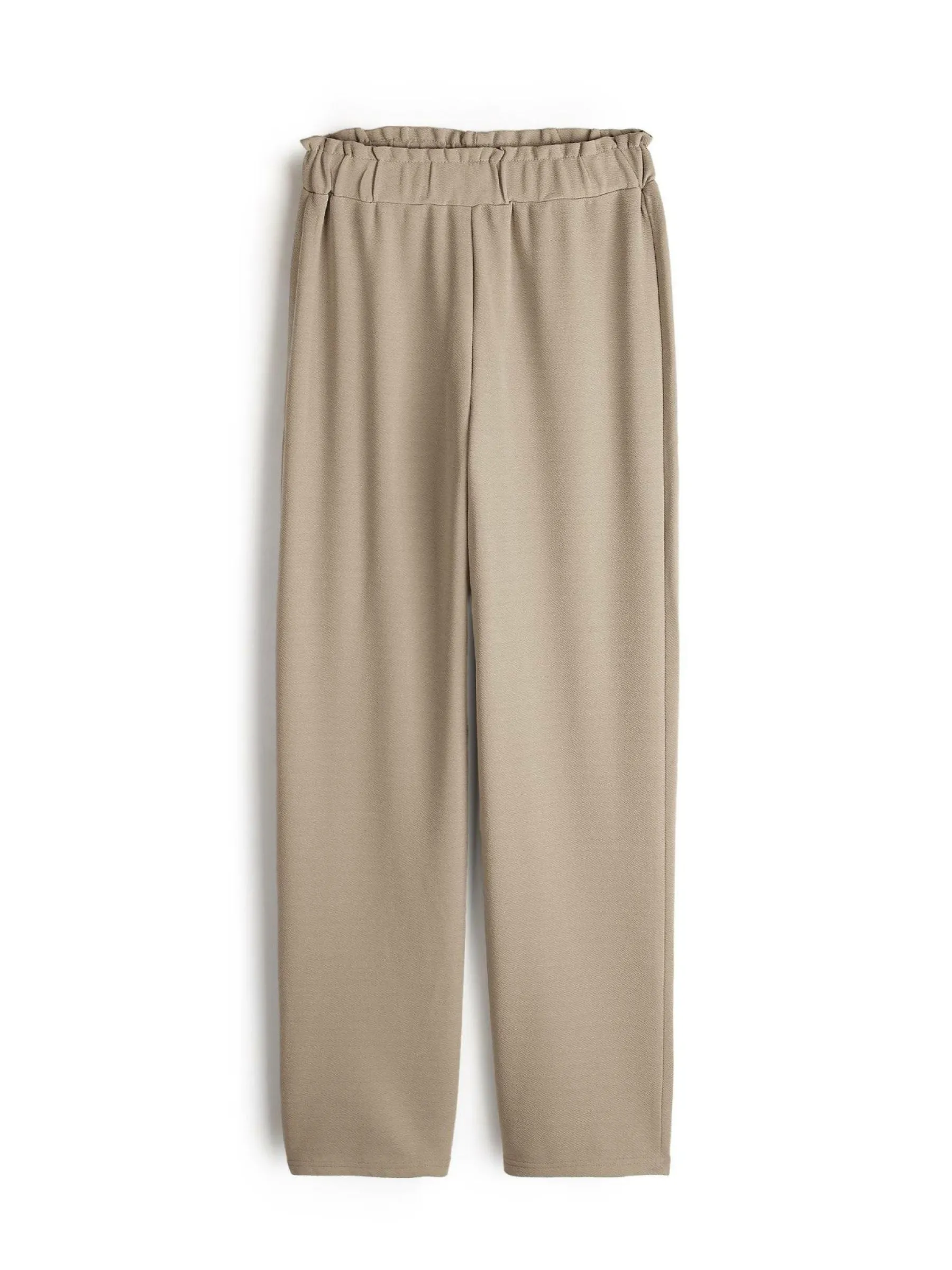 Kolor: beżowyKrój: paperbag, szerokieTyp: spodnieDługość: dlugiePattern style: pojedynczy kolorDetal: z elastyczną…