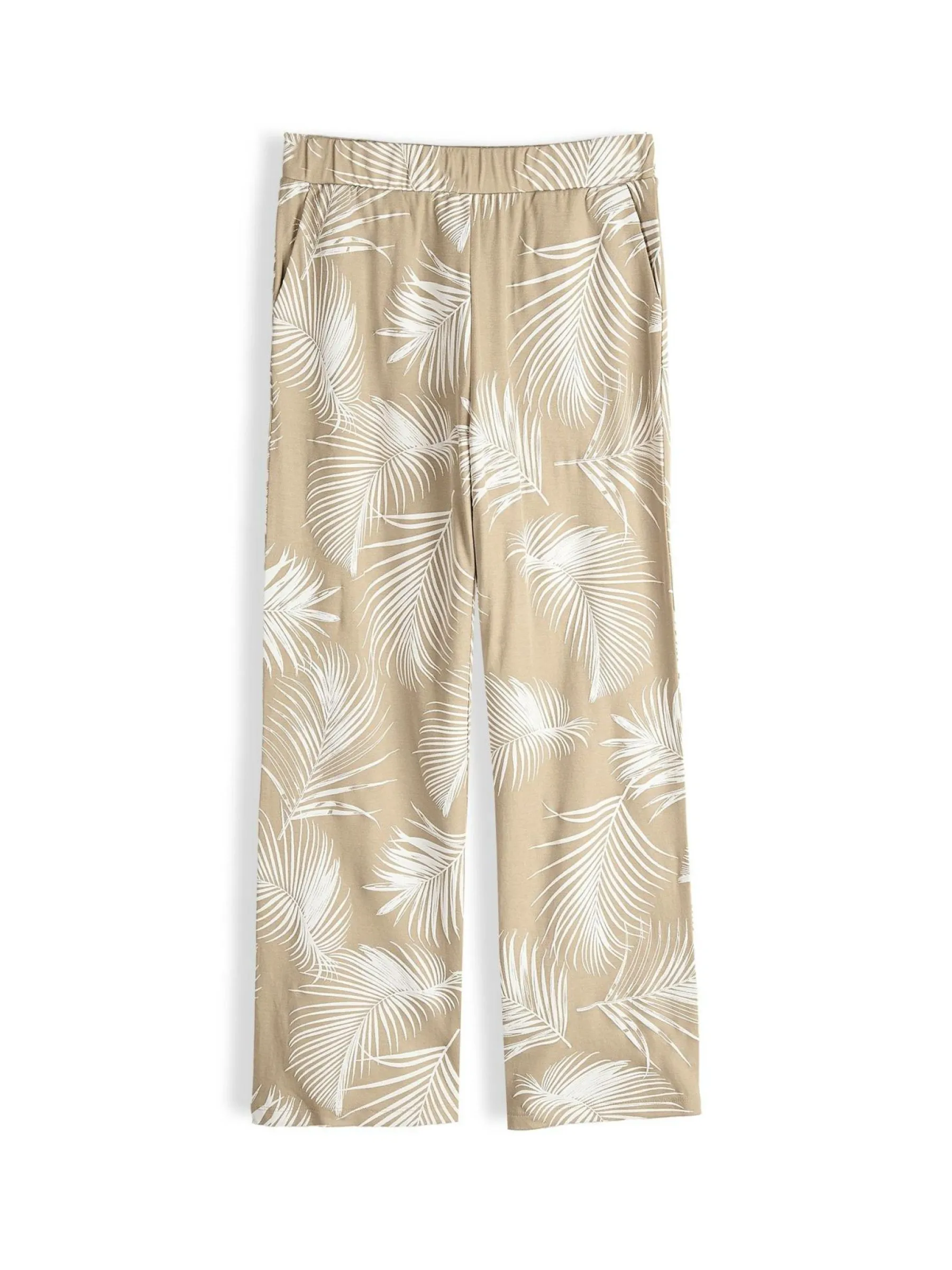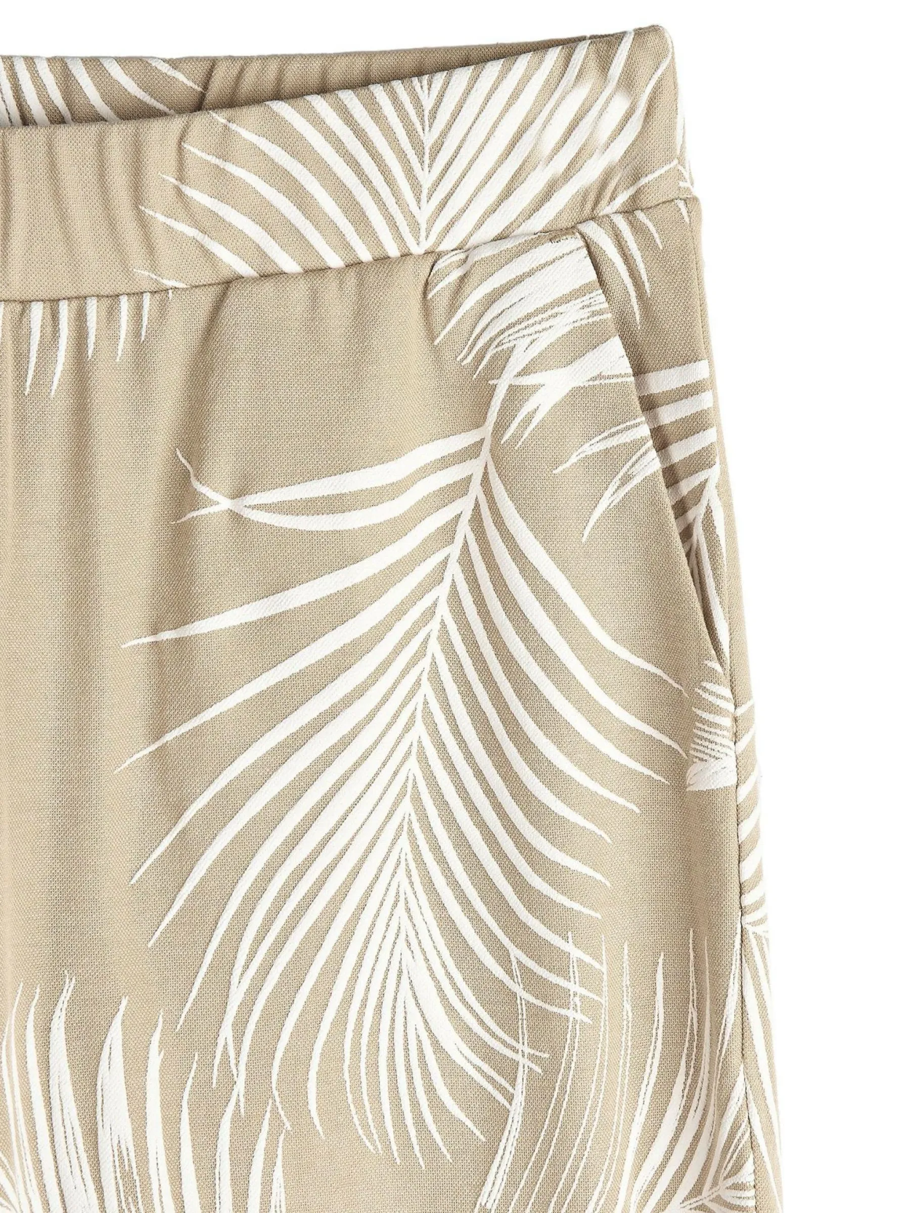 Kolor: beżowyKrój: szerokieTyp: spodnieDługość: dlugiePattern style: z nadrukiemDetal: z elastyczną opaską, z kie…