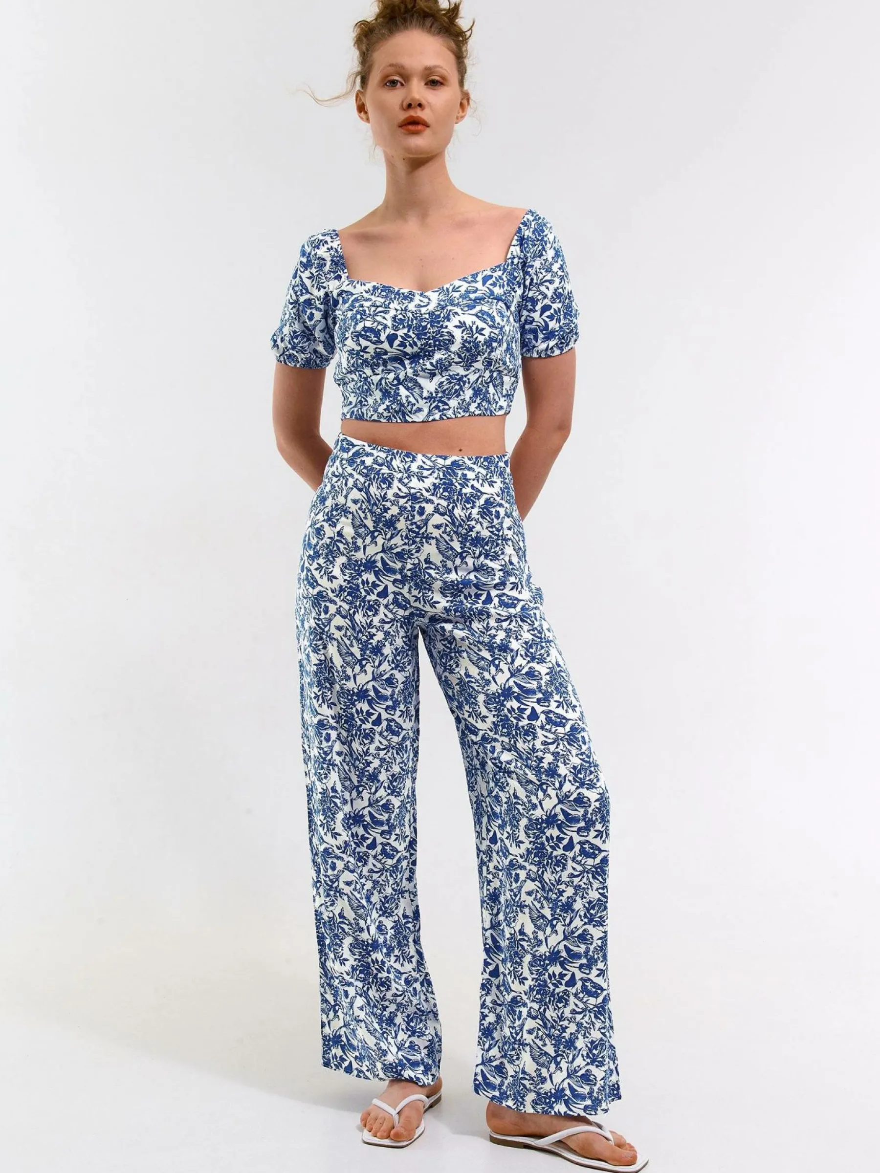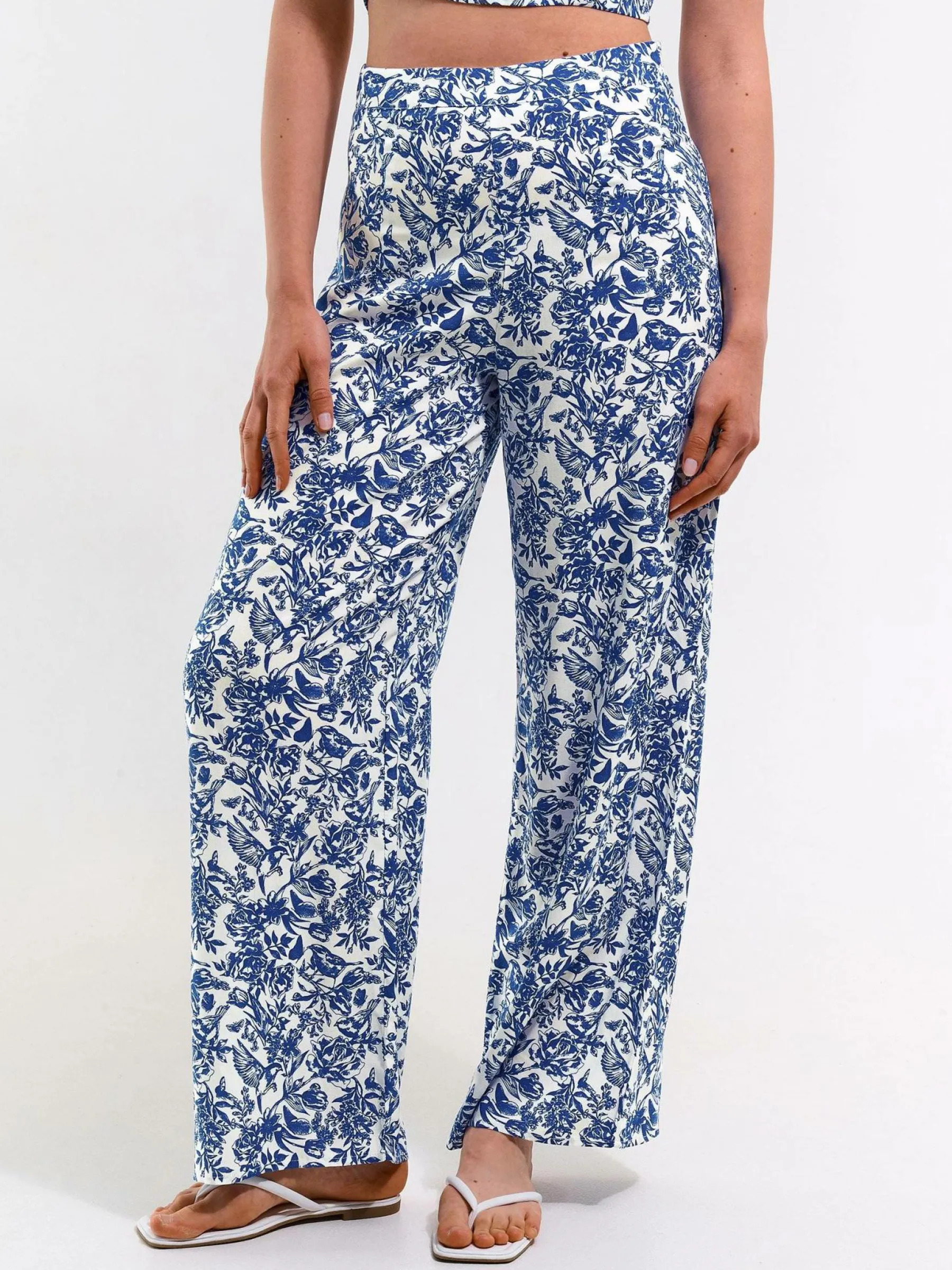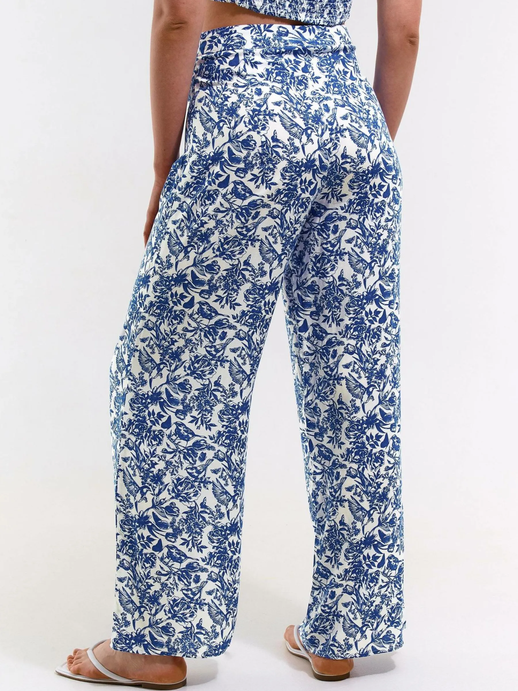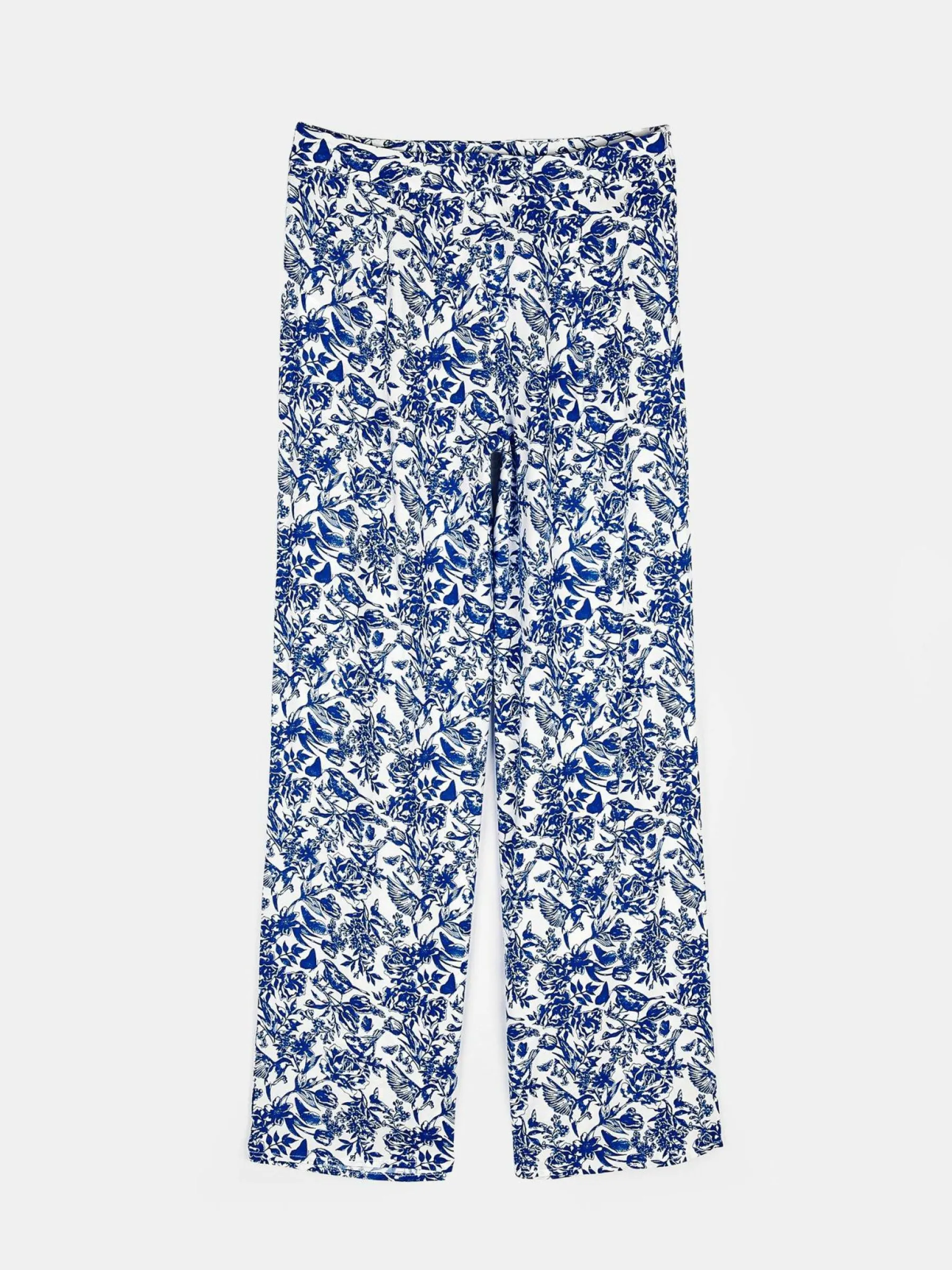 Kolor: białyKrój: szerokieTyp: spodnieDługość: dlugiePattern style: kwiatoweDetal: z elastyczną opaskąMateriał: …